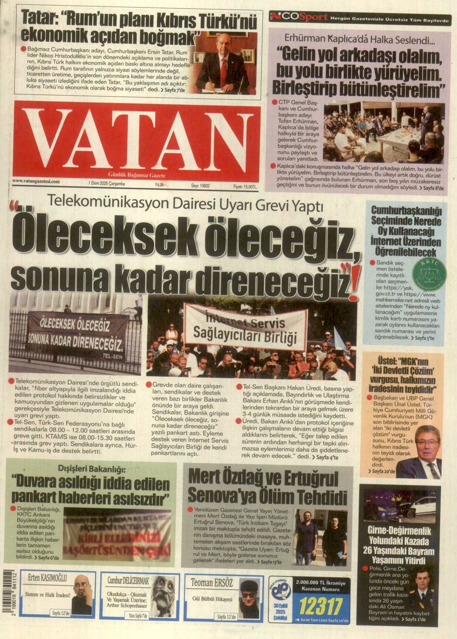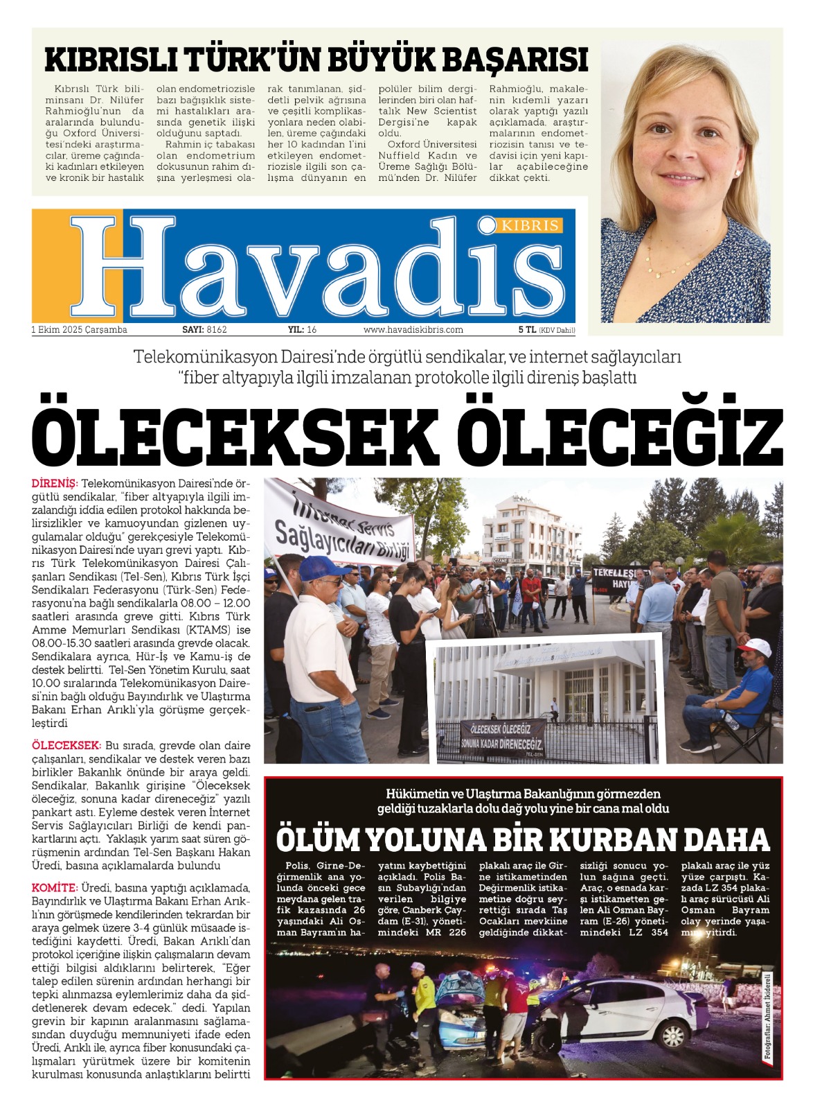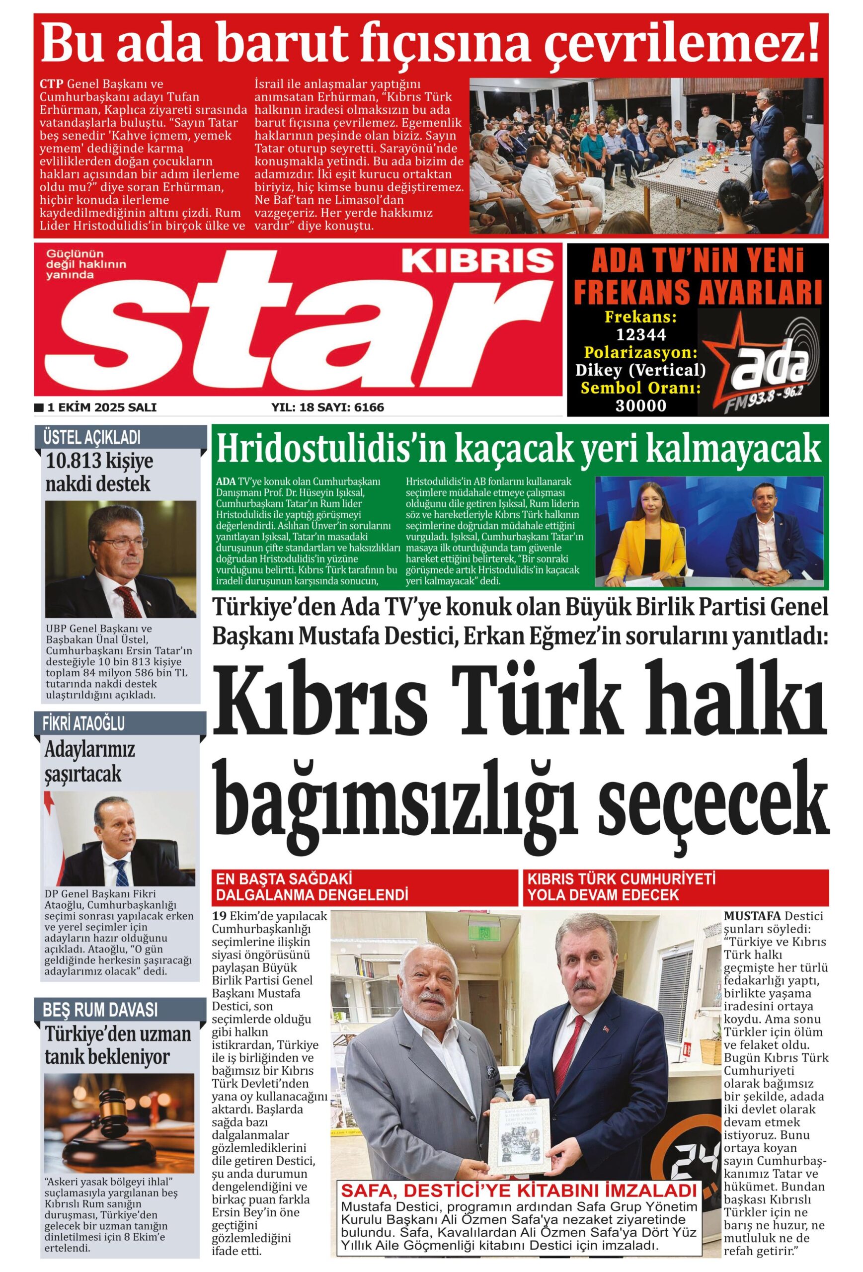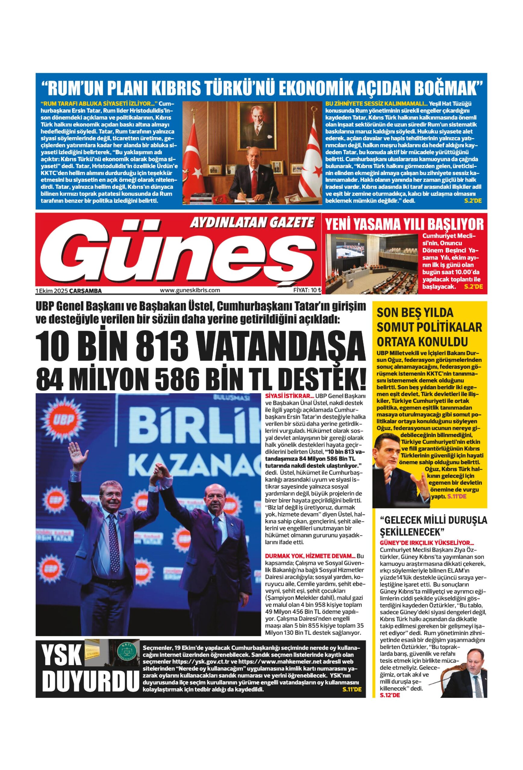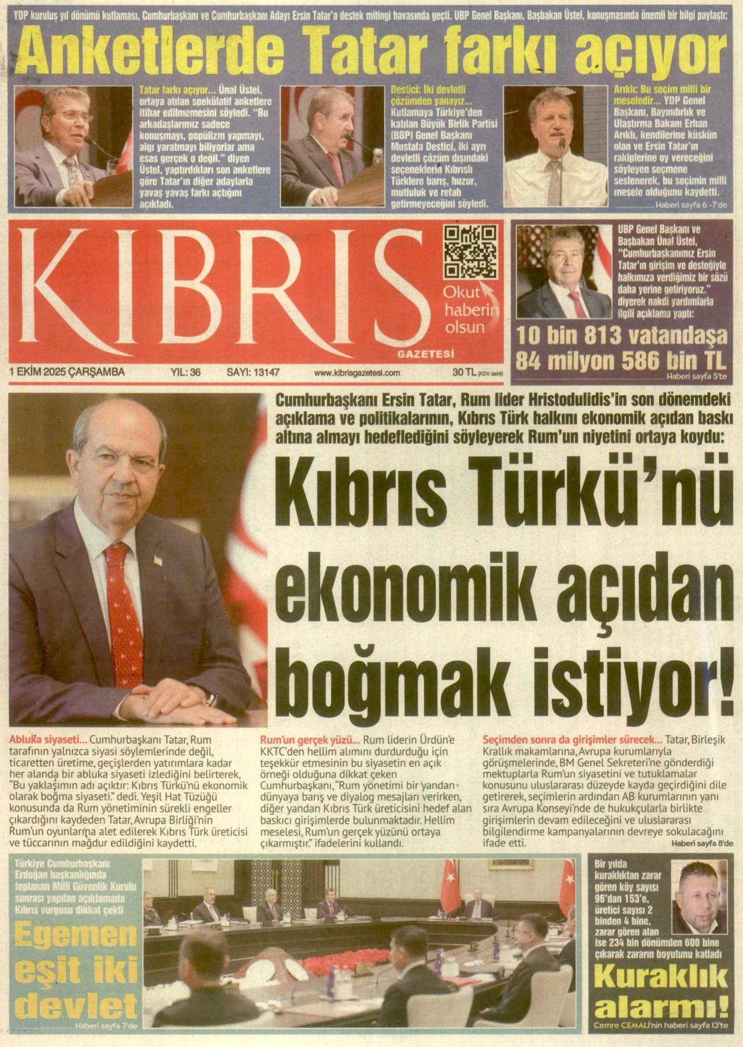 1 Ekim 2025 Çarşamba KKTC Gazete Manşetleri