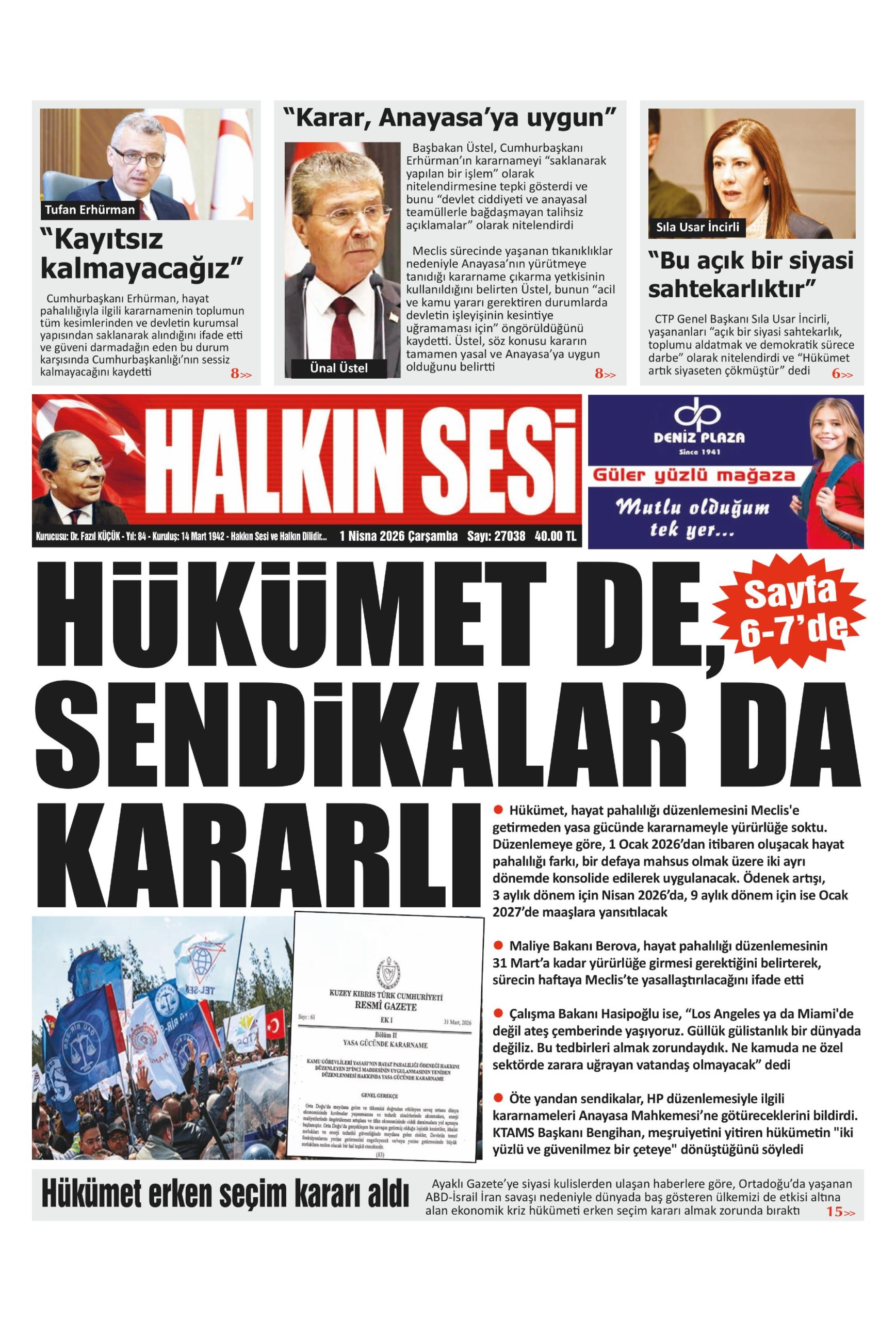 14 Nisan 2026 Salı KKTC Gazete Manşetleri