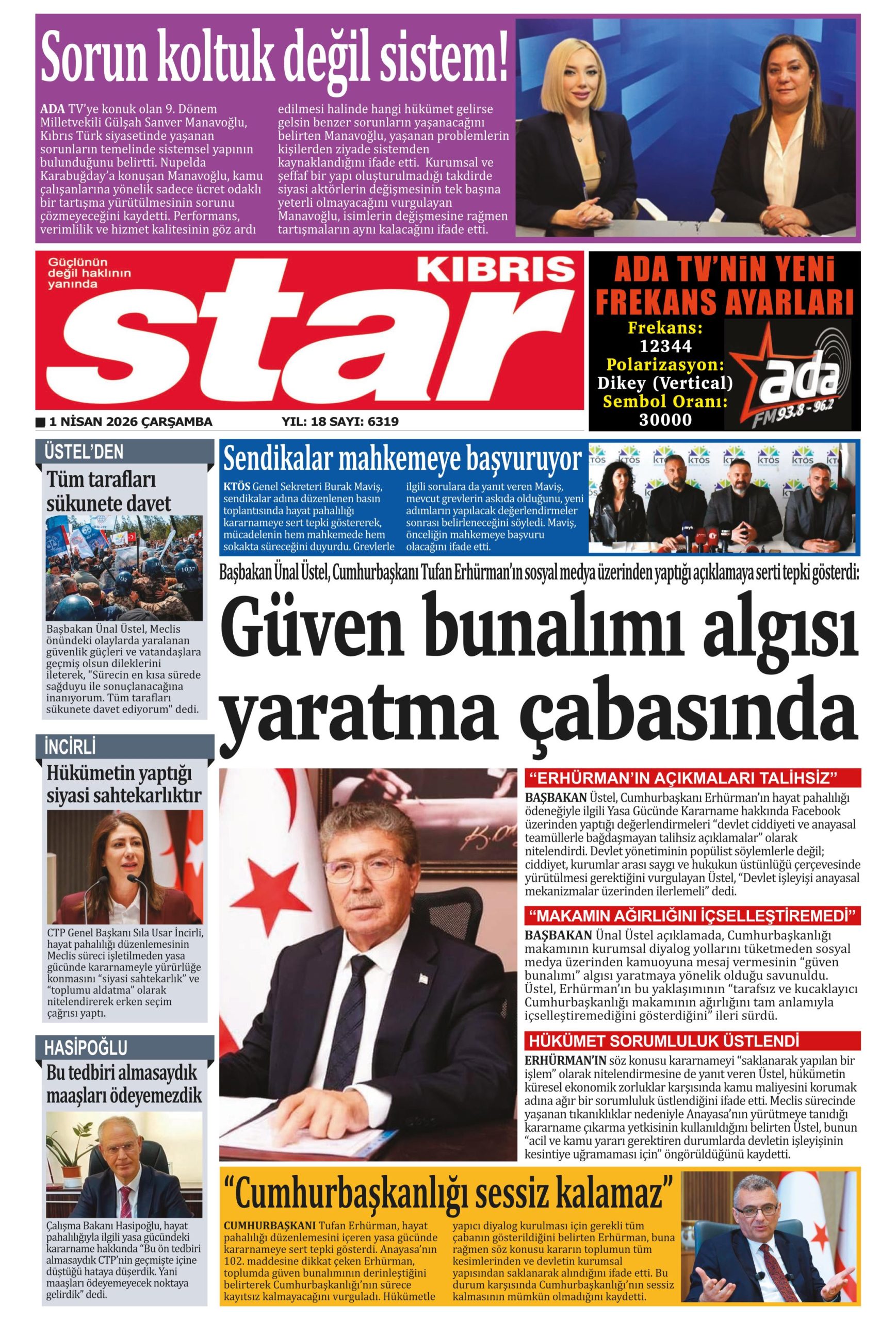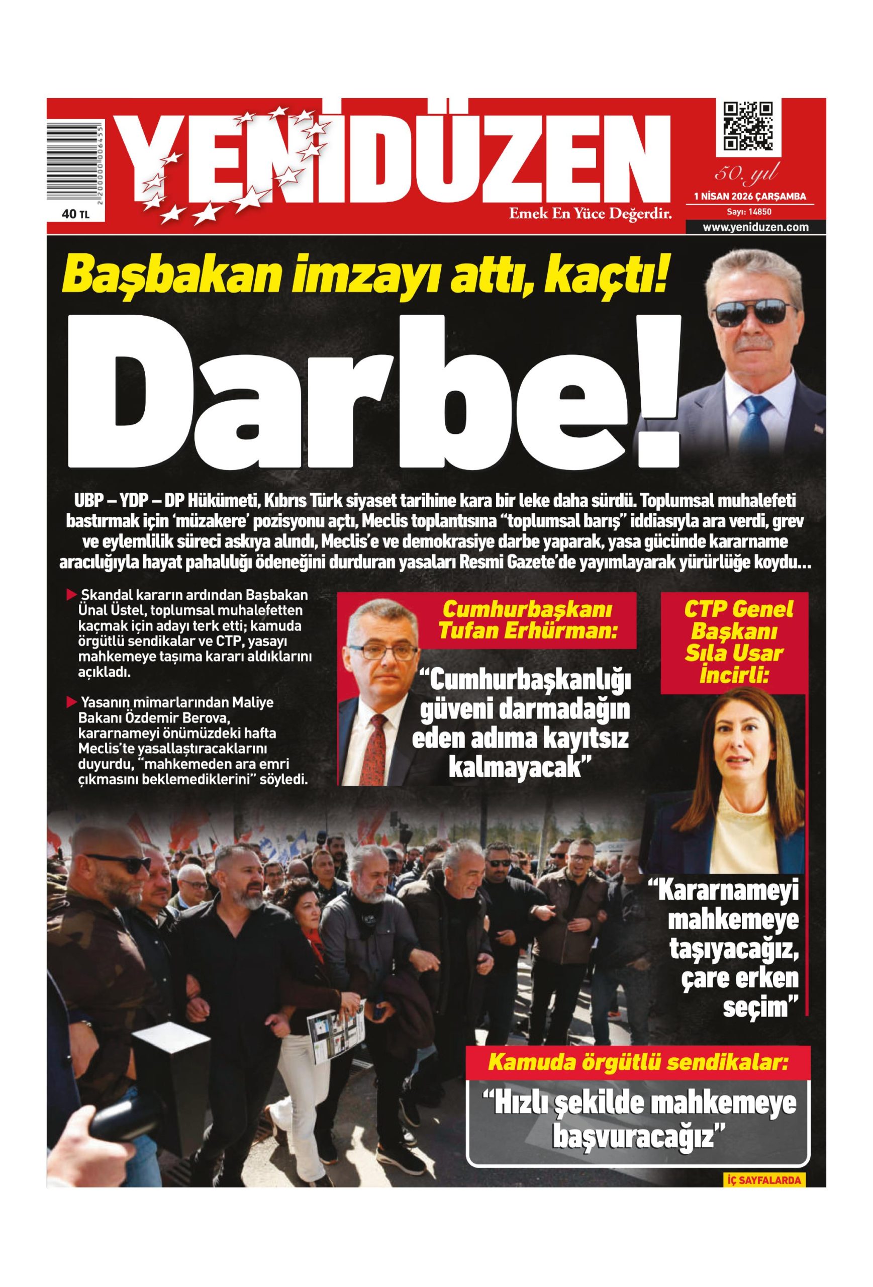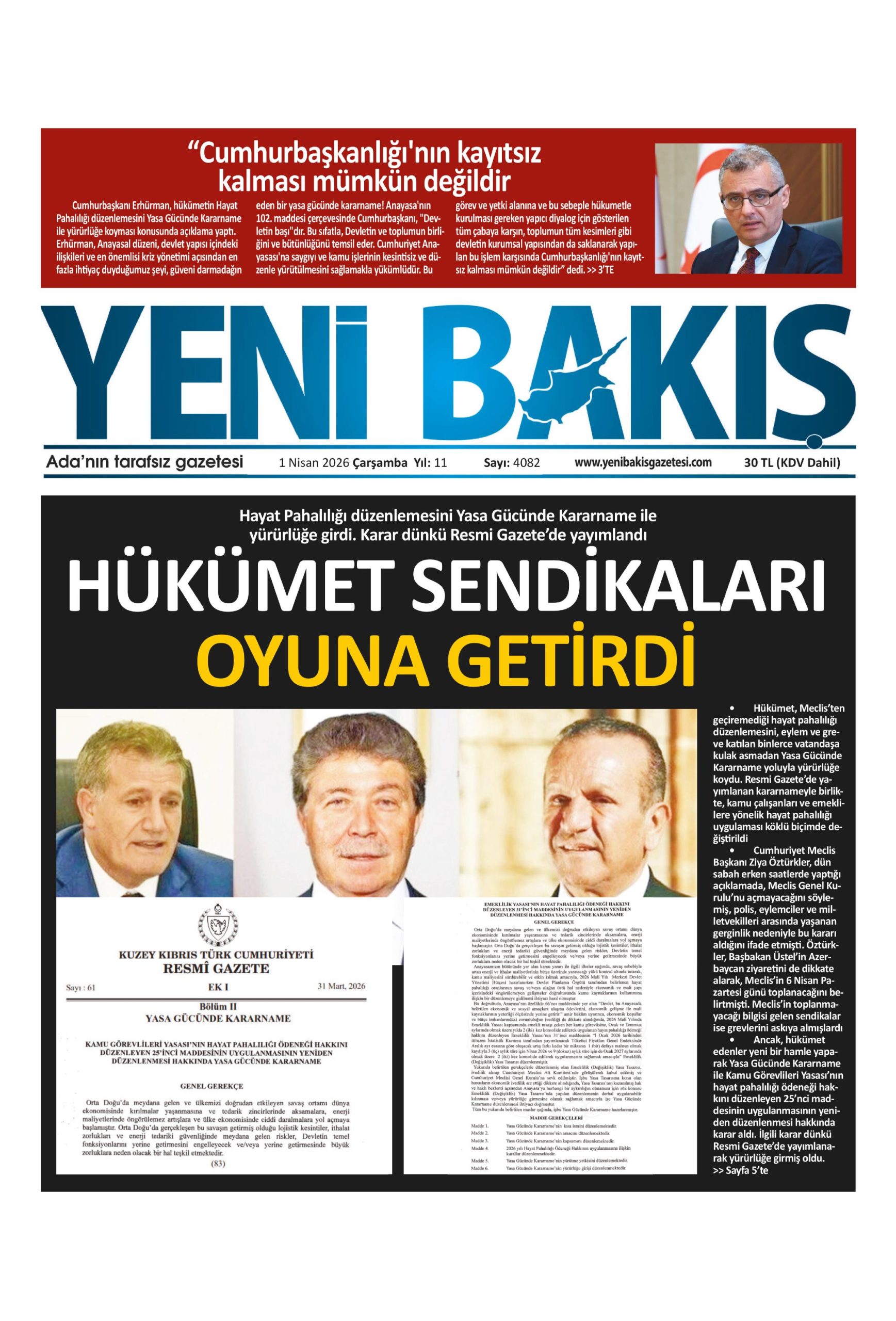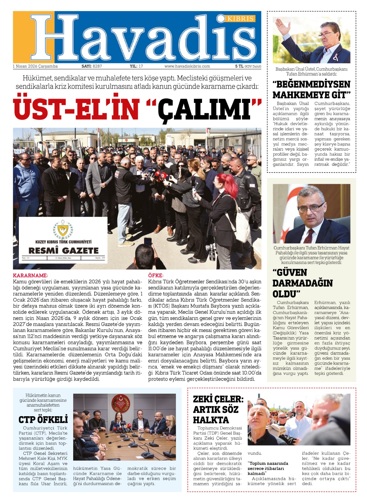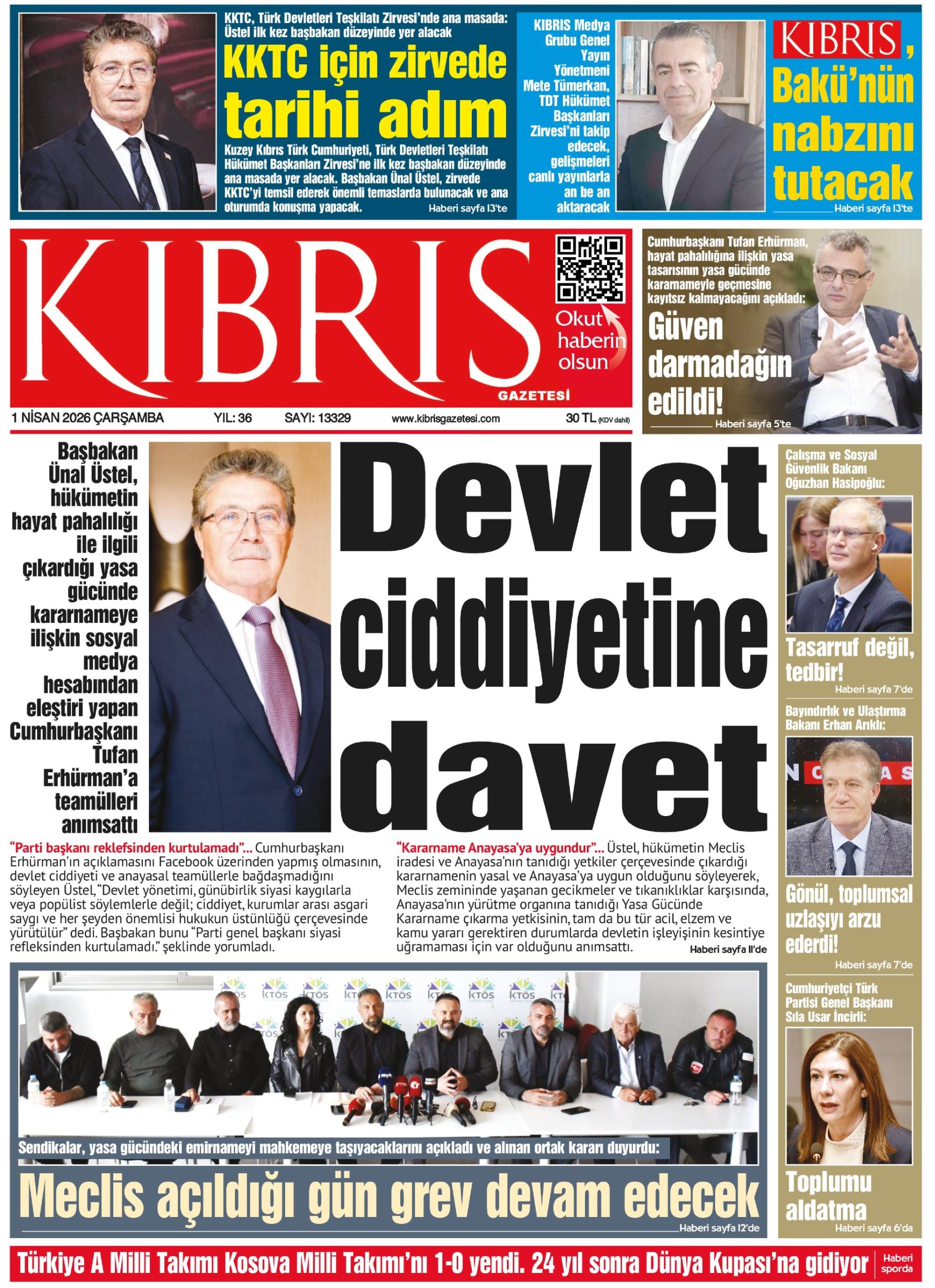 1 Nisan 2026 Çarşamba KKTC Gazete Manşetleri