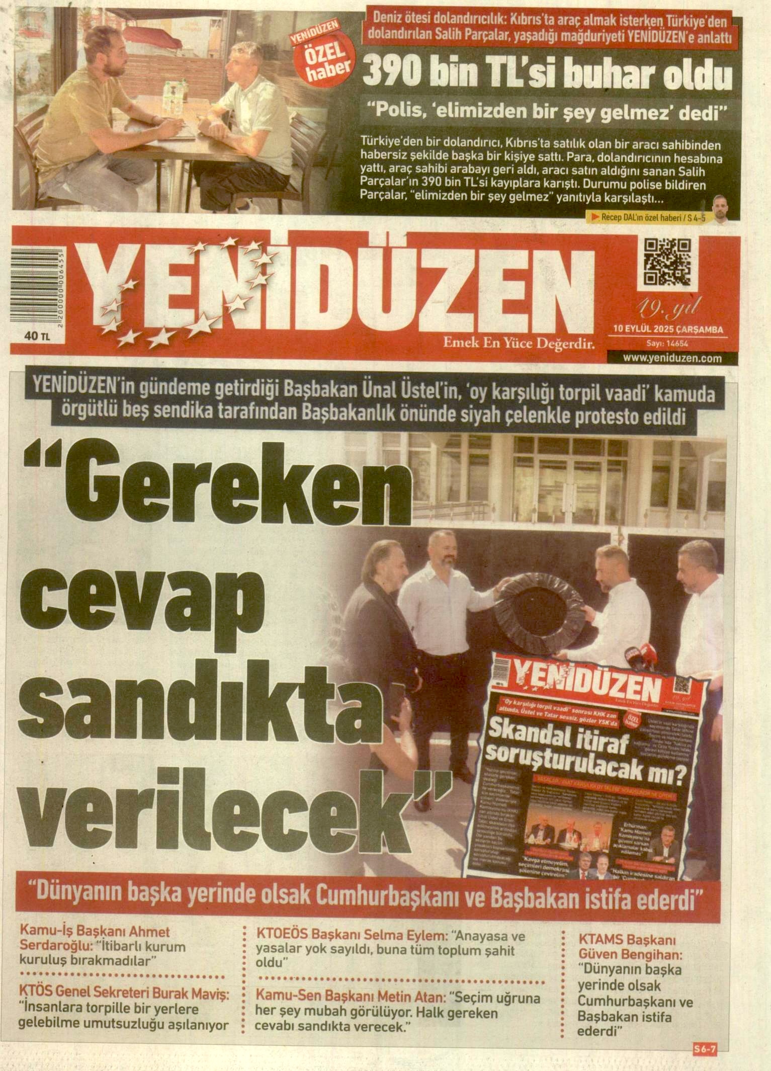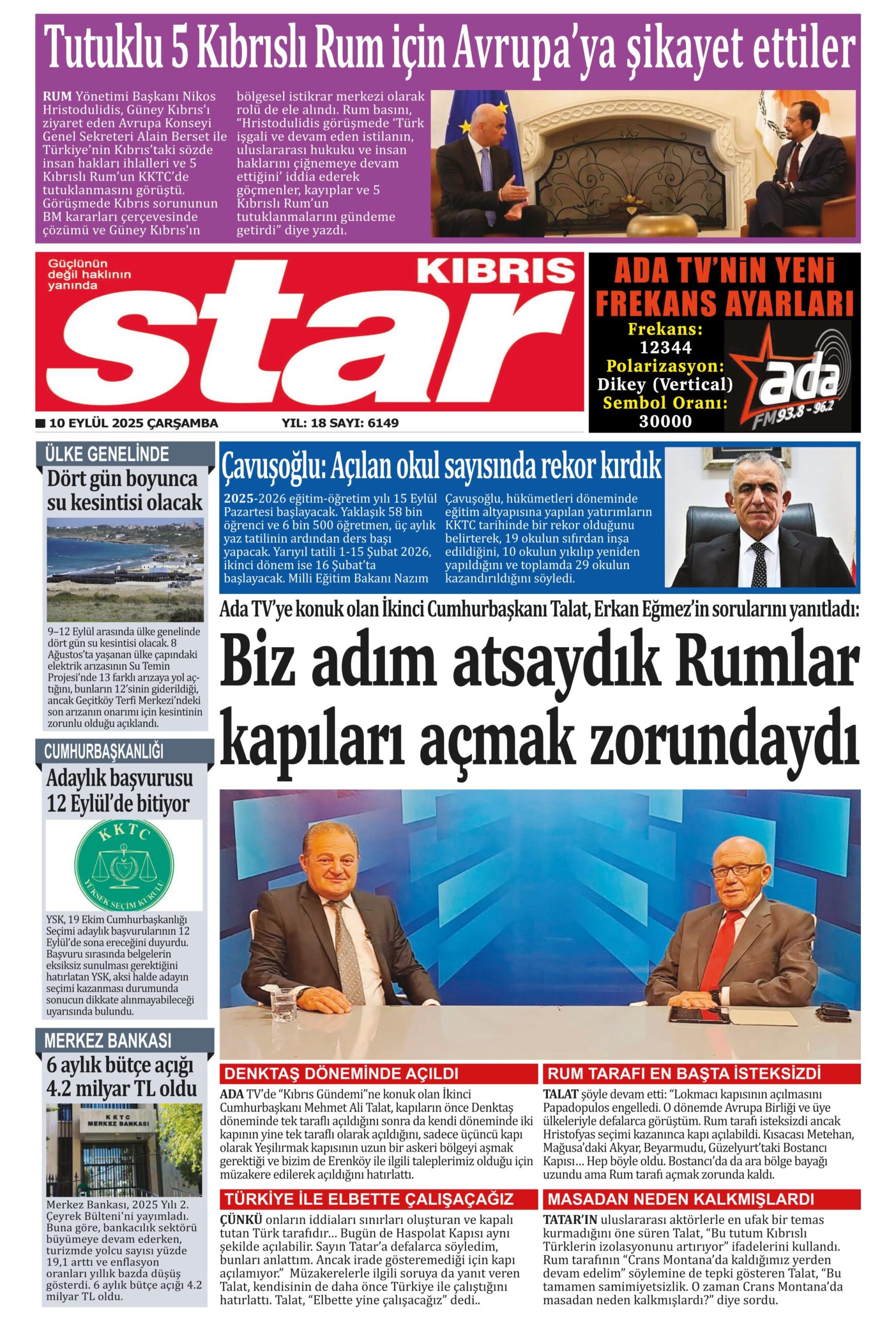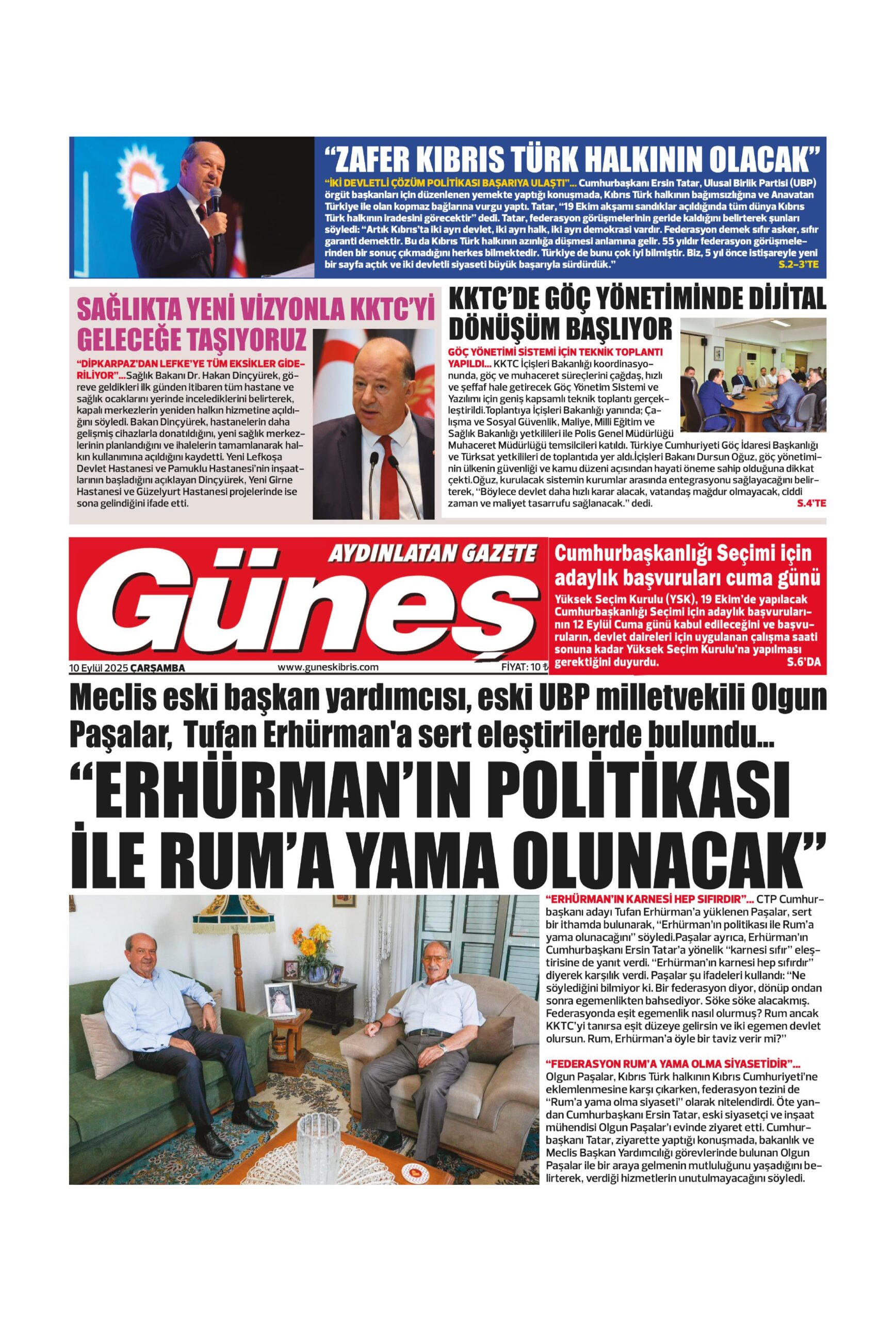 10 Eylül 2025 Çarşamba KKTC Gazete Manşetleri