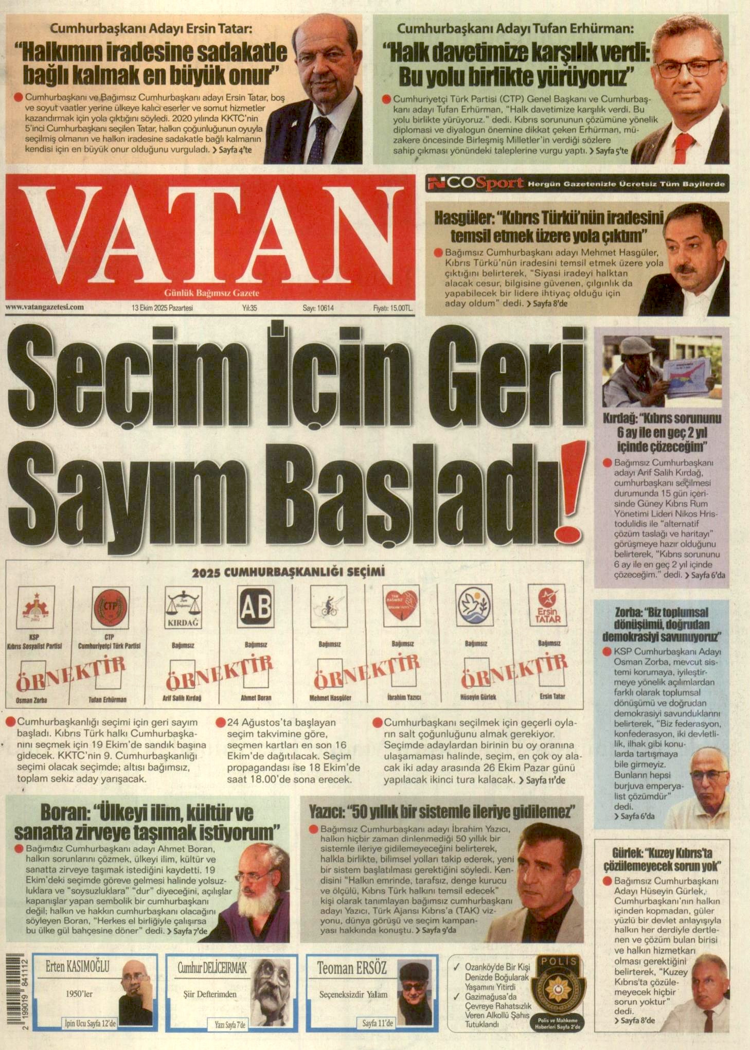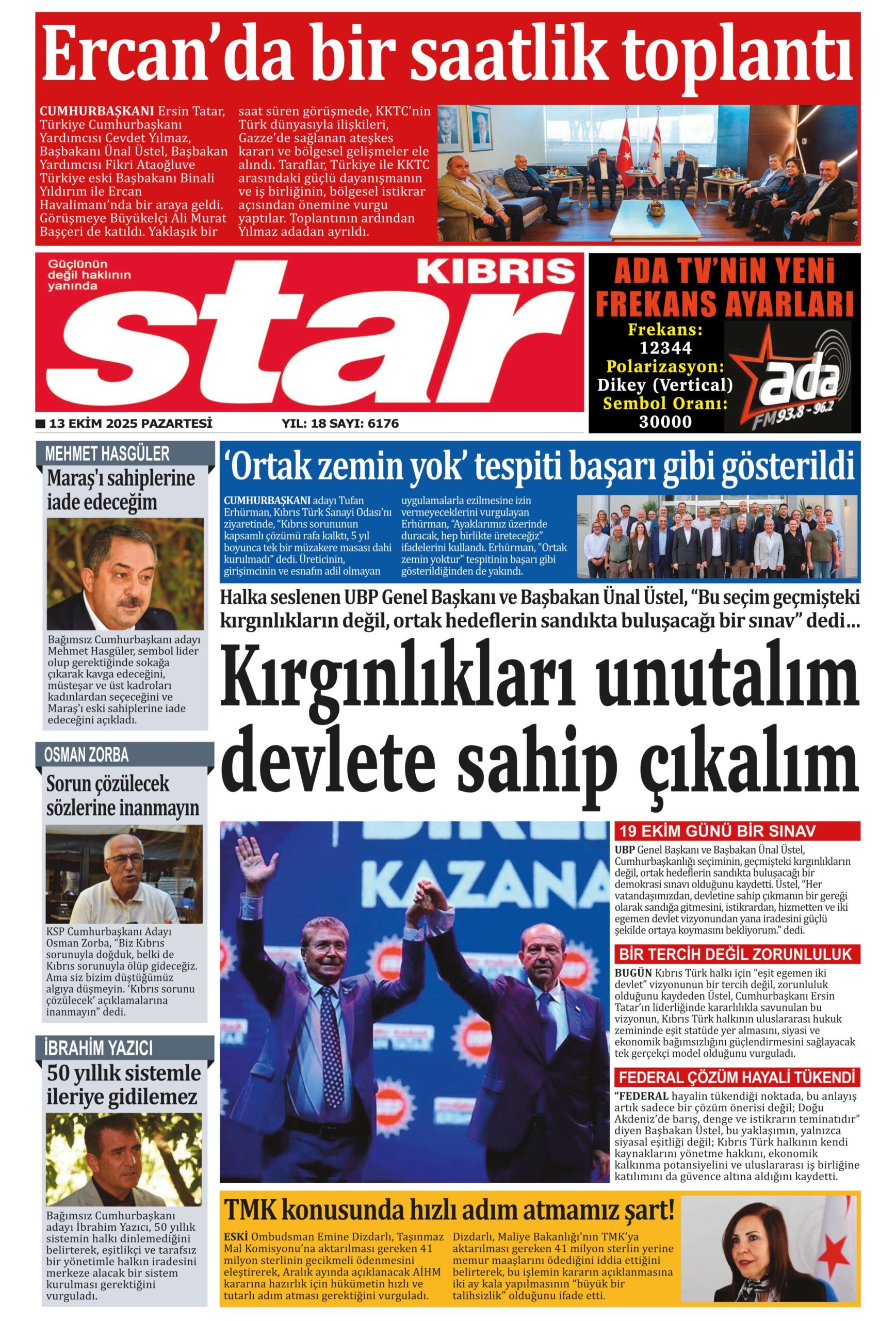 13 Ekim 2025 Pazartesi KKTC Gazete Manşetleri