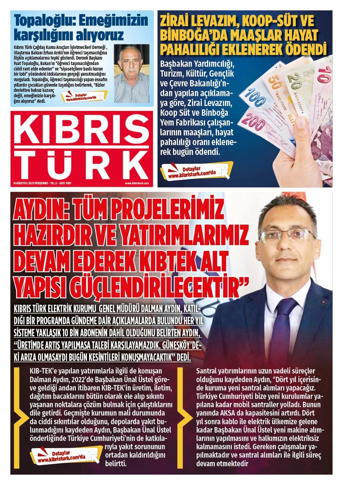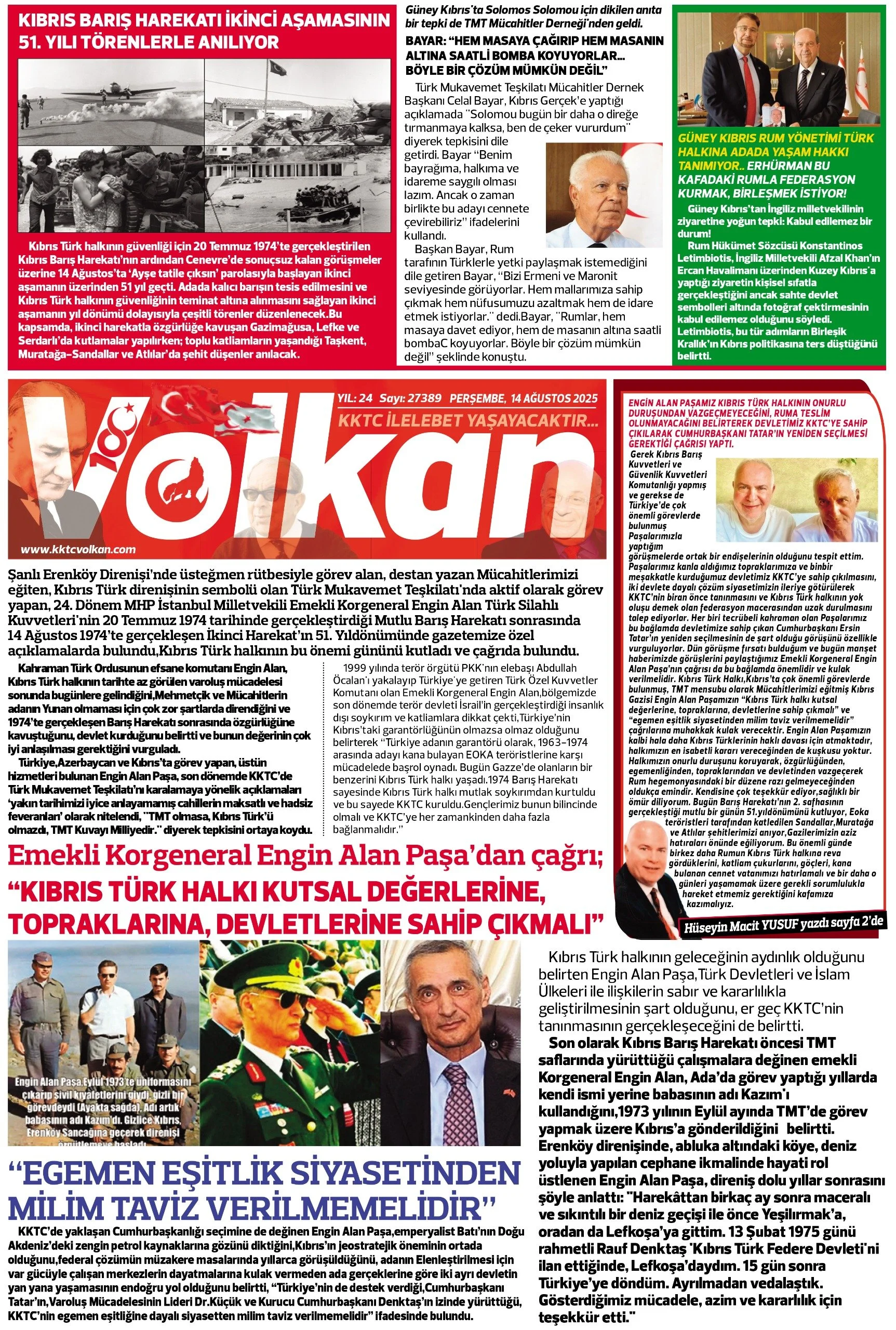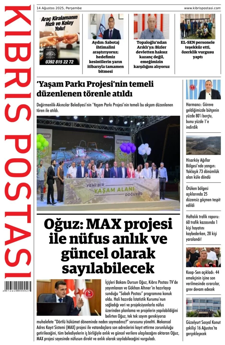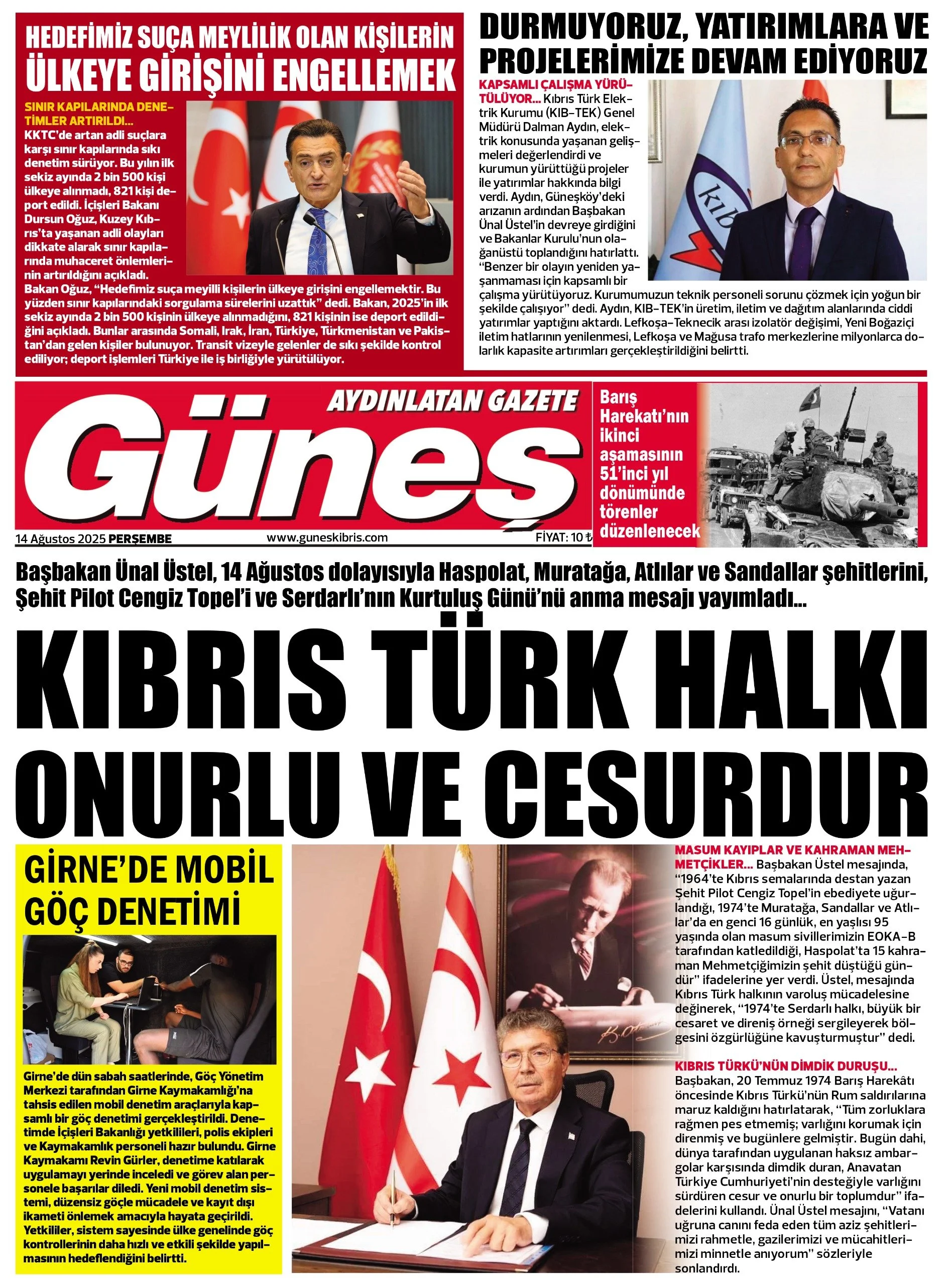 5 kişi ve şunu diyen bir yazı '508 SAS KIBRIS SU UYARISI! SENKUL'DAN VIZ düşmediği bugün 201 DAKİK Girno Belediyo Başkanı TAM Karaoglanogilbolgesinde Ozanko ütfen HABER mümku oiduğunca az kullanalım dedi. işimiz coccekte konusung I Depolanımiza yeteri kadar KIBRIS'TA FEDERAL CÖZUM DEFTERİ KAPANMIŞTIR! Dışişleri Bakanı Tahsin Ertuğruloğlu, federal çözüm defterinin bir daha acılmamak üzere kapandığınıi ifade ederek, ,Kıbrıslı Rumlarla ortak devlet kurup yaşatmanın mümkün olmadığını söyledi. gerçekc komşuluki iliskilori içerisinde egemen M clvsei vasip: par- koyması gerektial gerektigin vurguladı. Genel LTudanFrhür- agankoy KIBRIS'TA BARIS iKi DEVLETTEN madaKirista GECERI 'Ύ GİRİŞLERDE PARMAK iZi DÖNEMi BAŞLIYOR! İçişlori Bakanı Dursun odildiğini belirtti, Oguz, 0bine omelindomüm akın eyo' görseli olabilir4 kişi ve şunu diyen bir yazı 'Güröz: 'Grev devam edecek" Koop- Başkanı Bin- yazılı günü açıklama お公 tarafından LiçUncU reklamıyapılarak gibi ödenmiş veemekçi- lem- salabilmiştir. günlerdir durdu- yansıtılmışn devam Güröz, Koop Süt. Zirai Koopbank Güncel Persembe. Kıbris www.guncelkibris.com Agustos ELEKTRİK KESİNTİLERİ geçilmediğini sözle- rine ekledi. BUGUN BiTECEK ARAŞTIRIYORUZ SABOTAJ iHTİMALINİ Guiroz,4 yönündeki "Ceza yiyenler tabiki kamera ve denetime karşı çıkacak" Ulaştırma Arıklı, haftada genelinde Müdürü Tek) Genel diğinı, proje- kaynaklanma- bin 321ine yasanan ardındar kredi kapatıldığını açıkladı. ariza- 'Trafikte rallara uymayanlar YATIRIMLAR BORCLARIN tamamlanarak güç- veyoğun yana ARAŞTIRILIYOR ğmenkesintileri nemlirol oyna- dedi. yaklaşık belirtti. ariza yakalar okur seferinizv tanız ikonuşma- muayene döker gerekli cezaları dedi.' görseli olabilir1 kişi ve yazı görseli olabilir1 kişi ve şunu diyen bir yazı 'ZIRVEDEKIHABERINHMERKEZI HABE ZIRVEDE MERKEZI www.zirvekibris.com Y5 Sayı: 509 14Ağusto stos2025 Persembe ersembe ZIRVE KIBRIS Erhürman "Hiç kimse bu halkı yok sayamayacak" Cumhuriyetçi Türk Partisi (CTP) Ge- |Baskanı veC umhurbaşka Tufan Doğanköy' düzen- gördü. Girnelç Gime Başkani Senkul, Dikmer Reladive Belediye Baskanı Yüksel yelerinin rkesle aelece- dedi dışarıya Erhürman lmadığını, koparıl- diğını belirtti. Egemer parças bizimdirv soke alacağız" Erhürman, ษิท kararla- oplumlu, esitliğe dayalı federal yapı olduğunu hahrla' görseli olabilir2 kişi ve yazı görseli olabilir