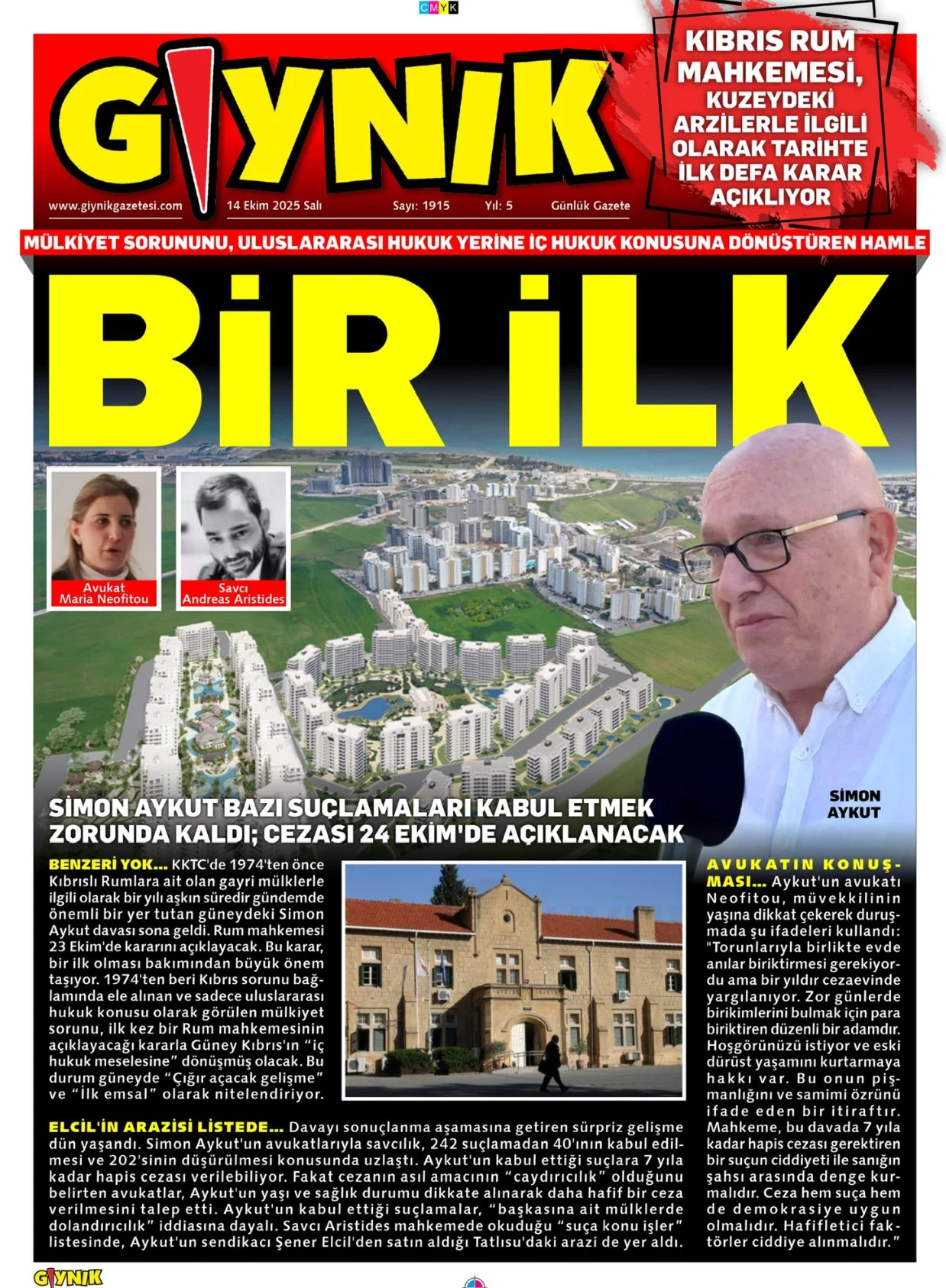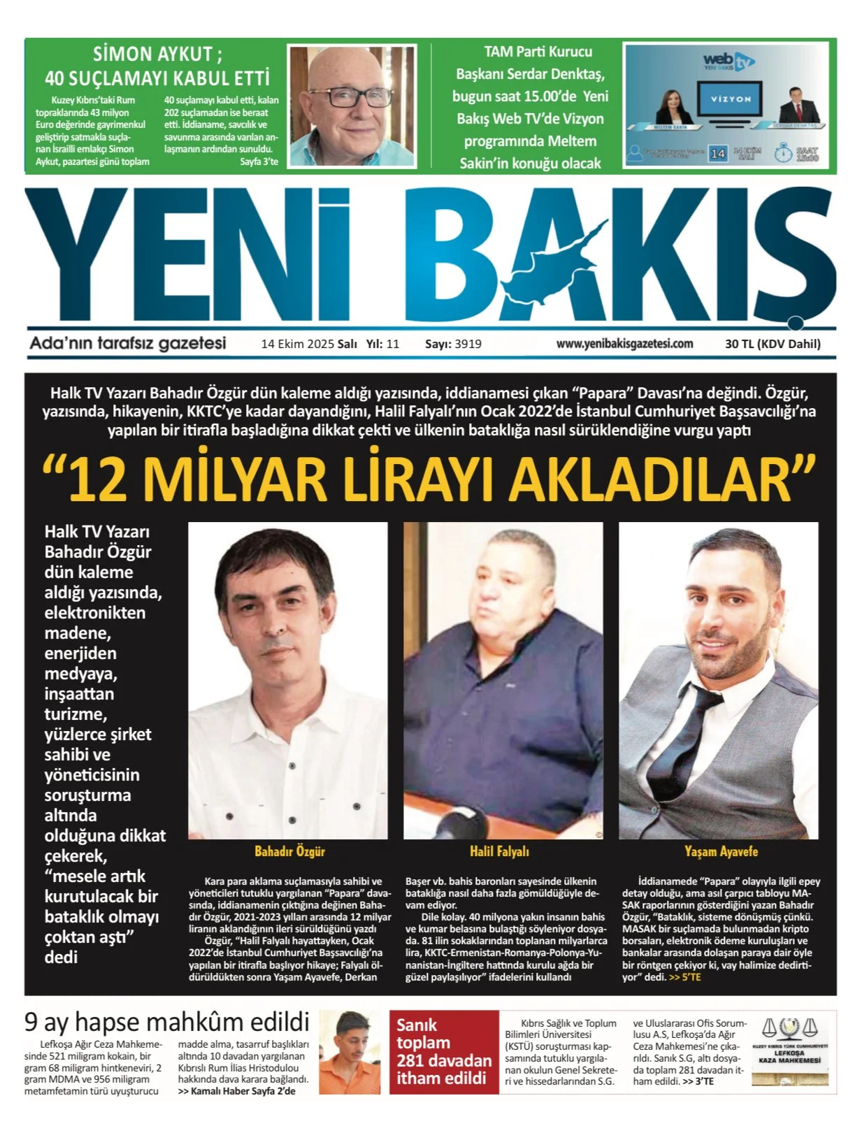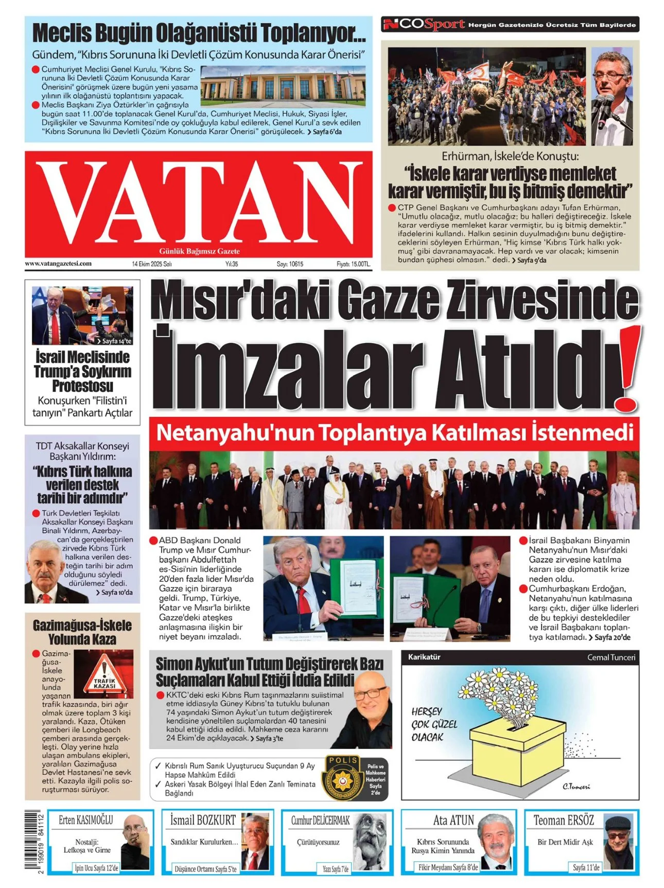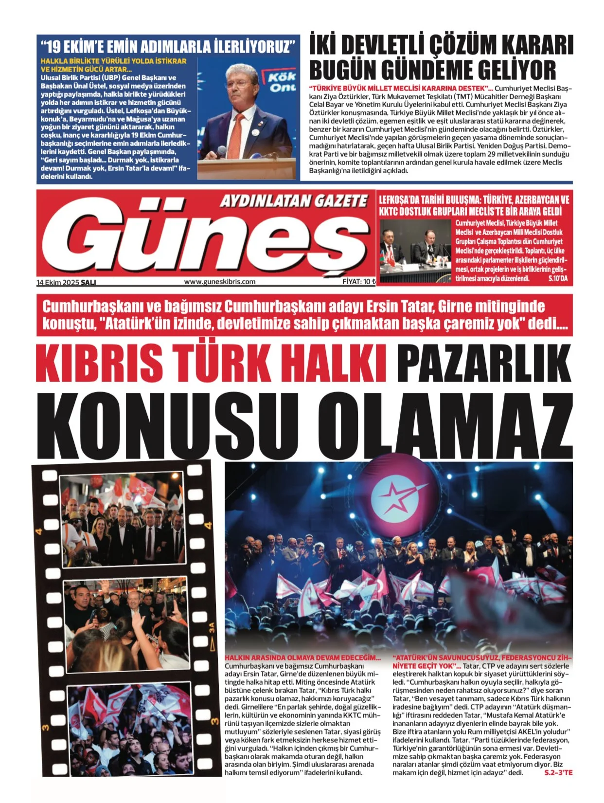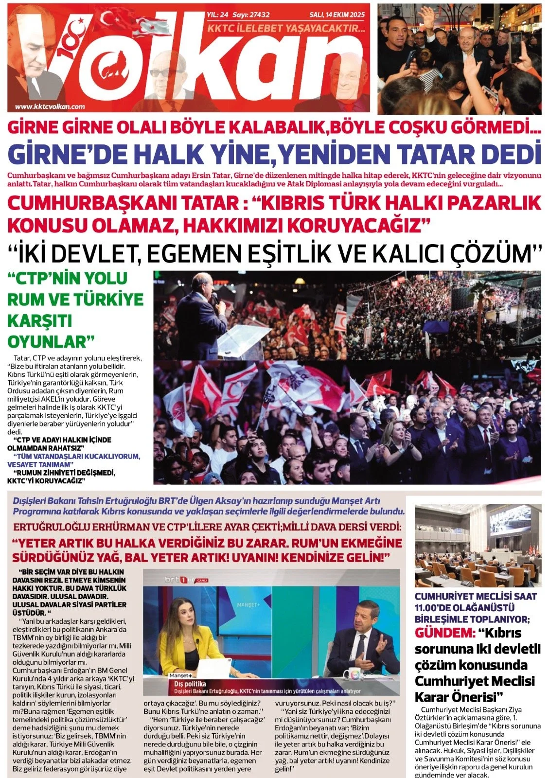 14 Kasım 2025 Cuma KKTC Gazete Manşetleri
