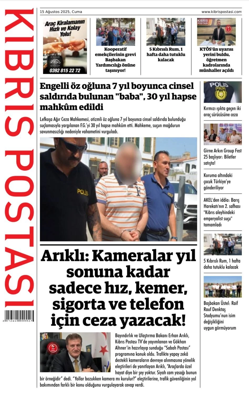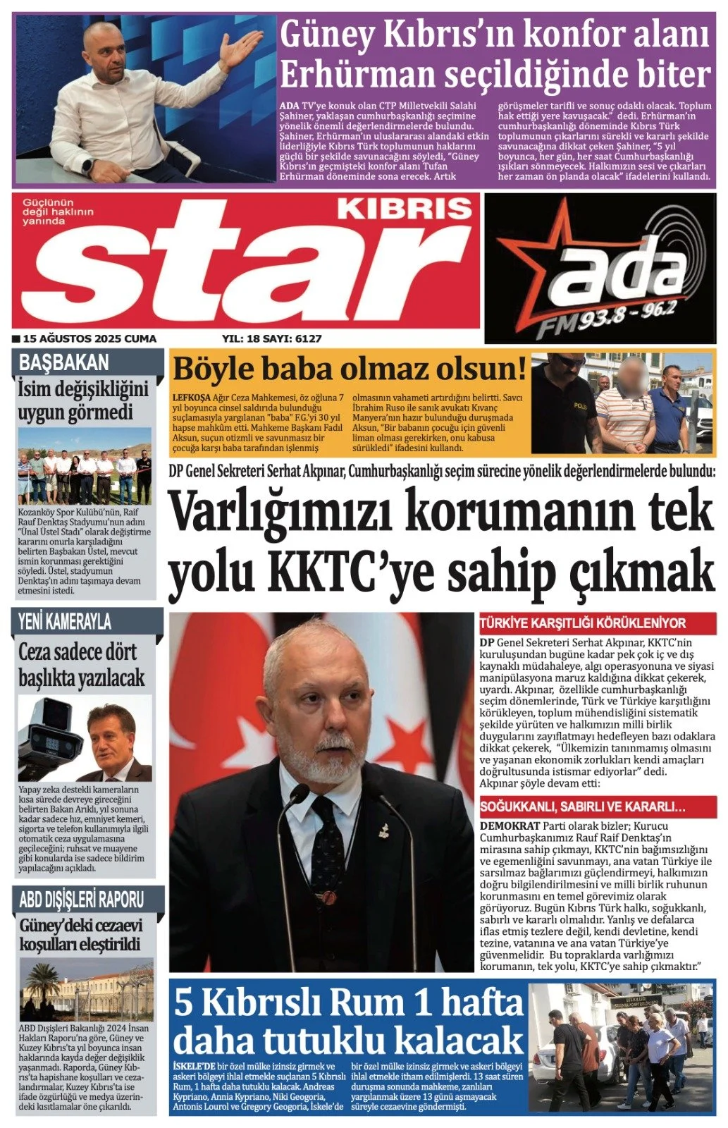 5 kişi ve yazı görseli olabilir7 kişi ve şunu diyen bir yazı '500 551 KIBRIS BAŞBAKAN ÜSTEL T2 DAKİK NOKTAYI KOYDU! meveut UYGUN TAM HABER DEĞİL! 00 15 olarak ลิตบอ karşıladığını Istedi. TOPLUM MUHENDİSLERi TÜRKİYE'YE KARSI maruz kaldığına dikkat çekerek, uyardı. Genel Sekreteri Serhat Akpınar, nin kuruluşundan bugüne kadar pek kaynakhı algı operasyonuna siyasi anipülasyona SAHADA! cumhurbaşkanlığı seçim odaklara Türkiye Türkiyekarsıtlığı ekareiank Turkve intanınmamışolm nH ---- muhendisliğini မင halkımızın milli birlik istismar ediyorlar" KILINC PAŞA'DAN GURURLANDIRAN HABER SAPIK BABAYA ÖDÜL GiBi CEZA! Lefkoşa Ağır Ceza Mahkem- cavrada sevinç Cinser saldırıda bulunduğu suçlamasıyla RUM AJANLARIN GÖZALTI SURESİ UZATILDI *baha" RG'vi hapse mahküm etti. Izinsiz girmek askani LE hatta' görseli olabilir3 kişi ve yazı görseli olabilir15 kişi ve şunu diyen bir yazı 'TфKwHaR ZIRVEDEKI ABERI ww.zirvekibris.com Yil:5 Saye510 MERKEZ Curea Cunto YAŞAM PARK ZIRVE ZİRVE:KIBRIS KIBRIS Değirmenlik gelişmeye devam ediyor Değirmenlik Akıncılar Belediyesi' nin öz kaynaklarıy- la inșa edilecek Yaşam Parkı, yürüyüş yolları, kafe, düğün salonu, amfi tiyatro ve tesisleriyle bölge- ye yeni bir sosyal yaşam alanı kazandıracak. Değirmenlik Akıncılar Belediye- metrekarelik Projesinin aşam ravezir- olaraky dinlenme alanları ralacak. Yojatma CTP kladi, Başka Erhür- zamandabir yenin projesi KINCIL alacak Sampiyon Melekler kaynaklarıyla apıldiğina dayanış başarabileceğimizin kanıtıdır dedi.' görseli olabilir2 kişi ve şunu diyen bir yazı '"ARTIK Lefkoga'l Resmi Kabz küne Memurlugu raymen veterli naS ildi ဋရင်ရသပ်ခါ်း ONLAR ONLARDÜŞÜNSÜN" belirterek Bugün Daha faz- Atan dah kümeti Aruk aba: düşunsun per- KTAMS Başkanı Güven talebimi eleg- talc- Personel vlemlerimizi gelinchiliriz" altını konuşlu. Kıbris bjektif fo Tarih:1 15 Ağustos 2025 Cuma Sayı: 116 Yıl:1 www.kibrisobjektif.com Turizm, önemli ivme kazanır KKTC'nin yeni turizm ata- değerlendir Yönetim Kurulu üye- Arar, projening devamlıhı- önemli ıldığı- mediği vadede madığı anım- nın dileği- ederek önerilerde "Biz birleştireceğiz, bütünleştireceğiz" Kıbrıs projesinin adayılu ol- otellere turist çeken bakmanı ristinin yeniden kazanıl- içinb fırsatın iyi değerlendirilmesi kaydetti. geldi. palan Birtuken rhurman etkinlikteyap kuzanu- dedi.' görseli olabilir6 kişi ve şunu diyen bir yazı 'AHBAP Agustos2025 Cuma wwwahbangaretesi.com Saye 200 Infogiahhapga7etesi.com GUVENII DOCRU HARFR AHBAP FADIL AKSUN'UN SÖZLERİ SALONDA SOĞUK BİR RÜZGÂR GİBİ ESTİ: ÖZEL K TARİHİNE 'KAHRAMANI OLMASI GEREKİRKEN KABUSU OLDU" "BABA SEVGİSİ OTİZMLİ ÇOCUČUN İÇİNDEKİ KARANLIĞI YDINLATACAGINA, SANIK ONUN TEK ISIK KAYNAĞINI DA SÖNDÜRMÜŞTÜR" KARAR DAHA GEÇTİ... Lefkoşa Ağır Ceza Otizimli bireylerin rahatsızlıklarından faydalanılmasic enhafif sure çocugun davasınd: T olmasını, degerlendird Aksun,"Sanıl guveninden cocиAи durumu hafifletici faydalanması saniko a gözlerden seller Kararda,magdurur iletişim nedeniyle durumdan agırlaştıric faktorler arasında aldi. Aksun, mahkeme |hapis oldu. imanın ลฐนท้นผิา mezar bluşunun Devrim Demir -Ahbap Gazetesi' görseli olabilir