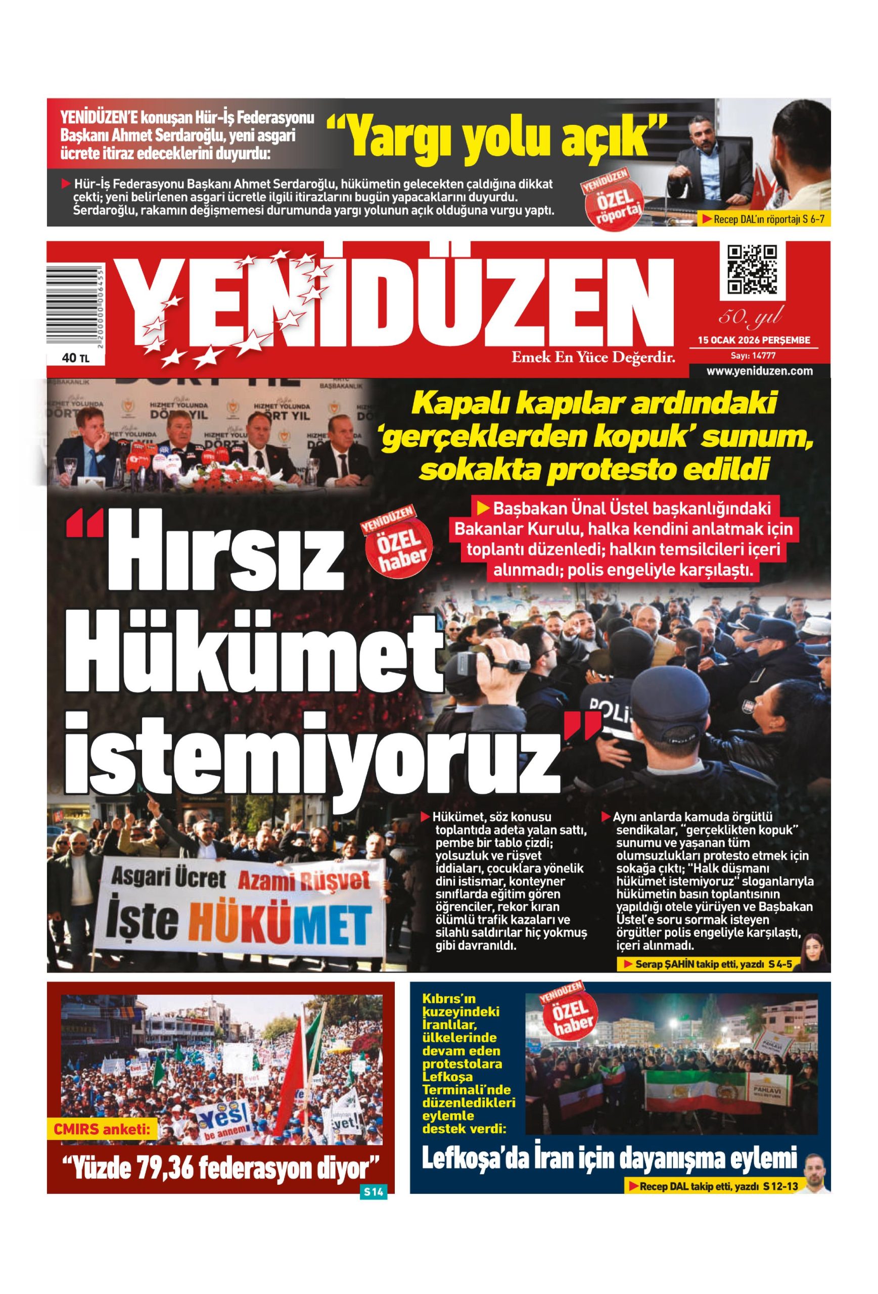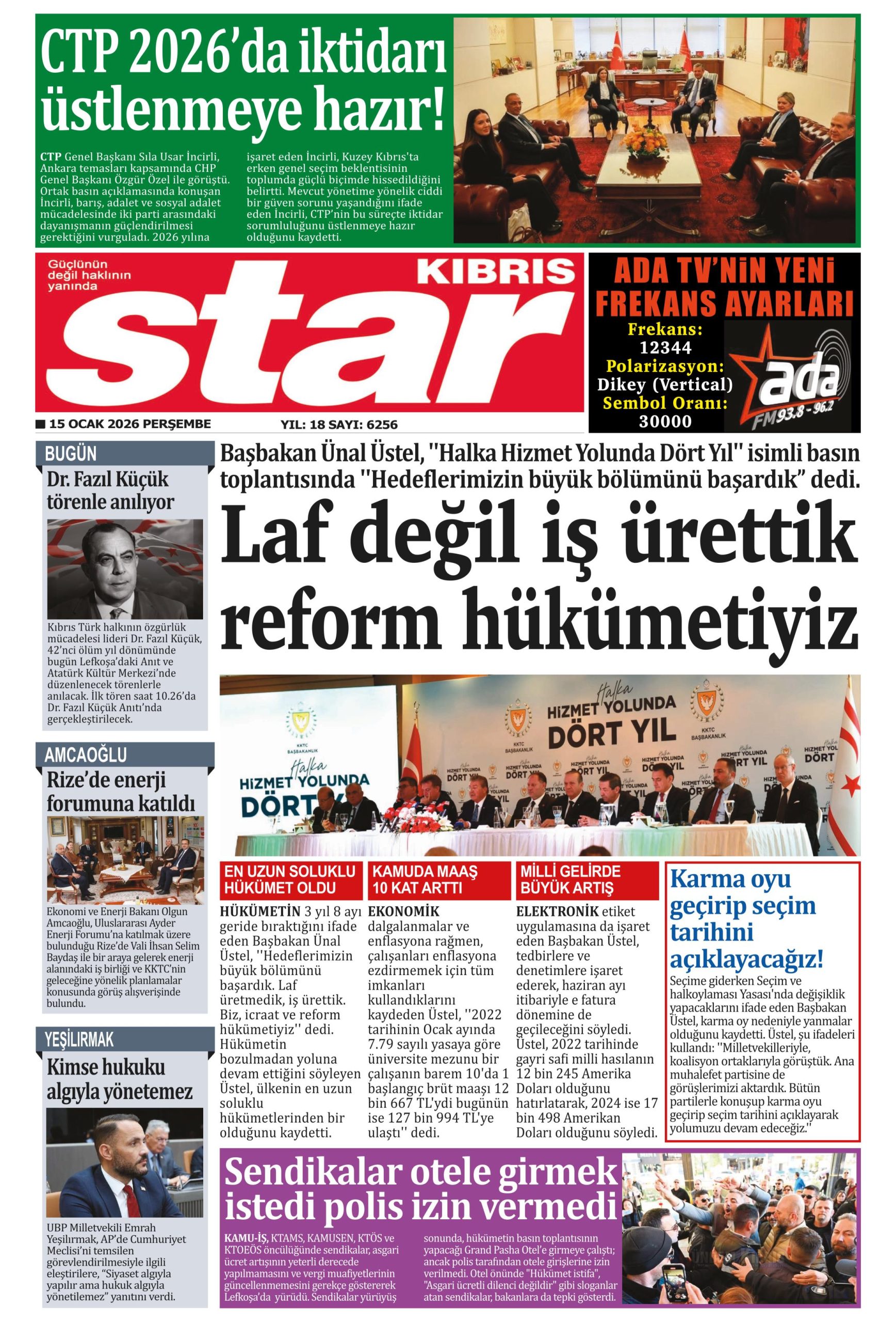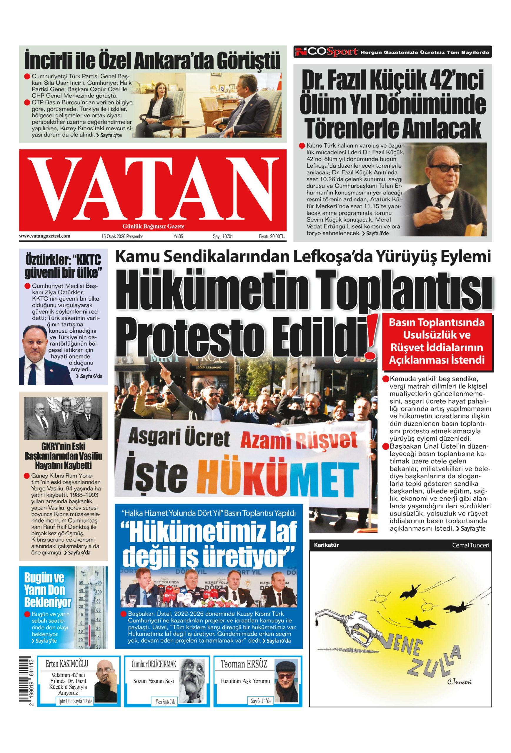 15 Ocak 2026 Perşembe KKTC Gazete Manşetleri