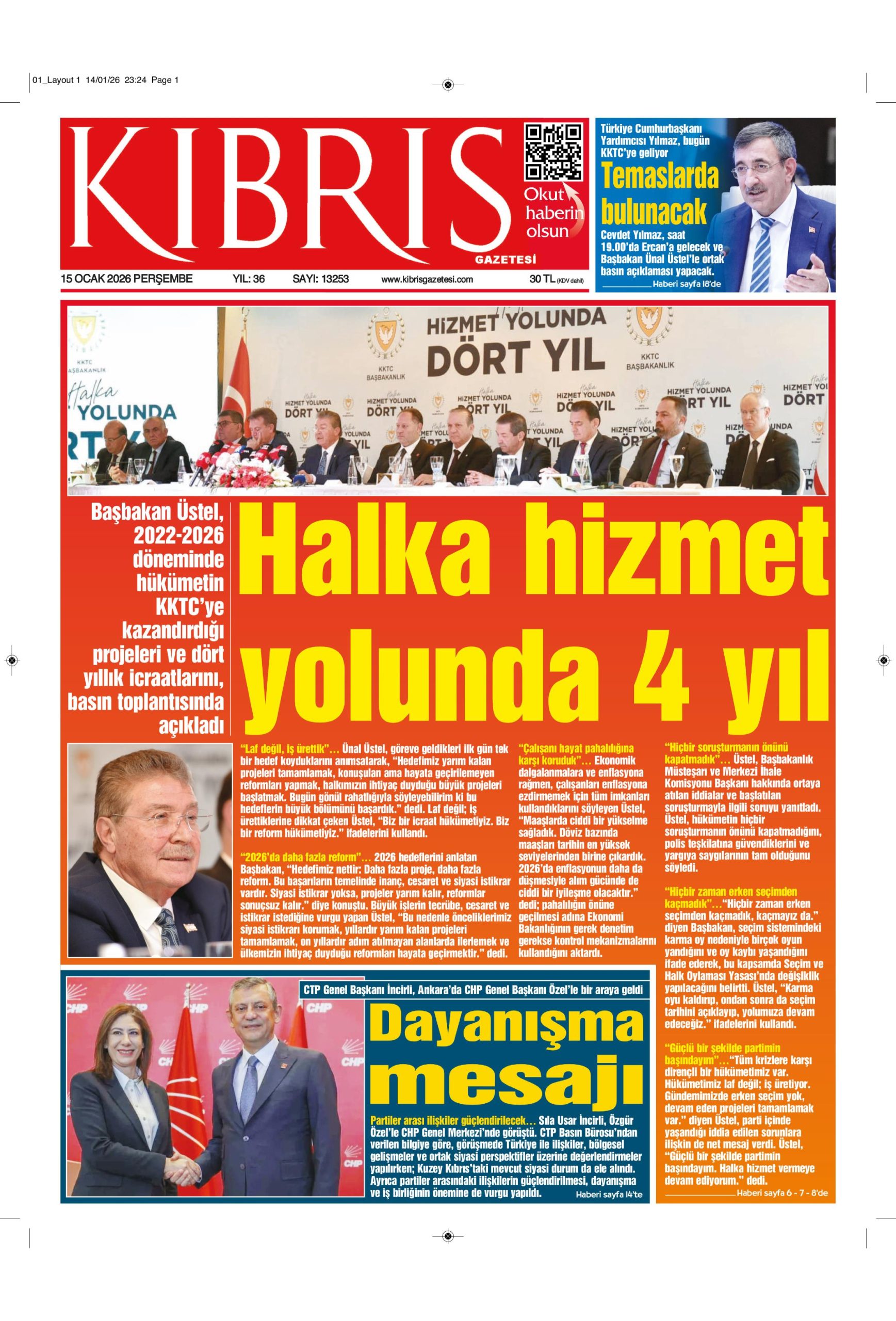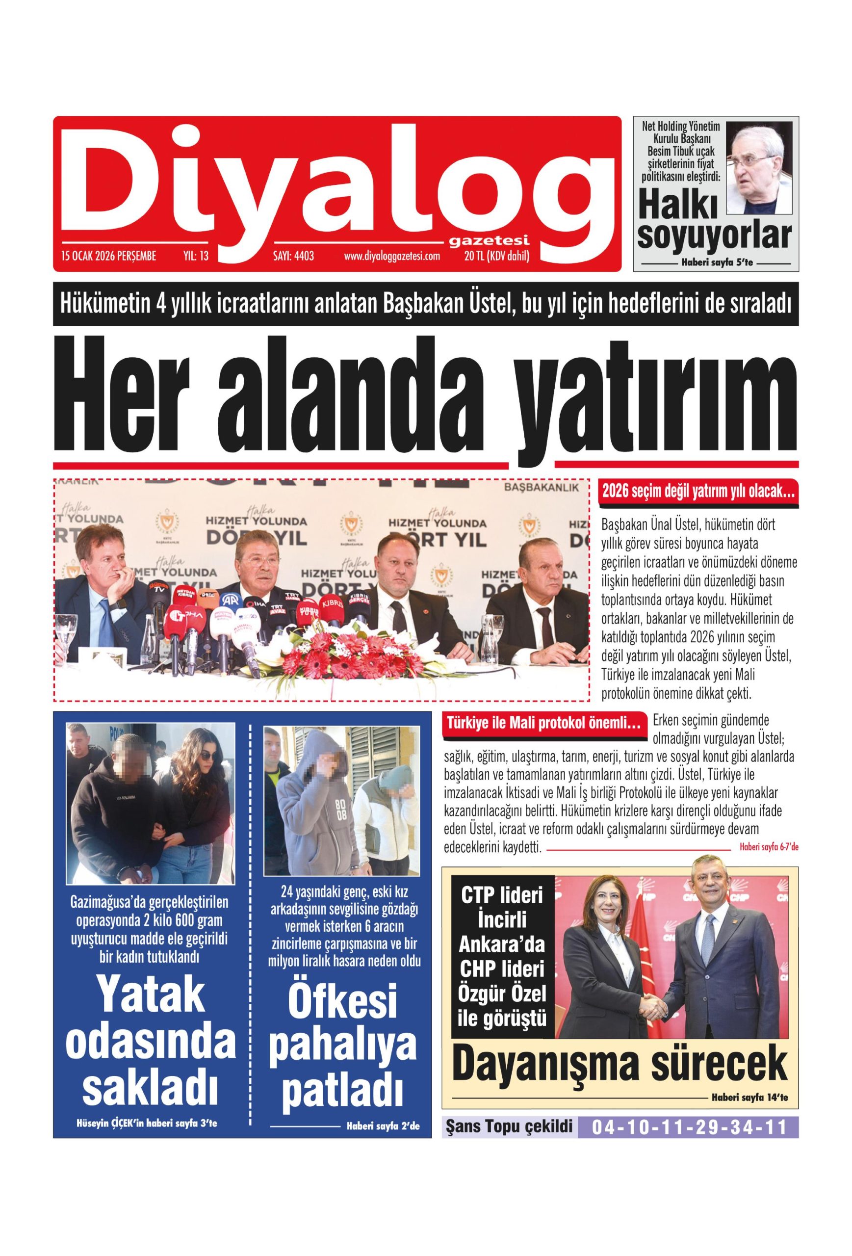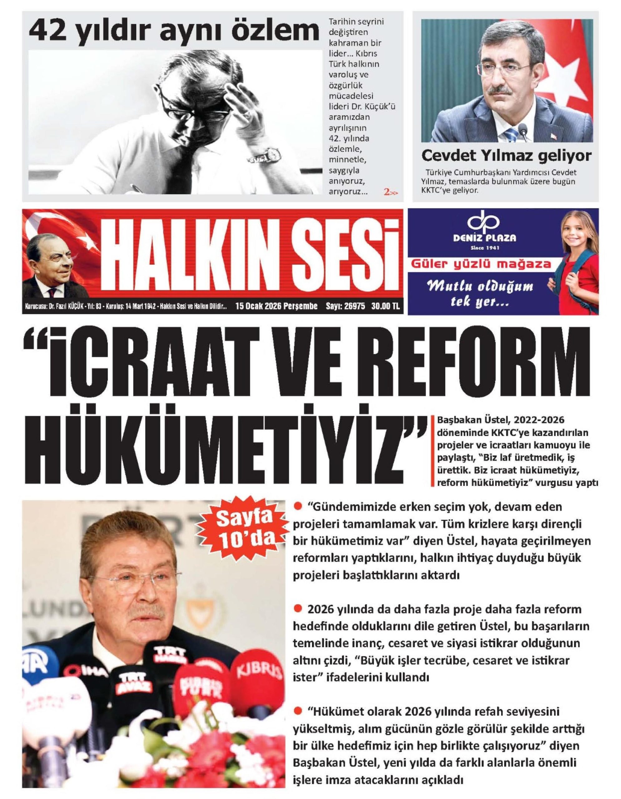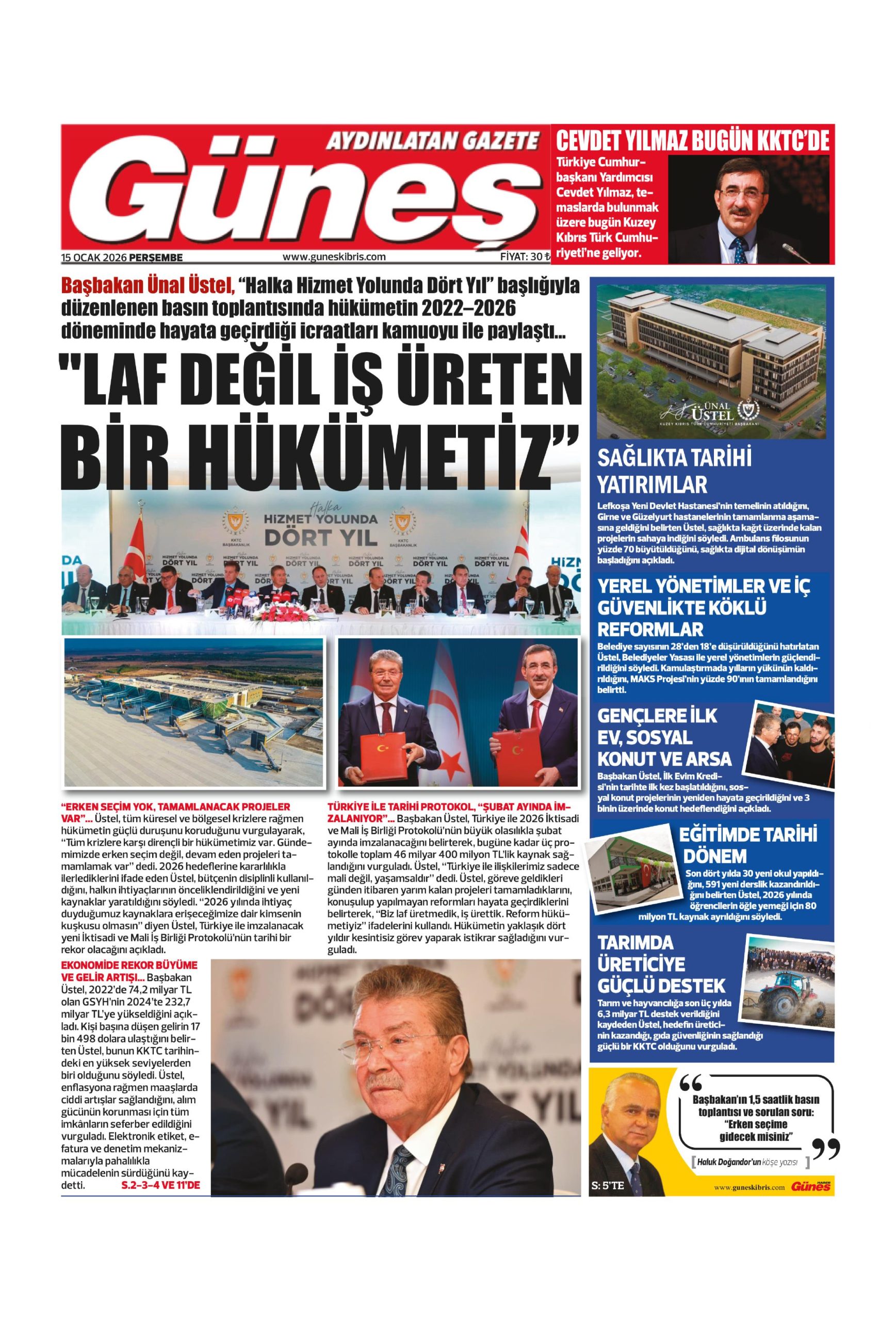 15 Ocak 2026 Perşembe KKTC Gazete Manşetleri