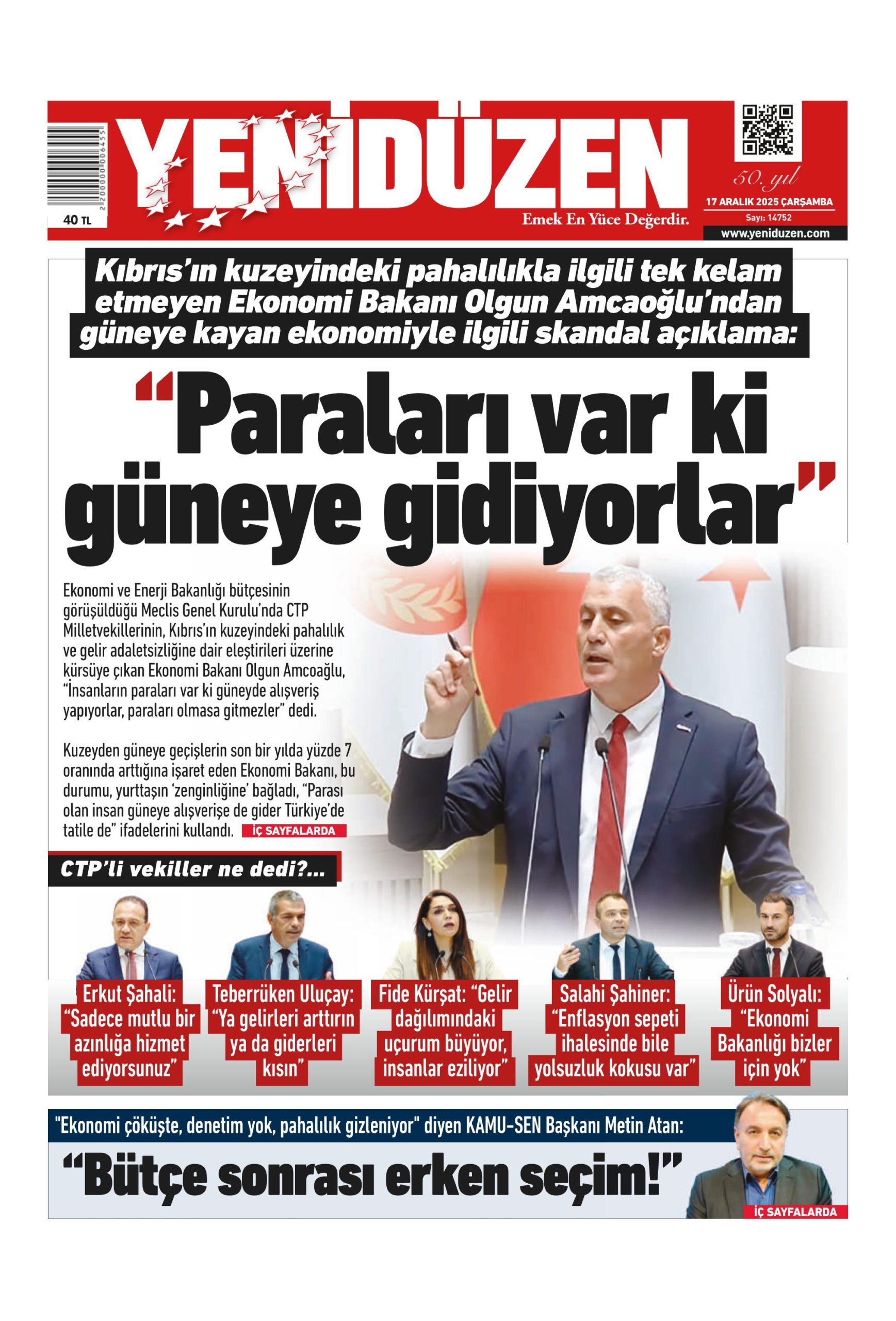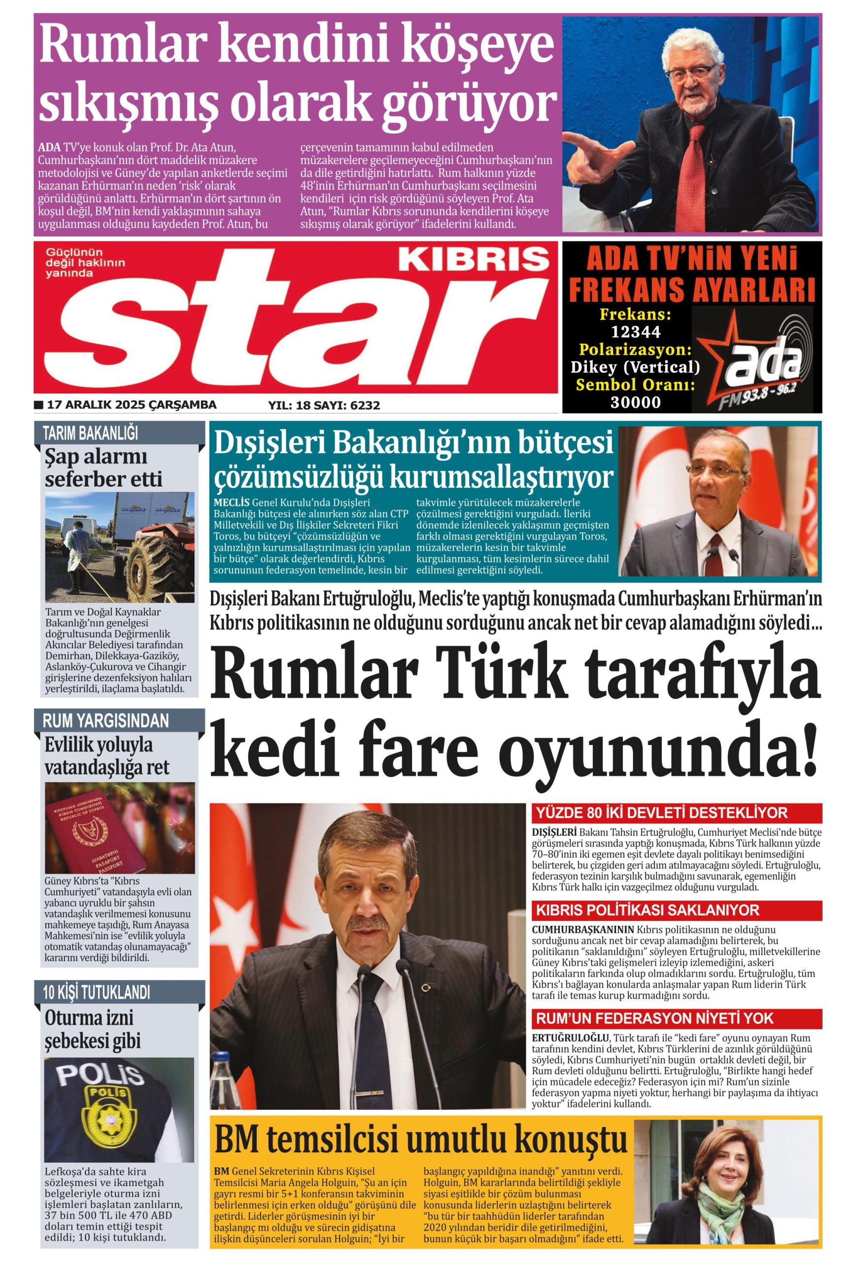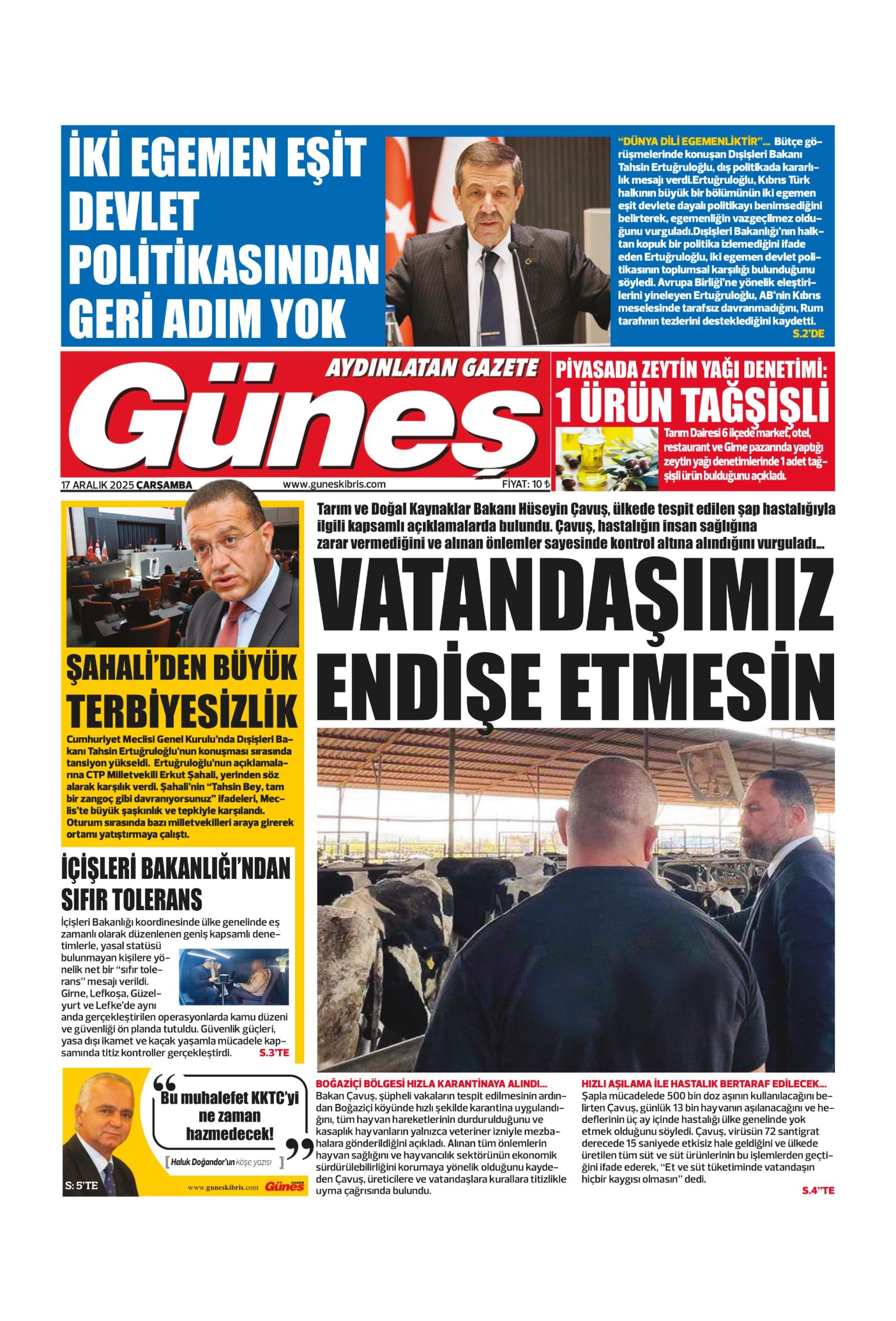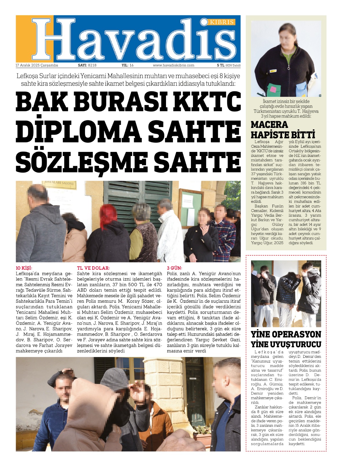 17 Aralık 2025 Çarşamba KKTC Gazete Manşetleri