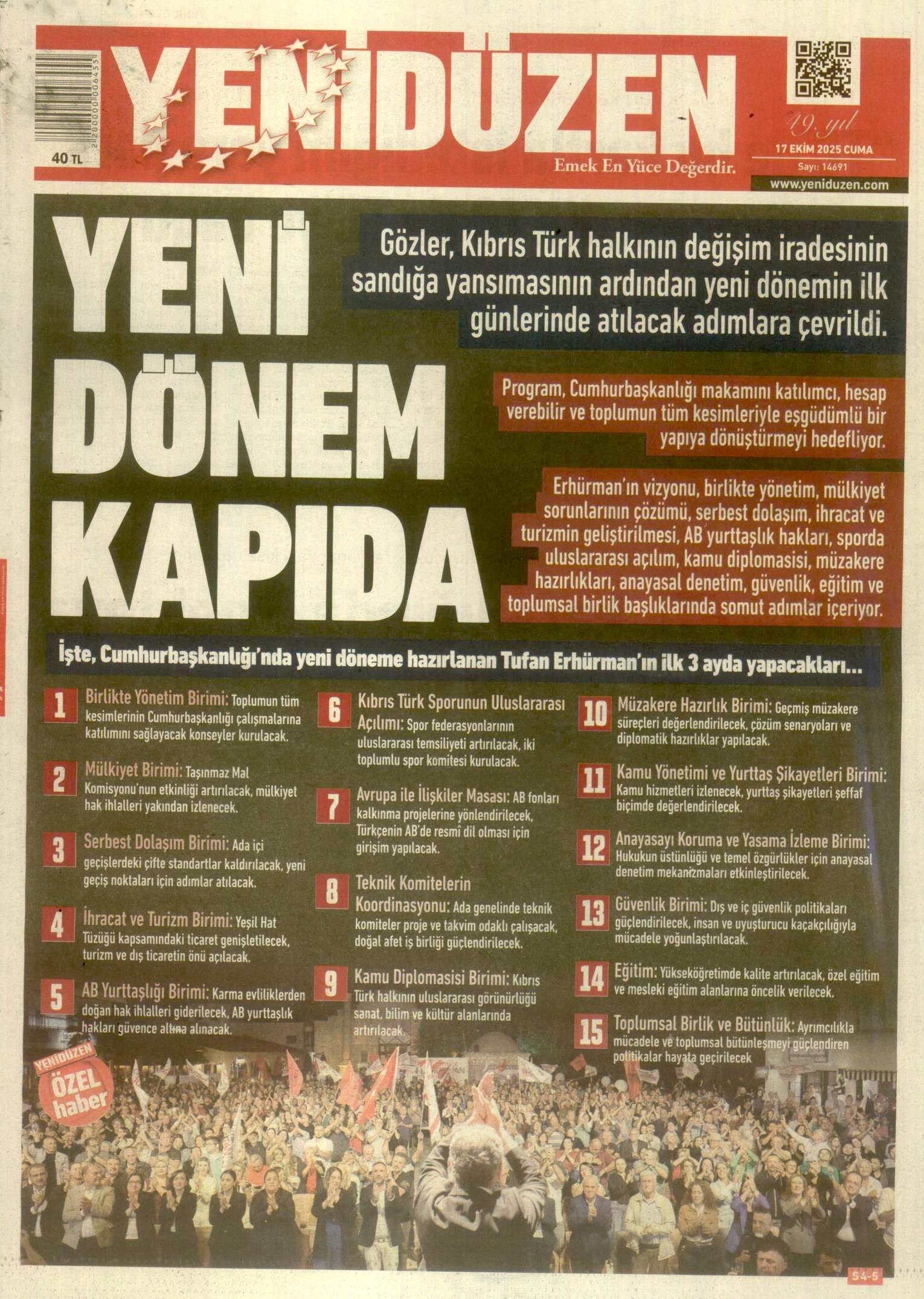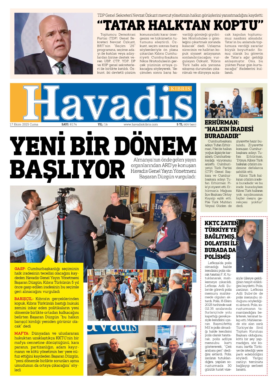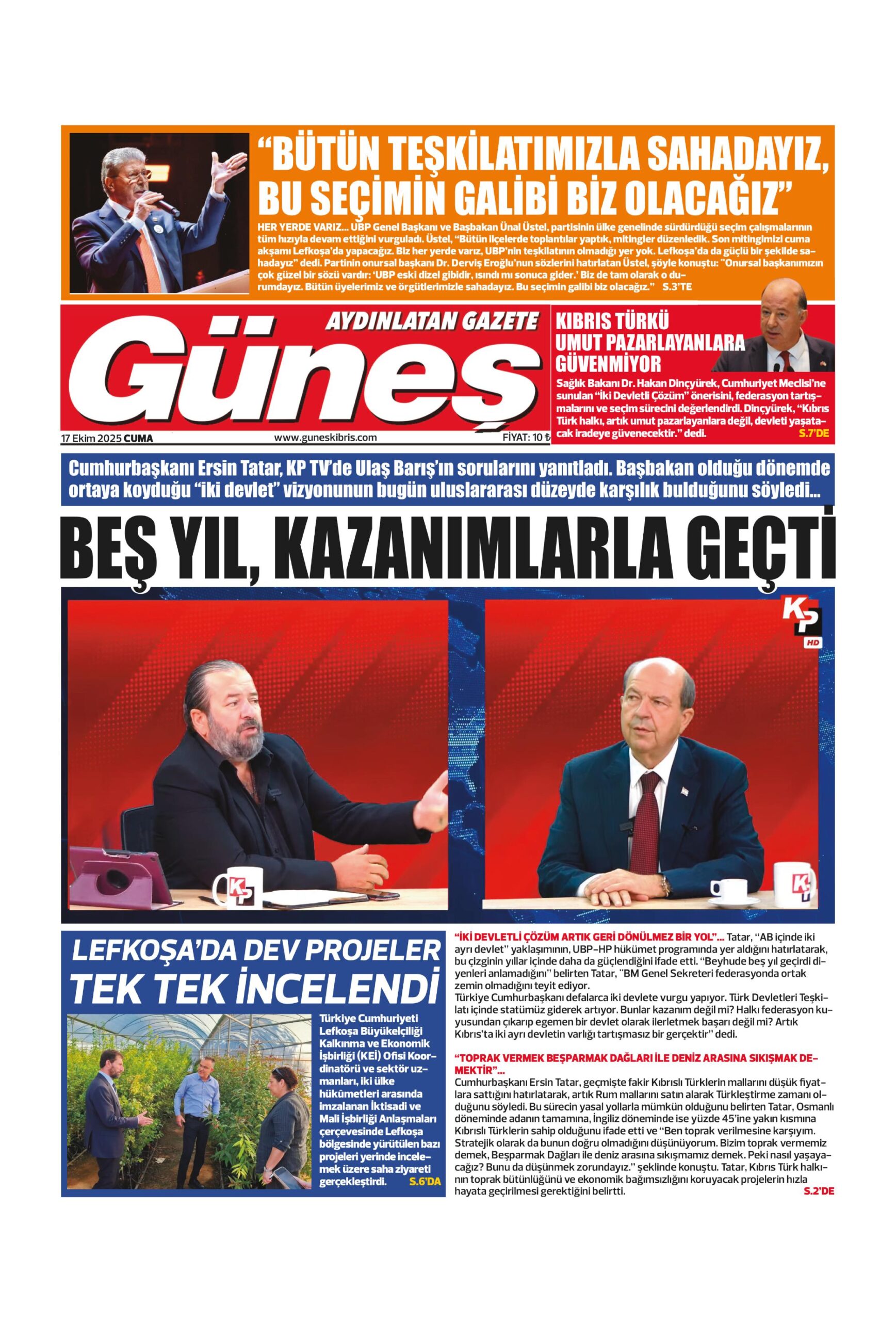 17 Ekim 2025 Cuma KKTC Gazete Manşetleri