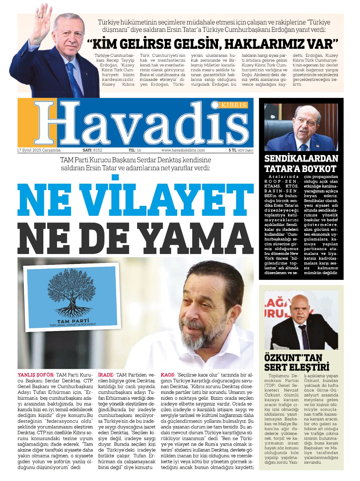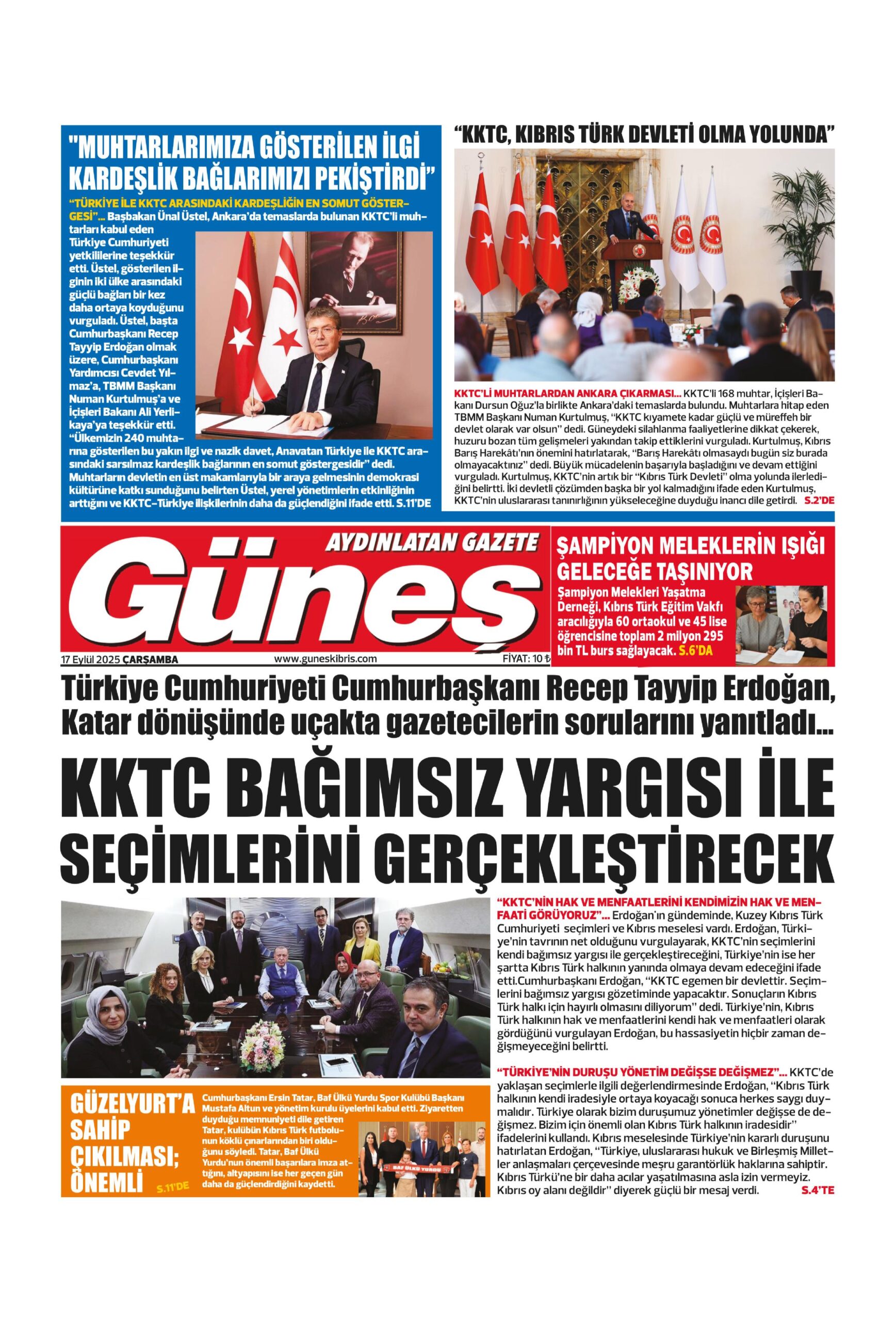 17 Eylül 2025 Çarşamba KKTC Gazete Manşetleri
