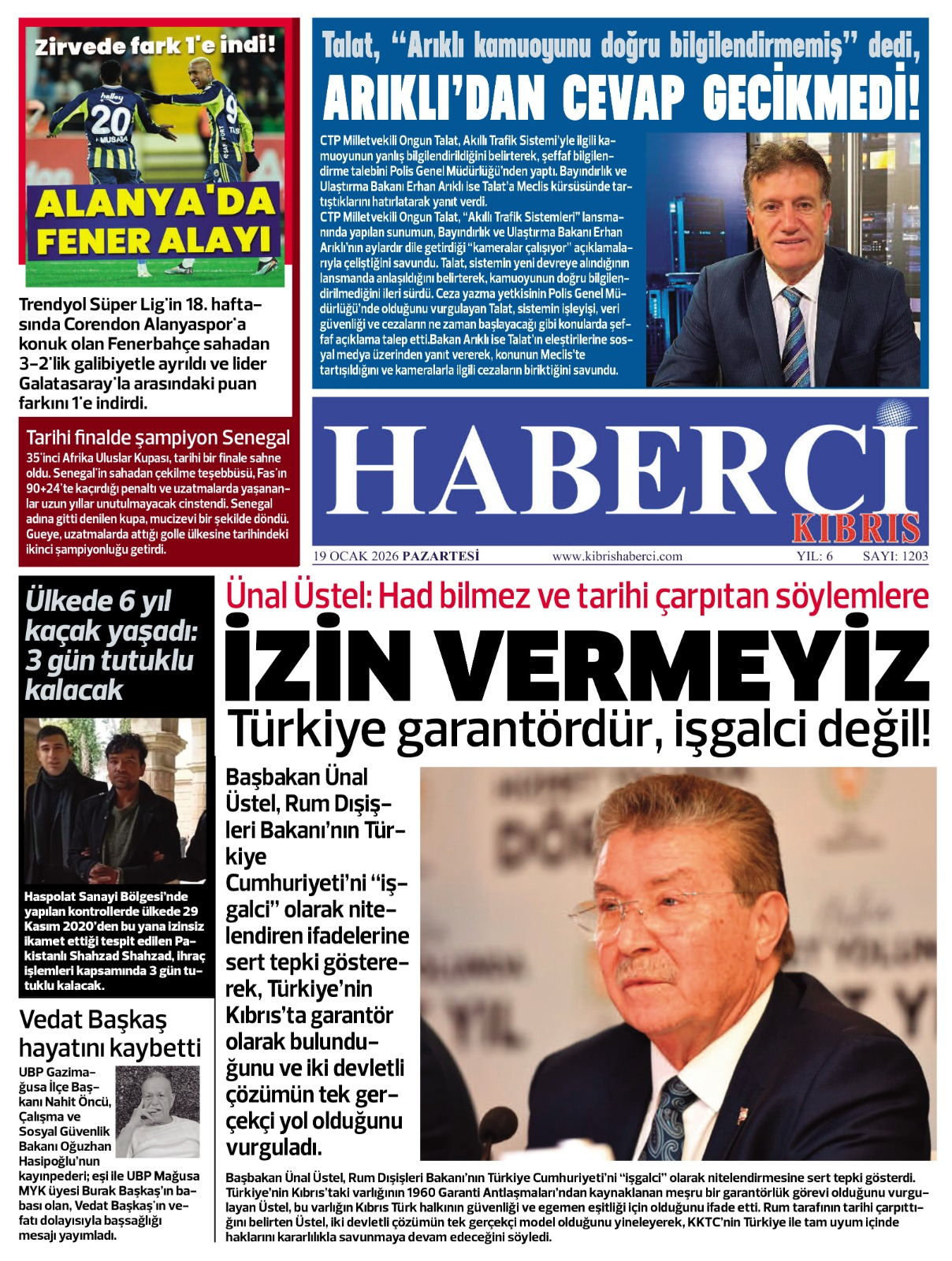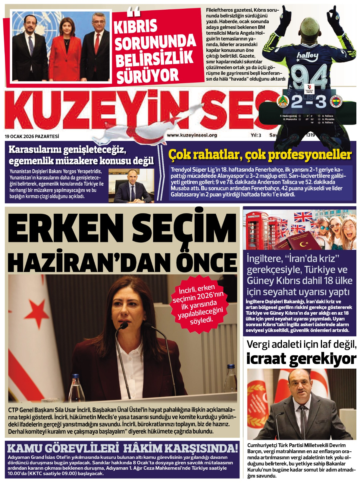19 Ocak 2026 Pazartesi KKTC Gazete Manşetleri
