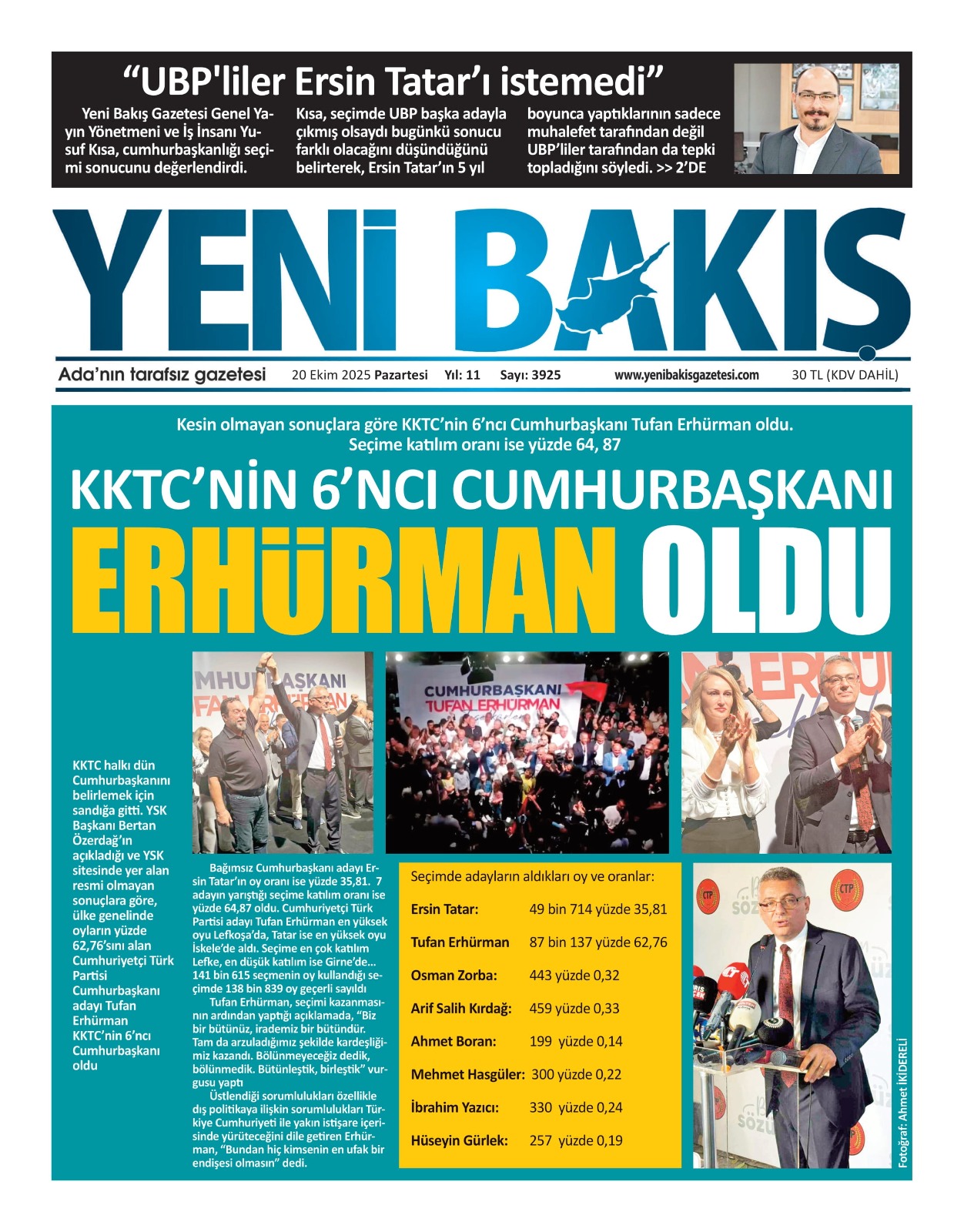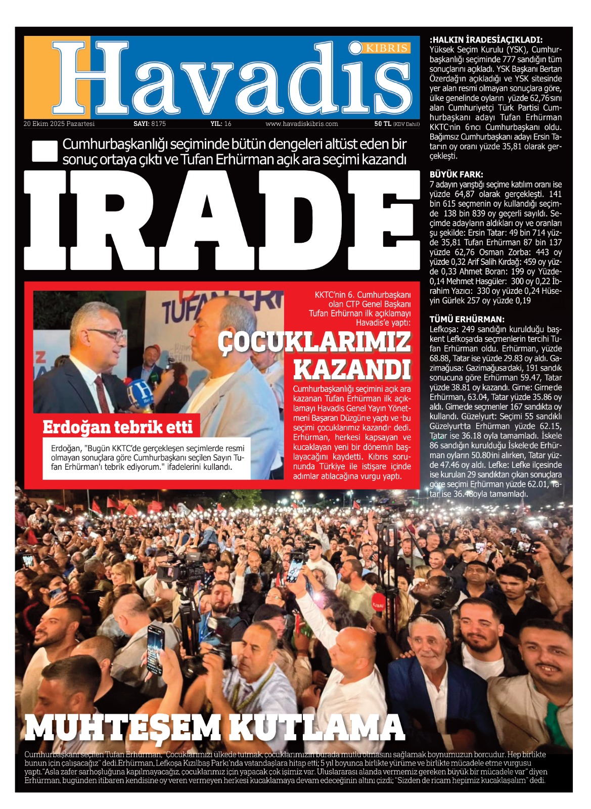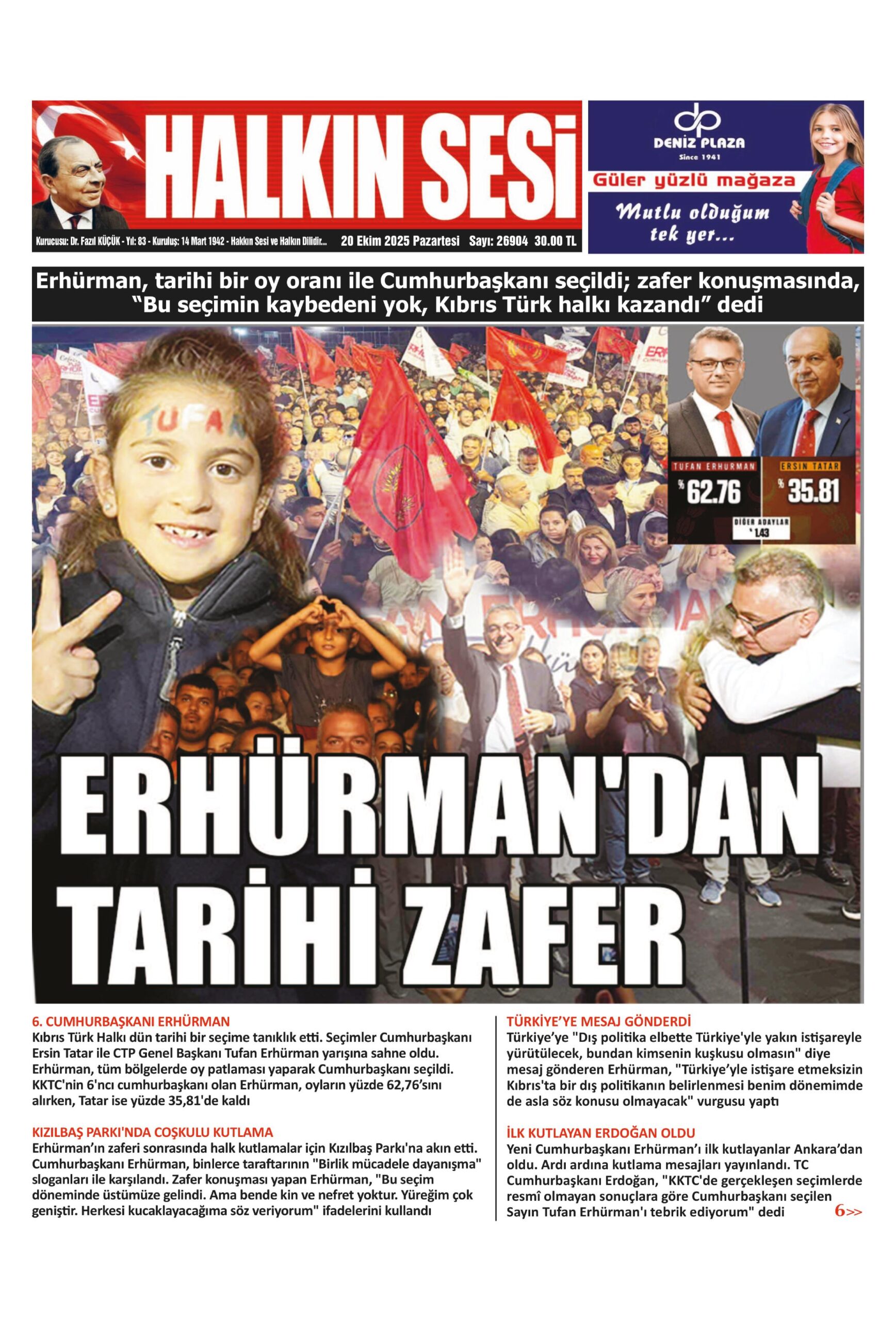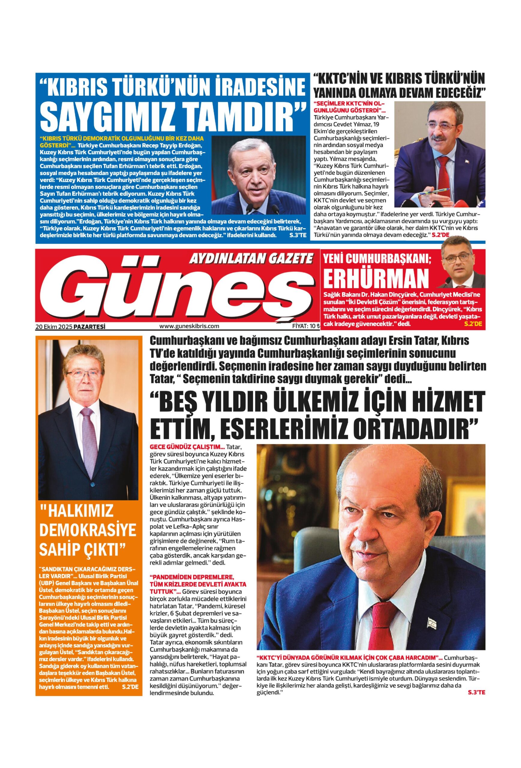 20 Ekim 2025 Pazartesi KKTC Gazete Manşetleri