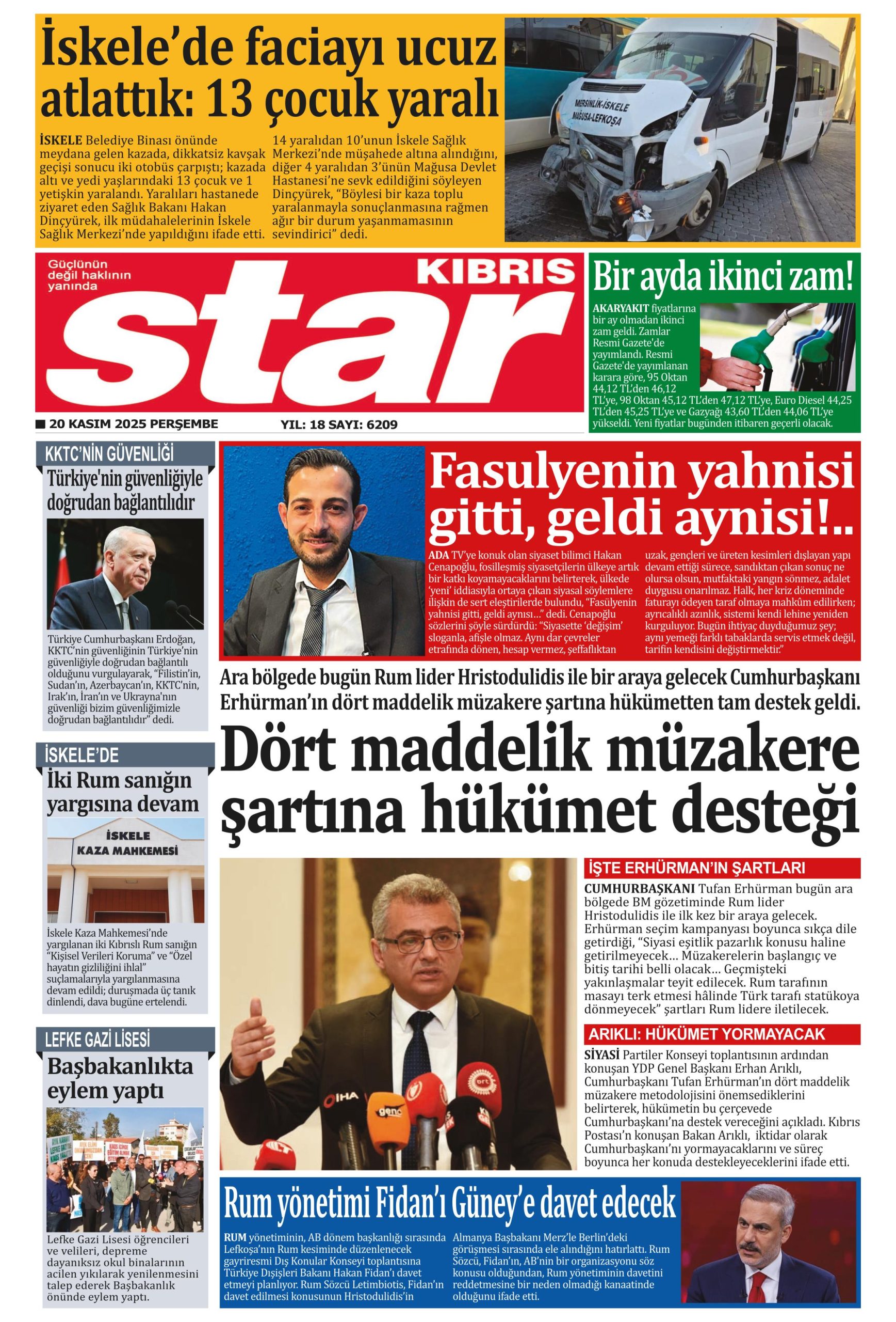 20 Kasım 2025 Perşembe KKTC Gazete Manşetleri