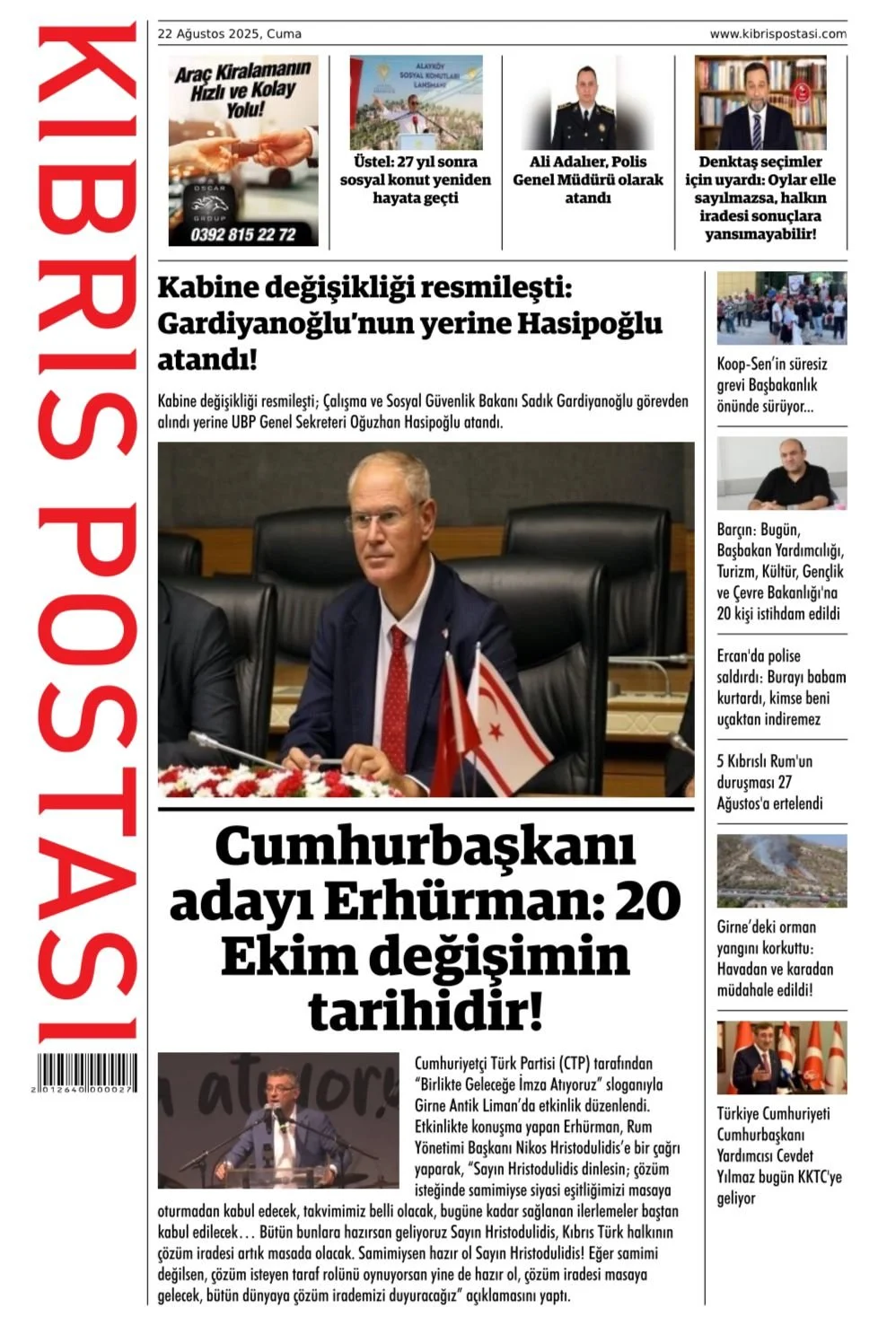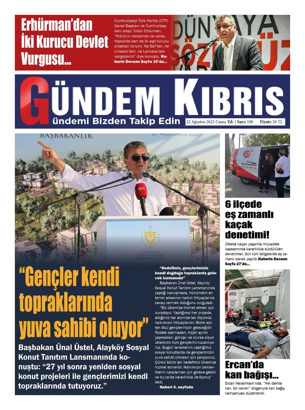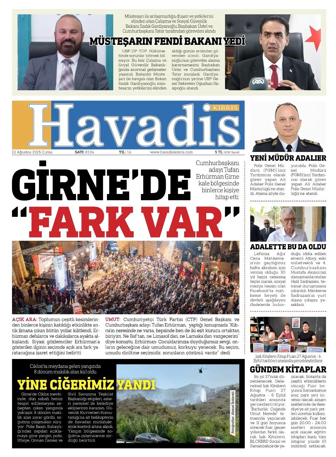 22 Ağustos 2025 Cuma KKTC Gazete Manşetleri
