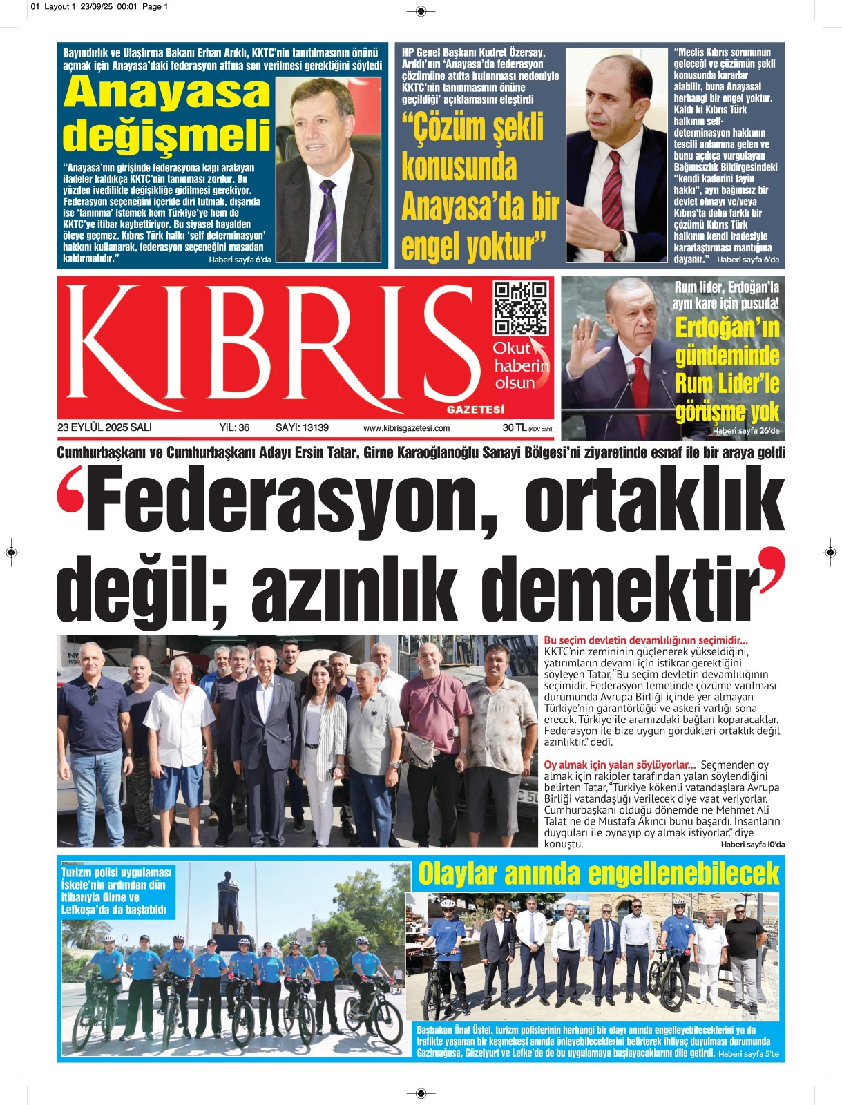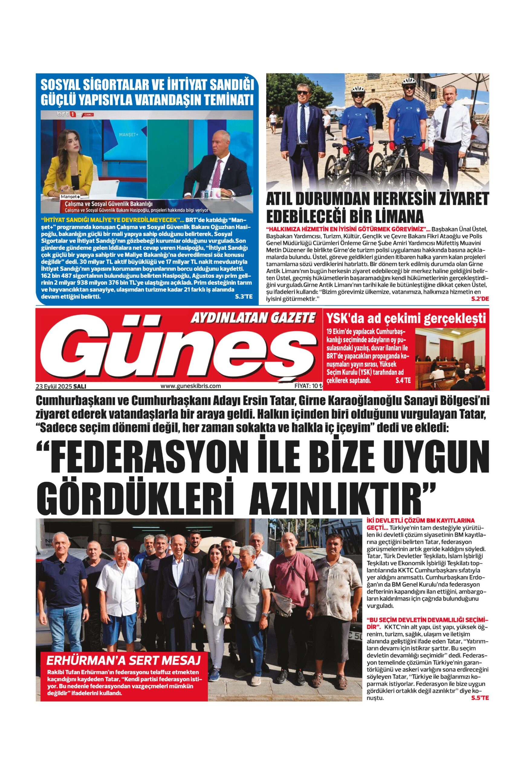 23 Eylül 2025 Salı KKTC Gazete Manşetleri