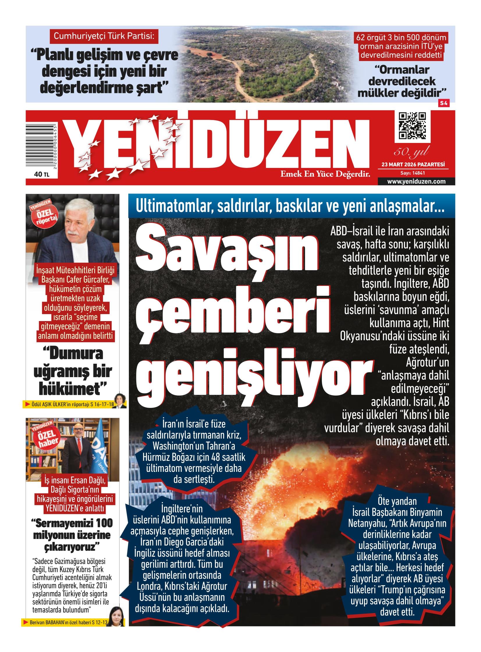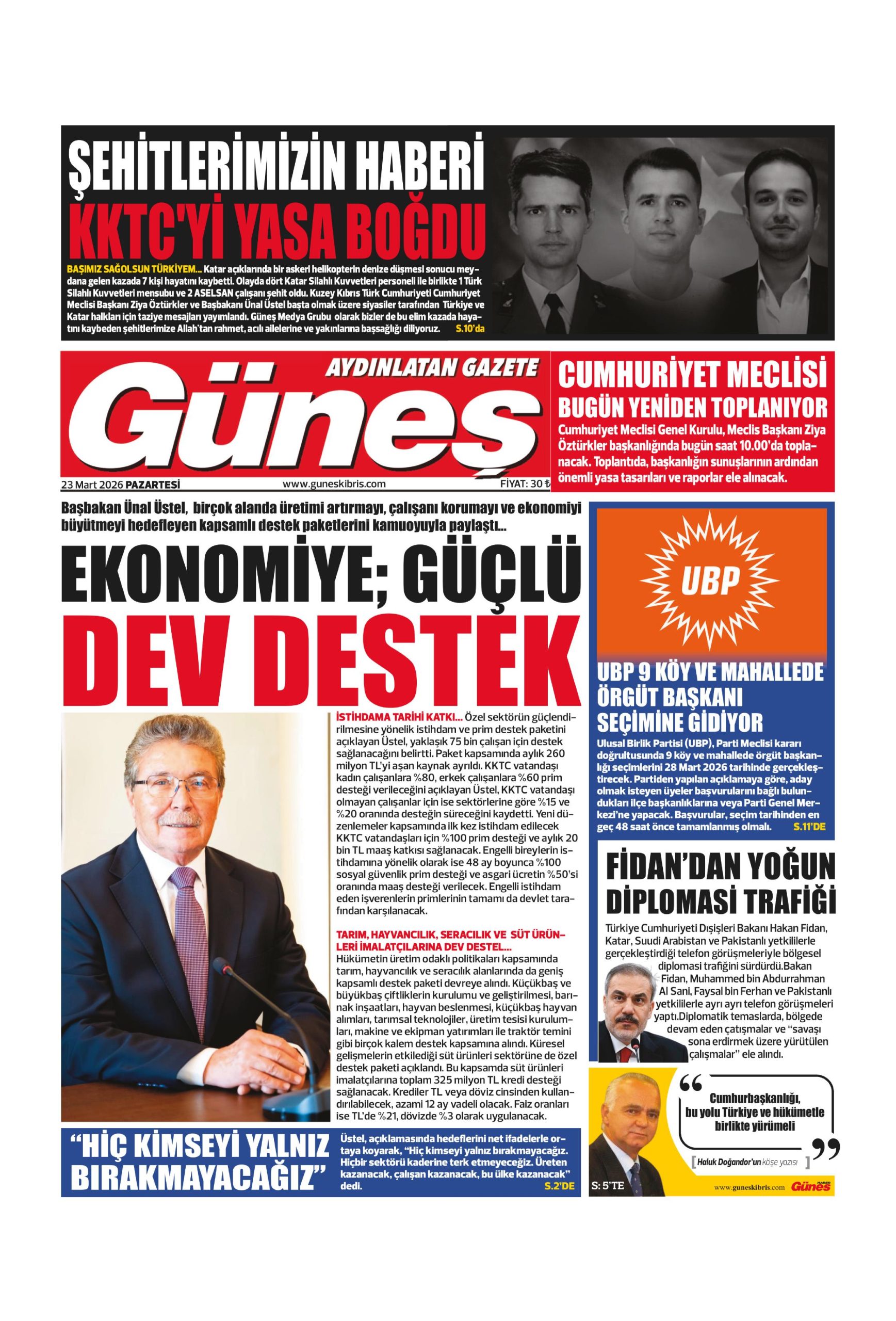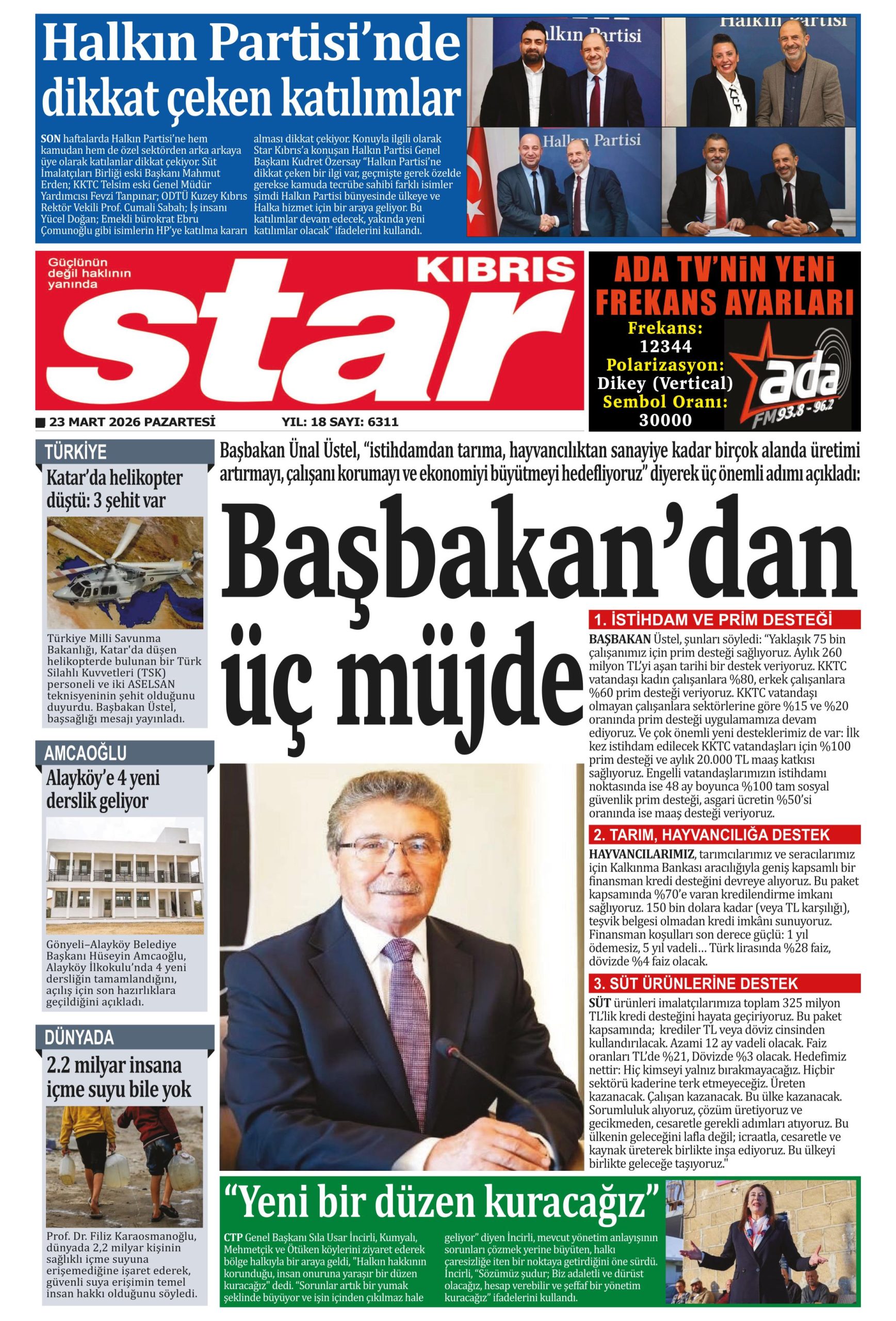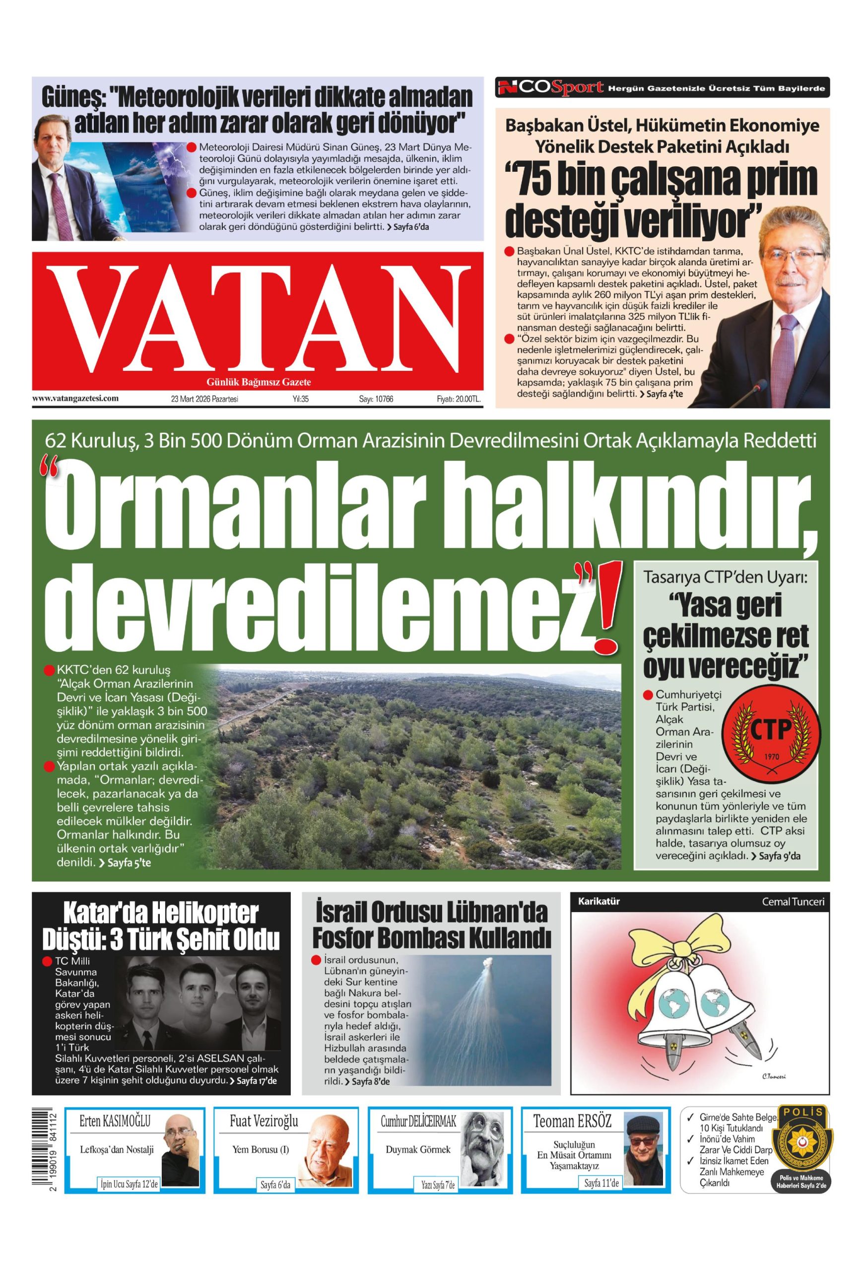 23 Mart 2026 Pazartesi KKTC Gazete Manşetleri