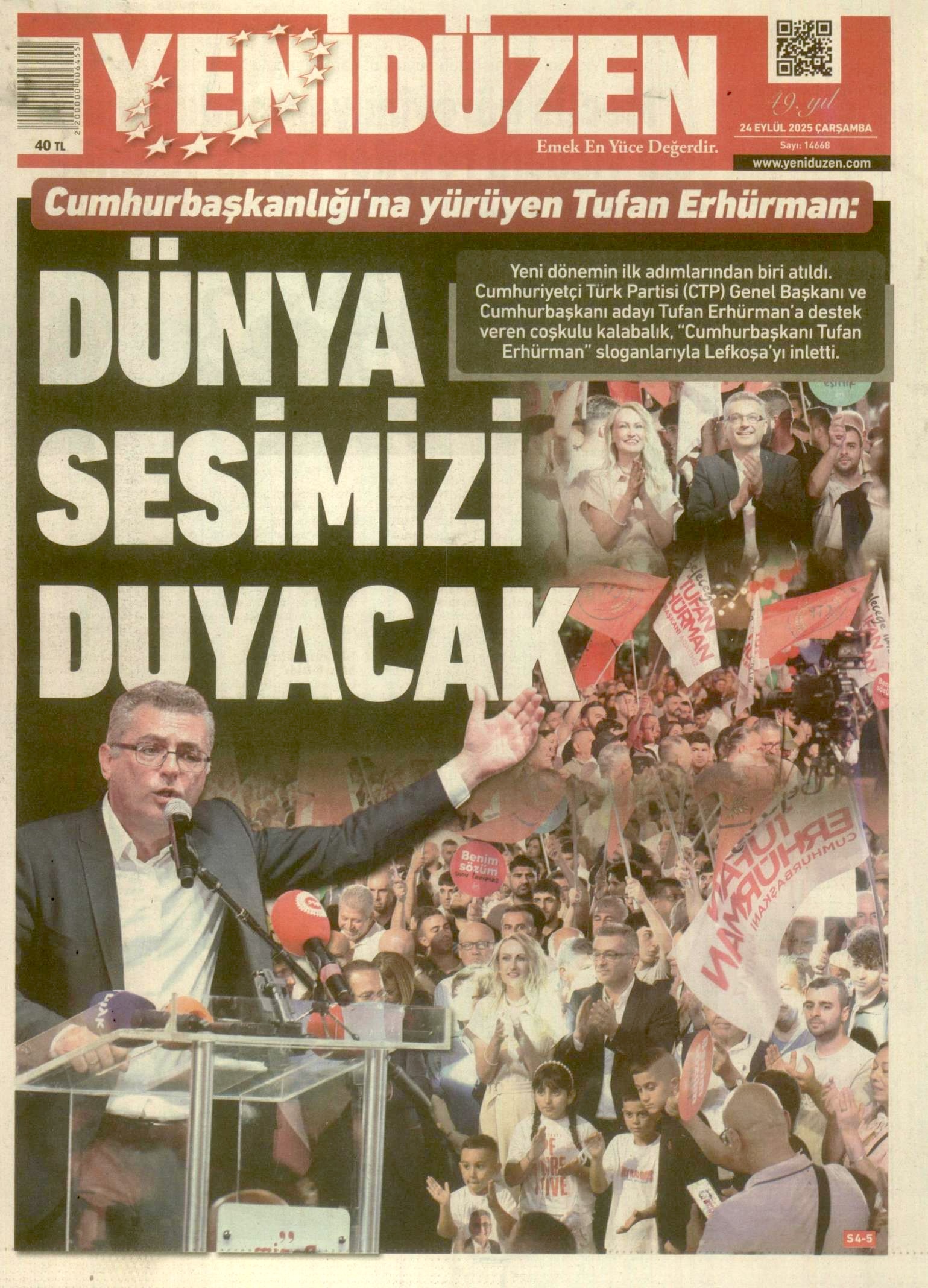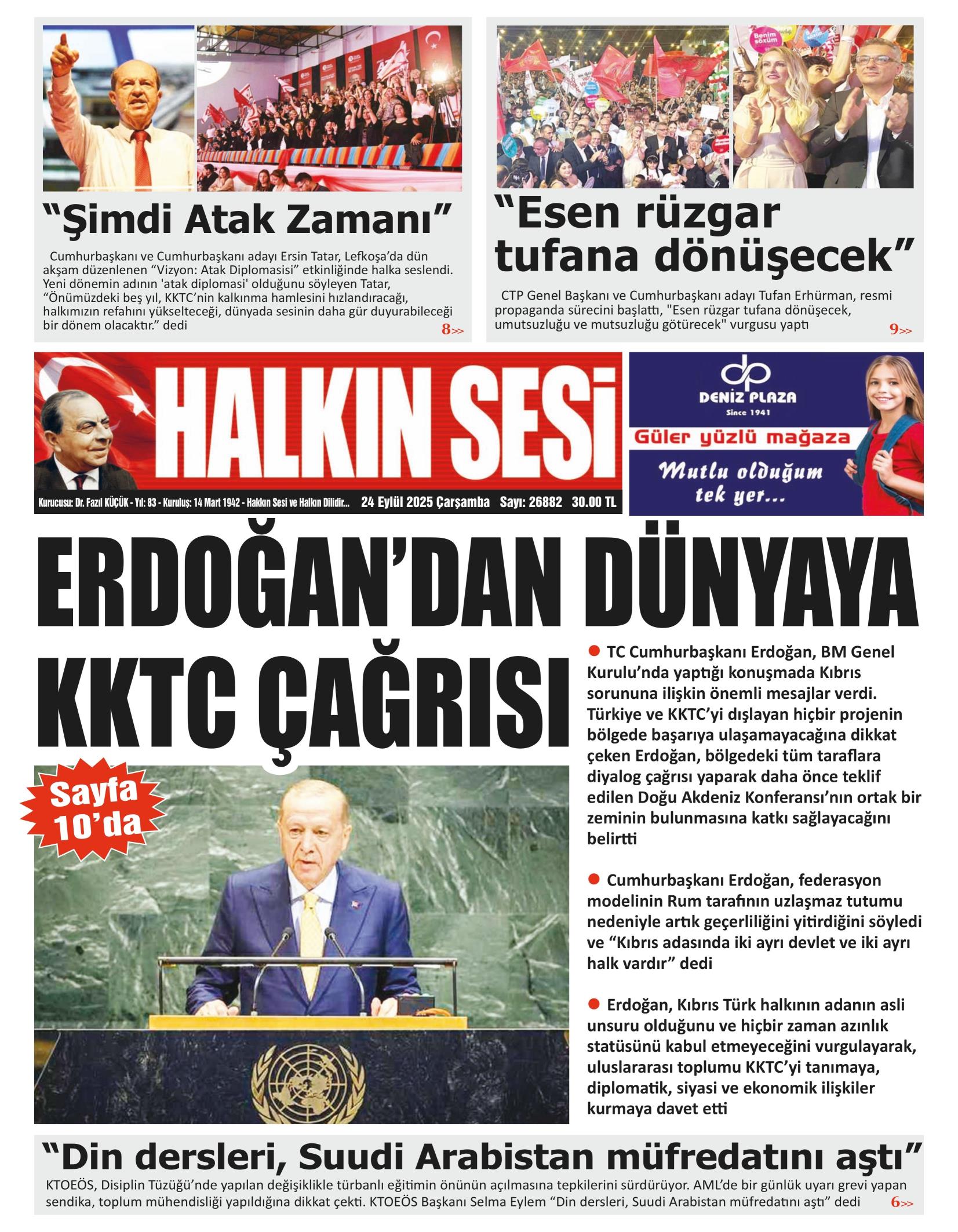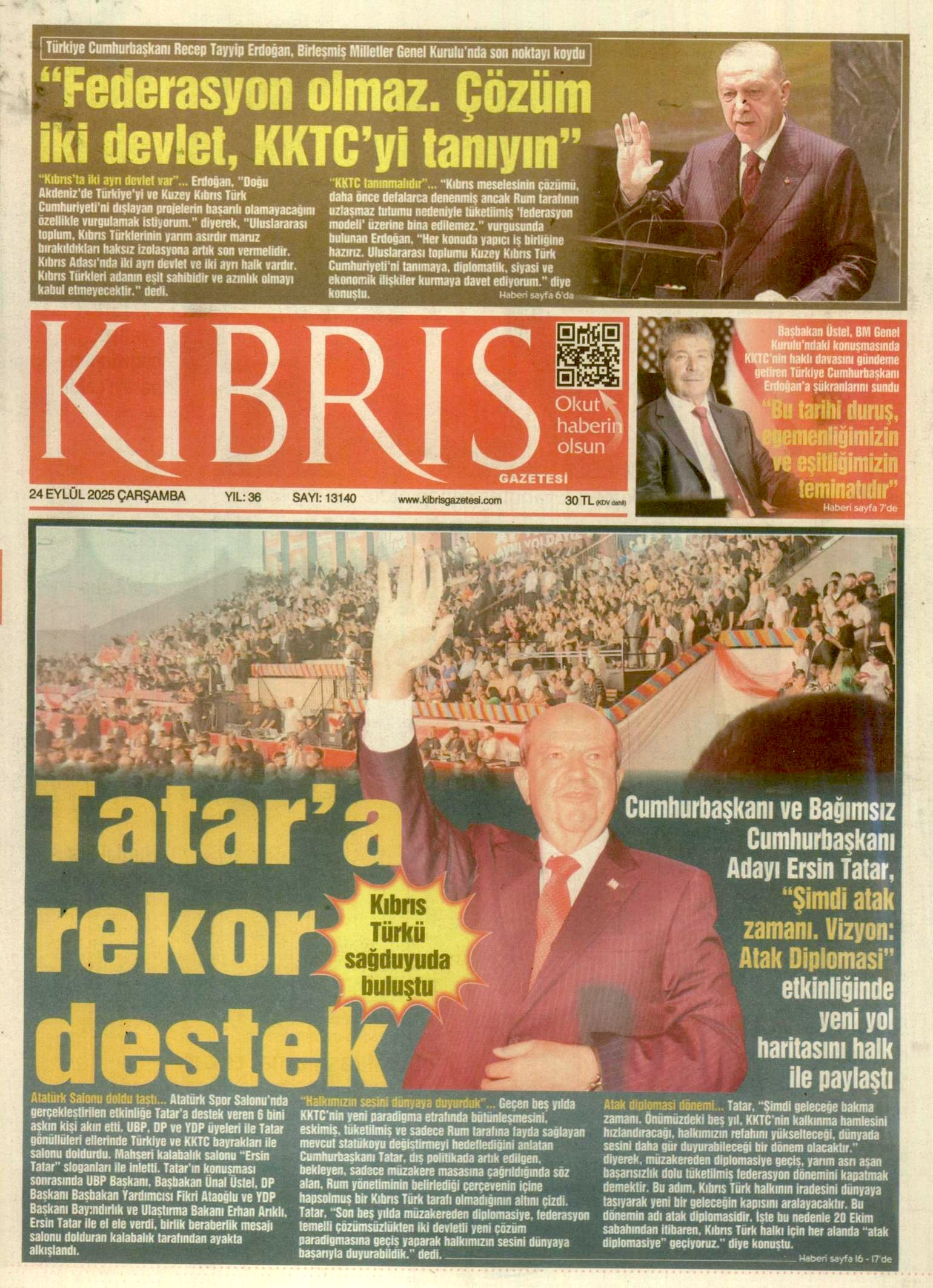 24 Eylül 2025 Çarşamba KKTC Gazete Manşetleri