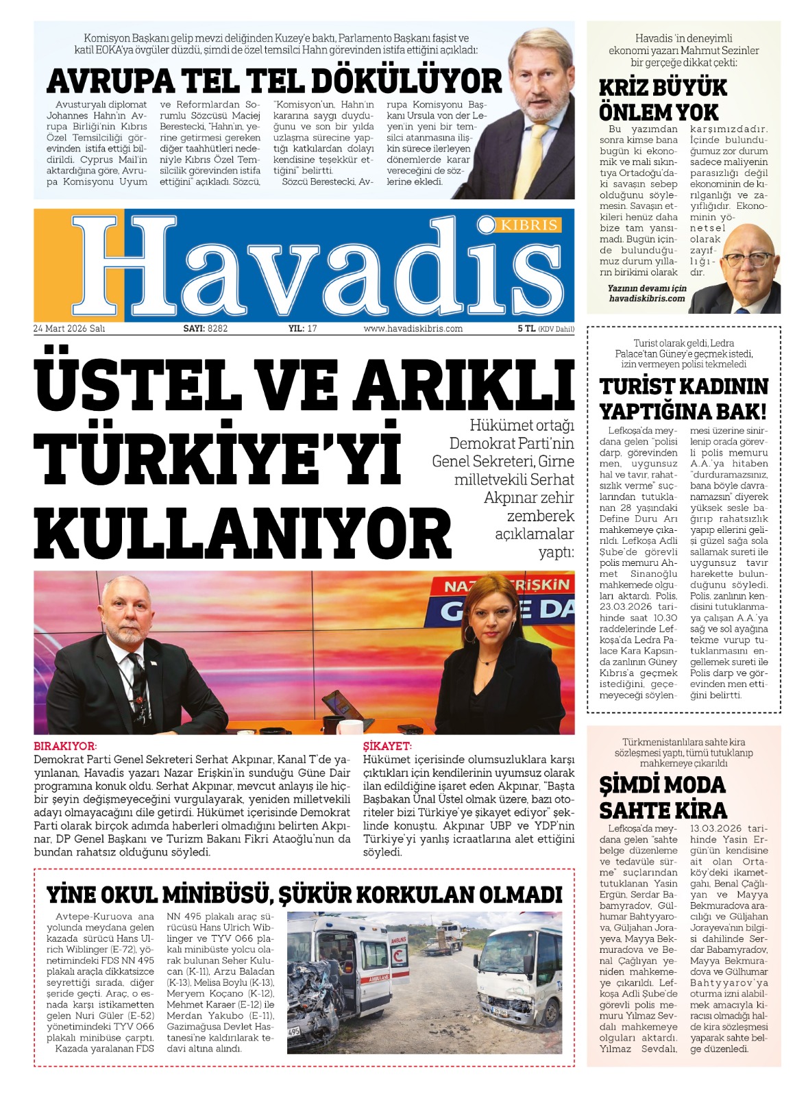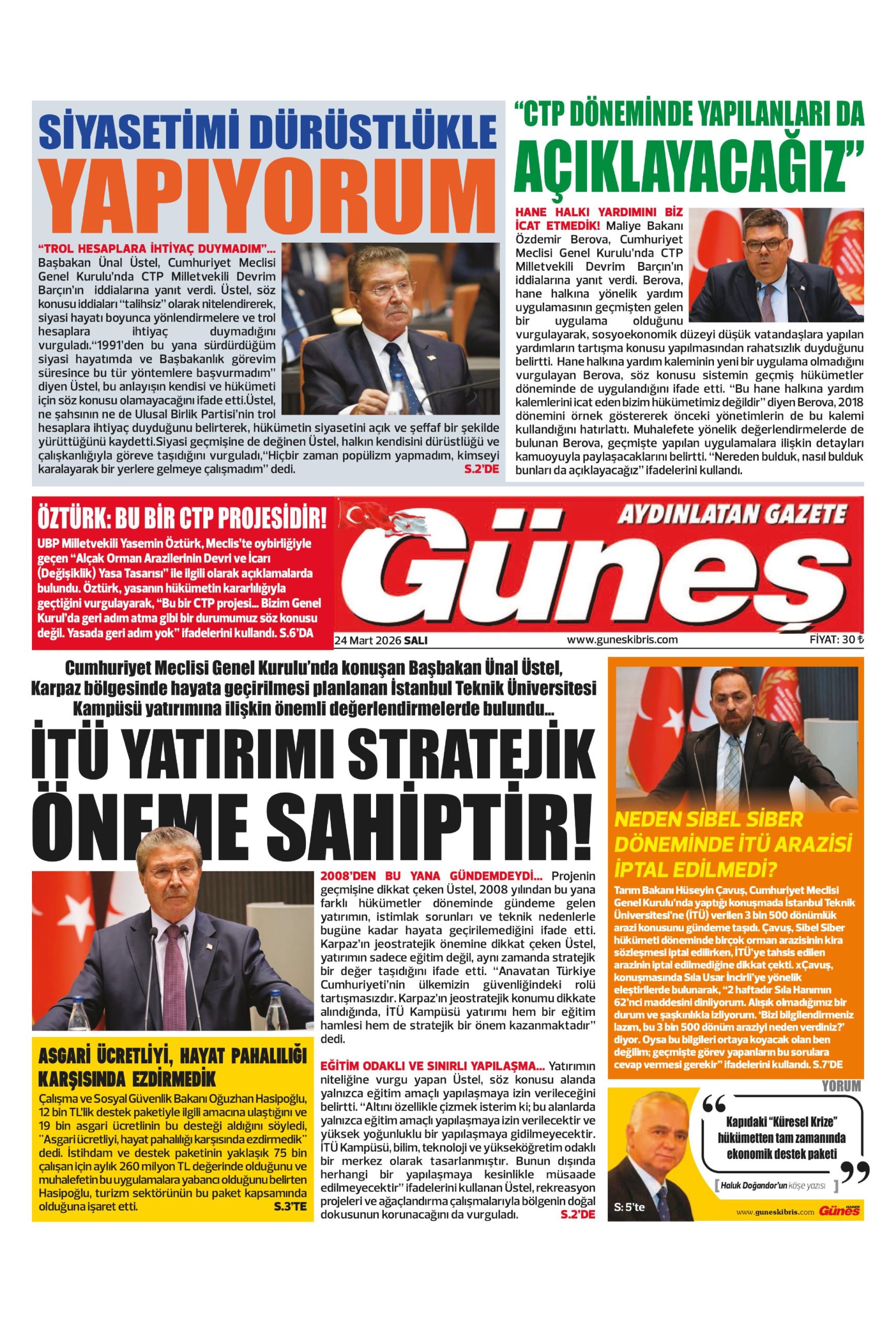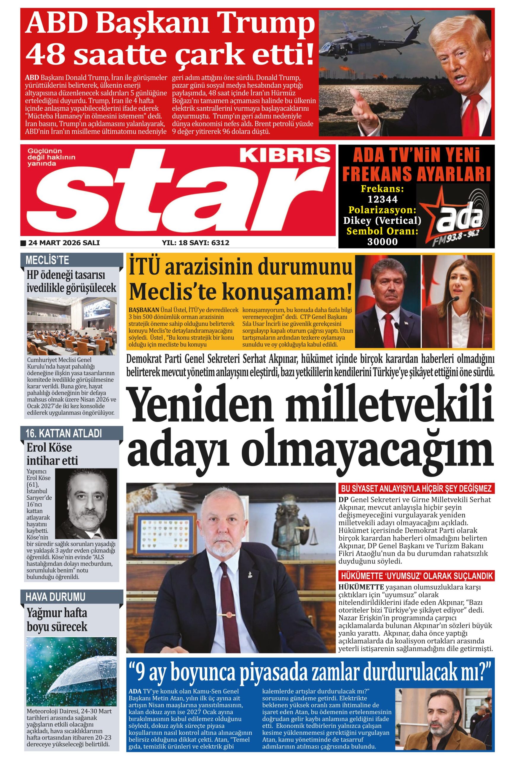 24 Mart 2026 Salı KKTC Gazete Manşetleri
