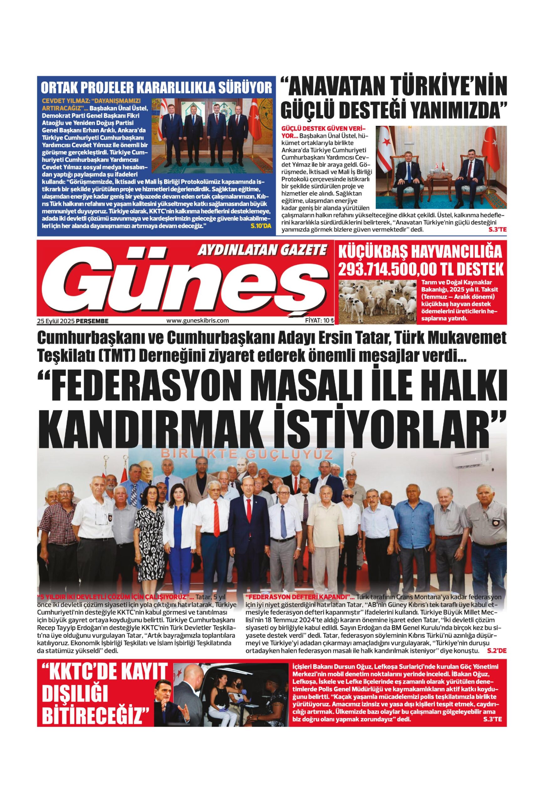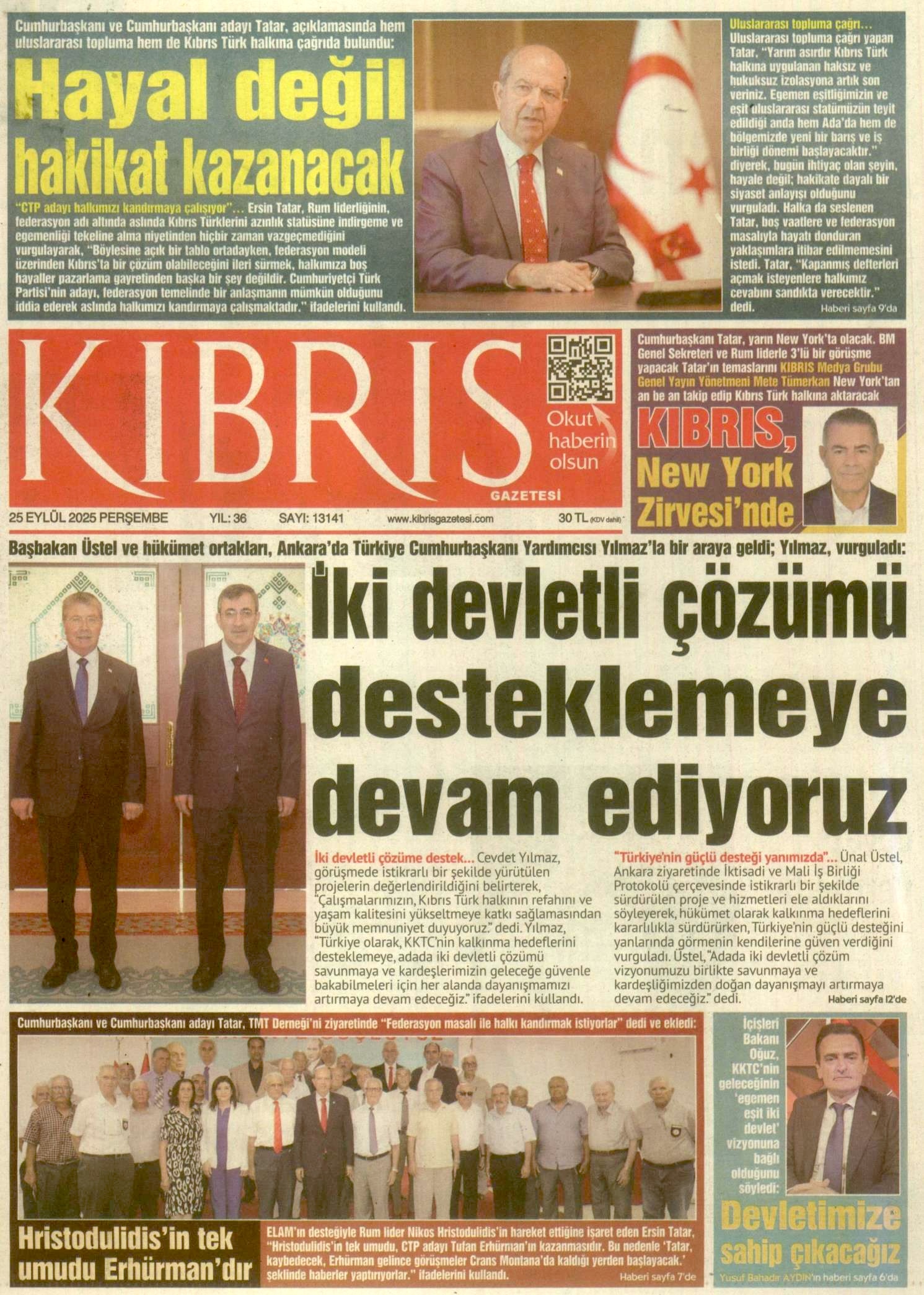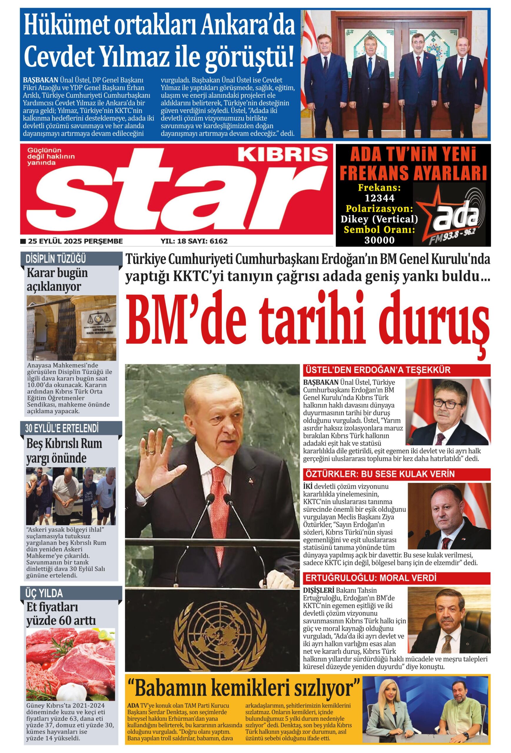 25 Eylül 2025 Perşembe KKTC Gazete Manşetleri