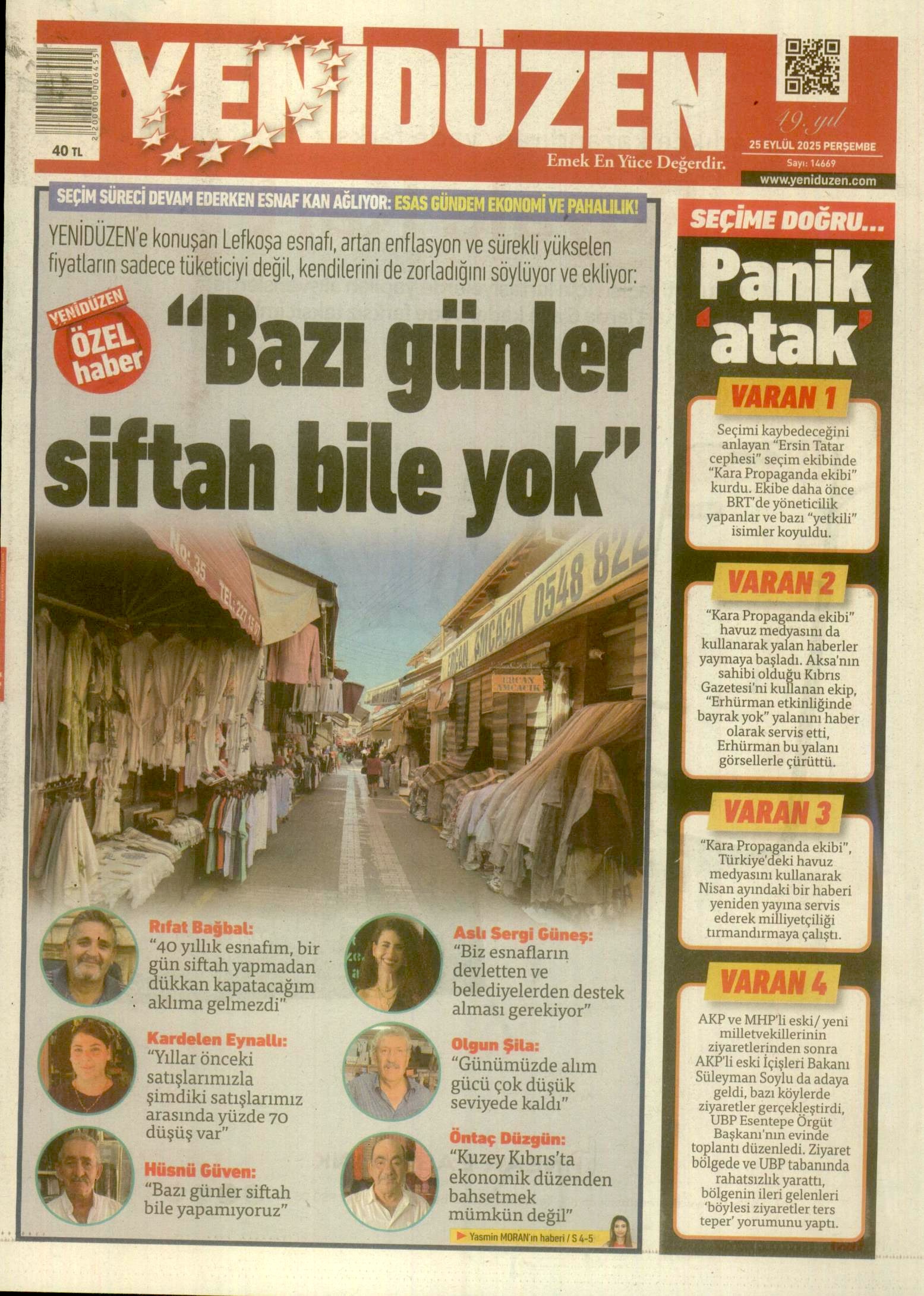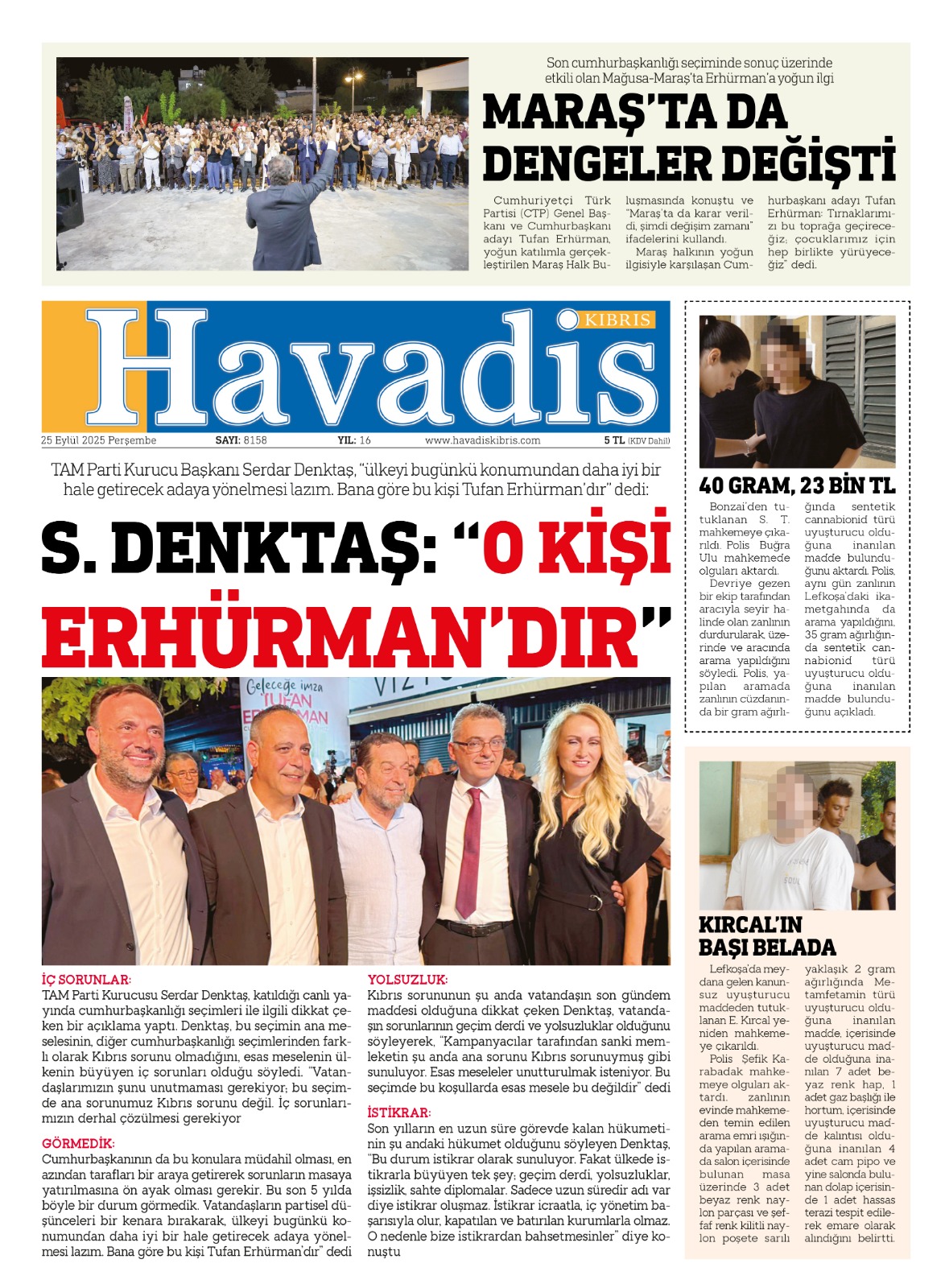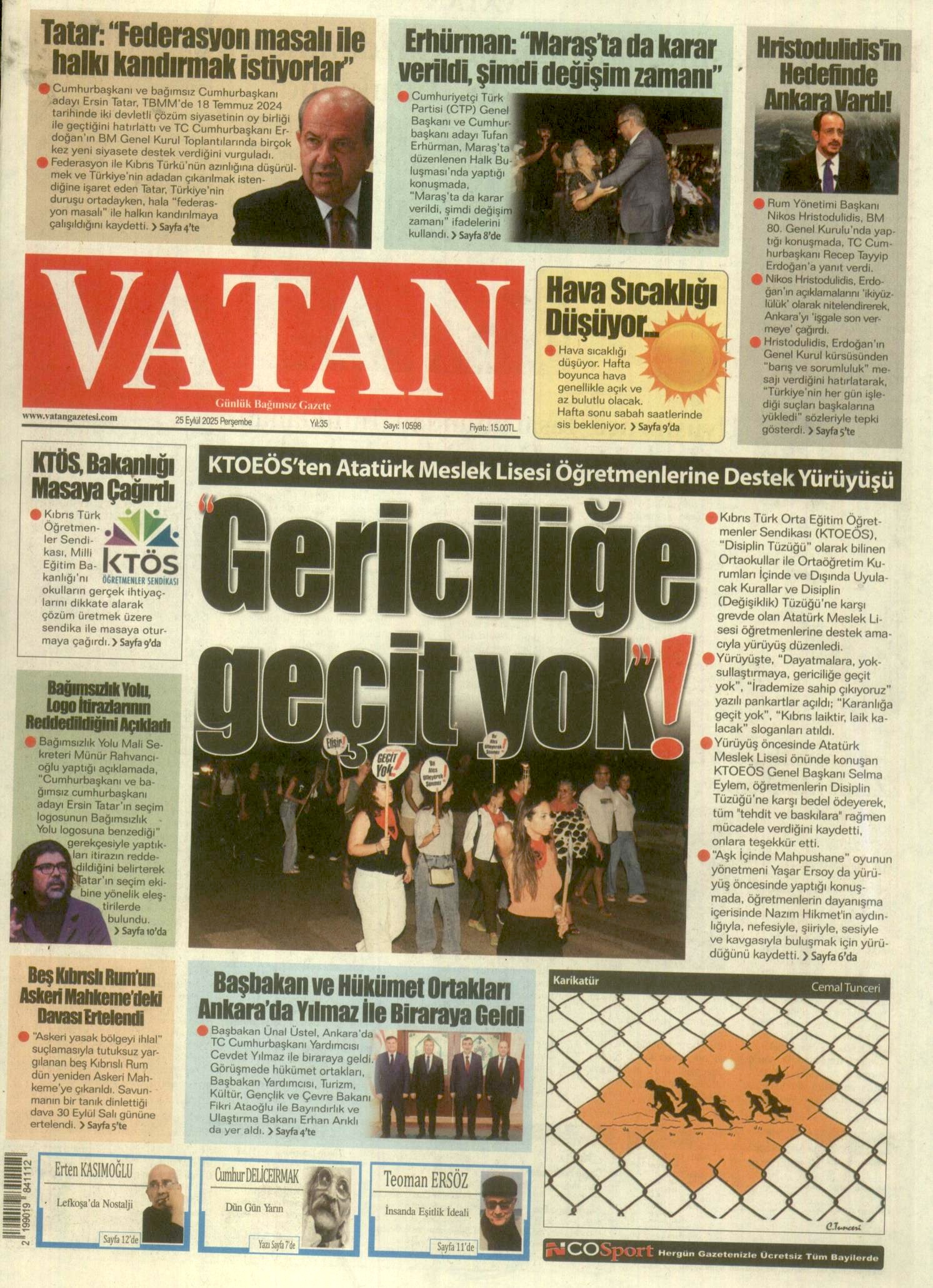 25 Eylül 2025 Perşembe KKTC Gazete Manşetleri
