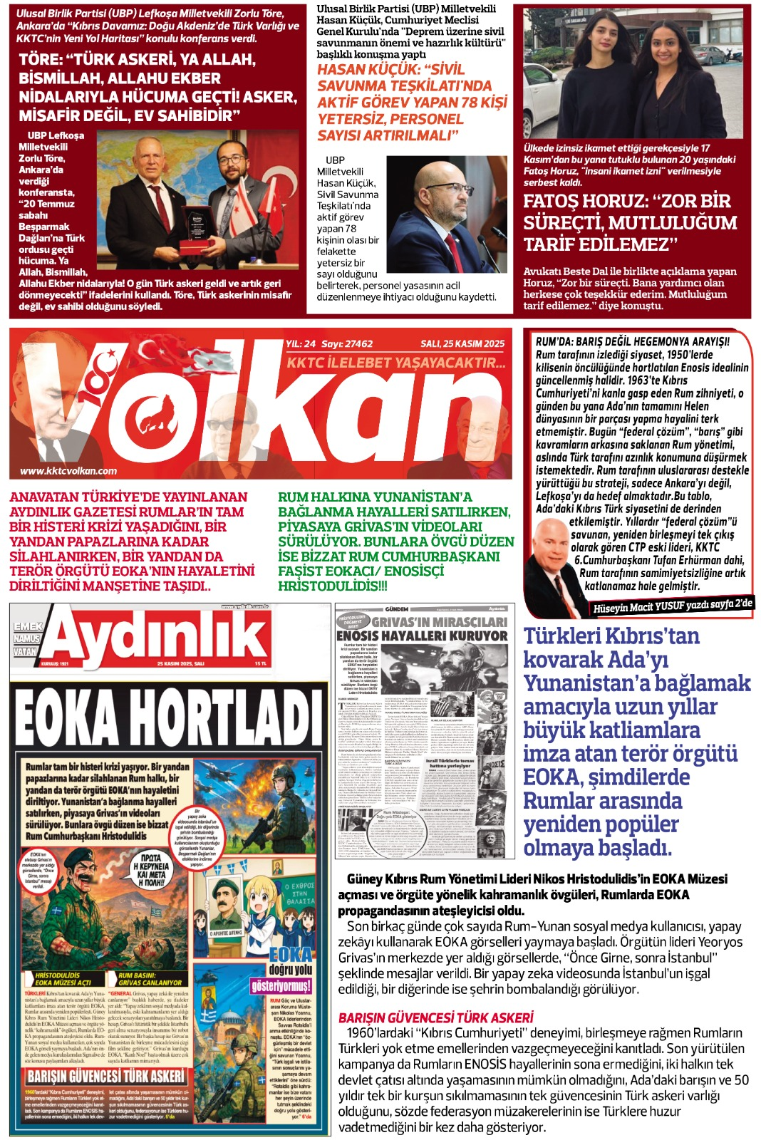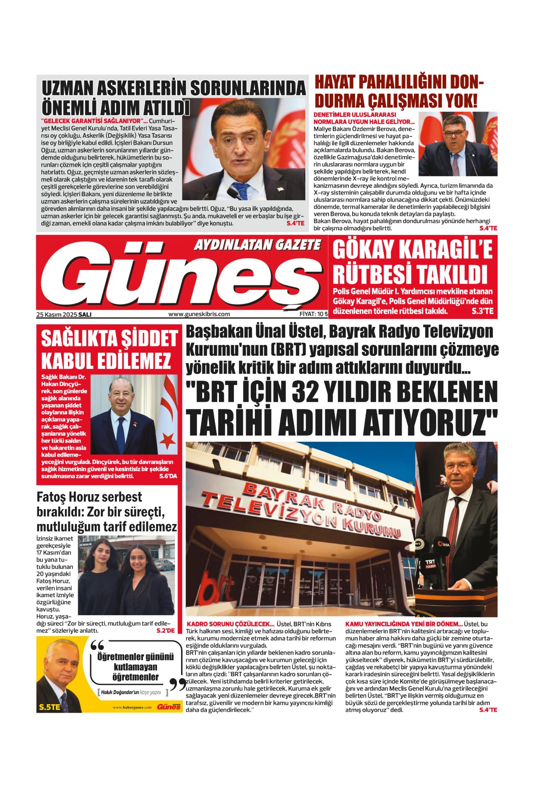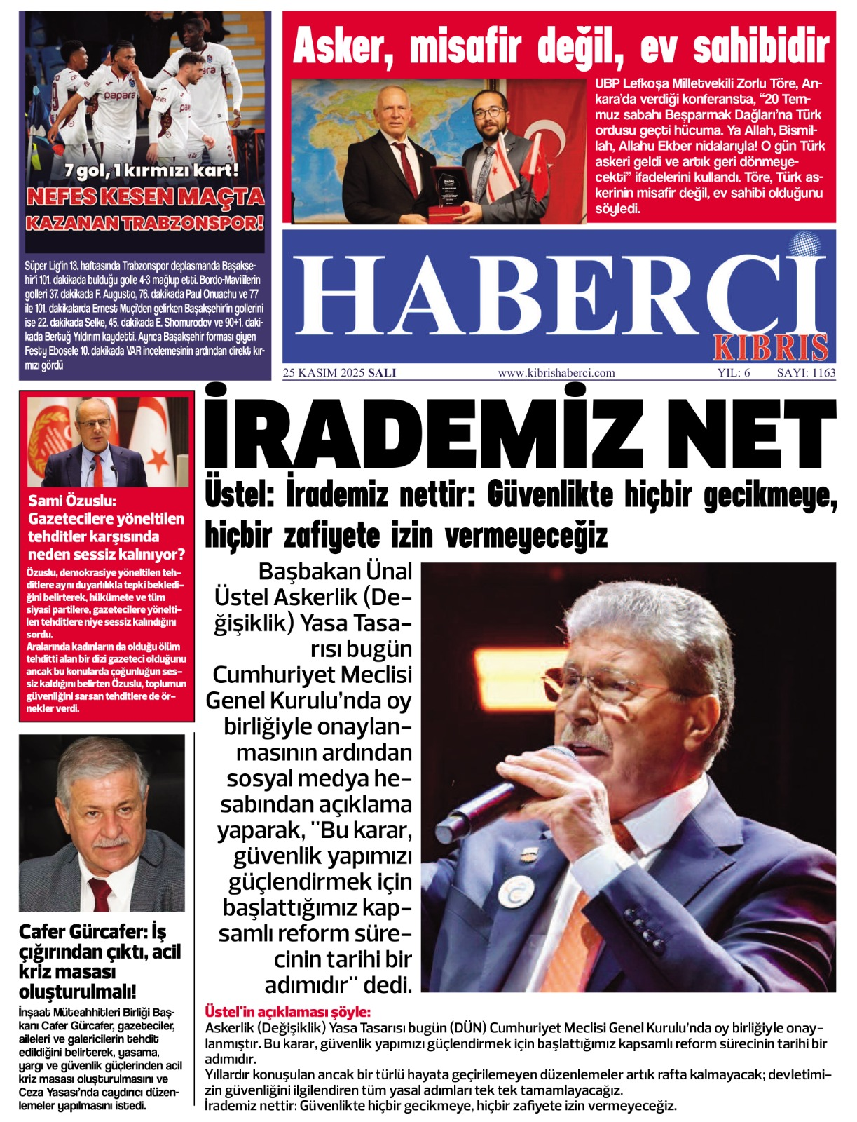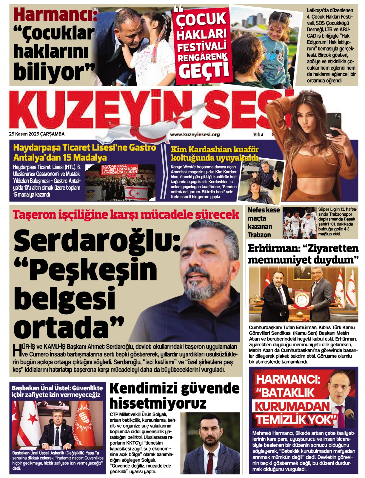 25 Kasım 2025 Salı KKTC Gazete Manşetleri