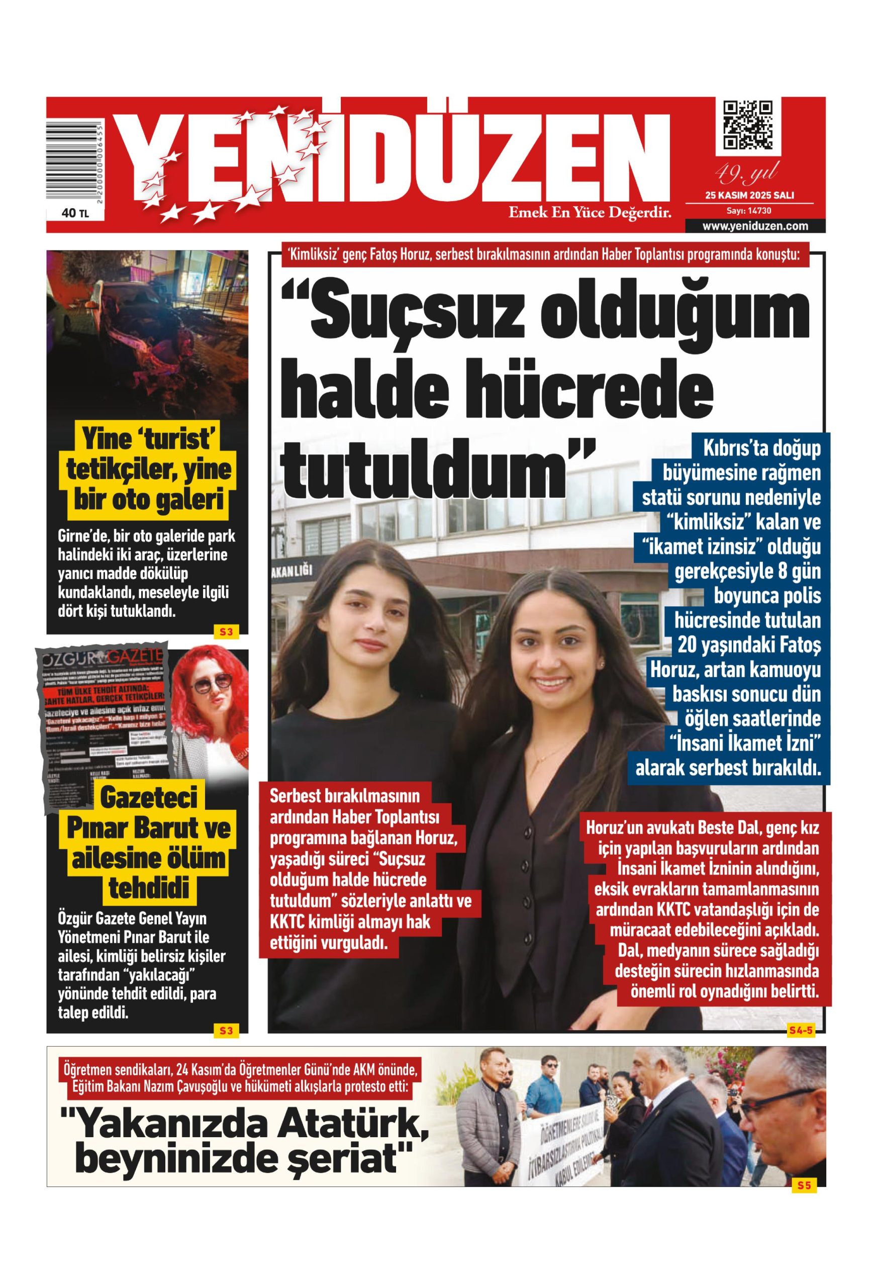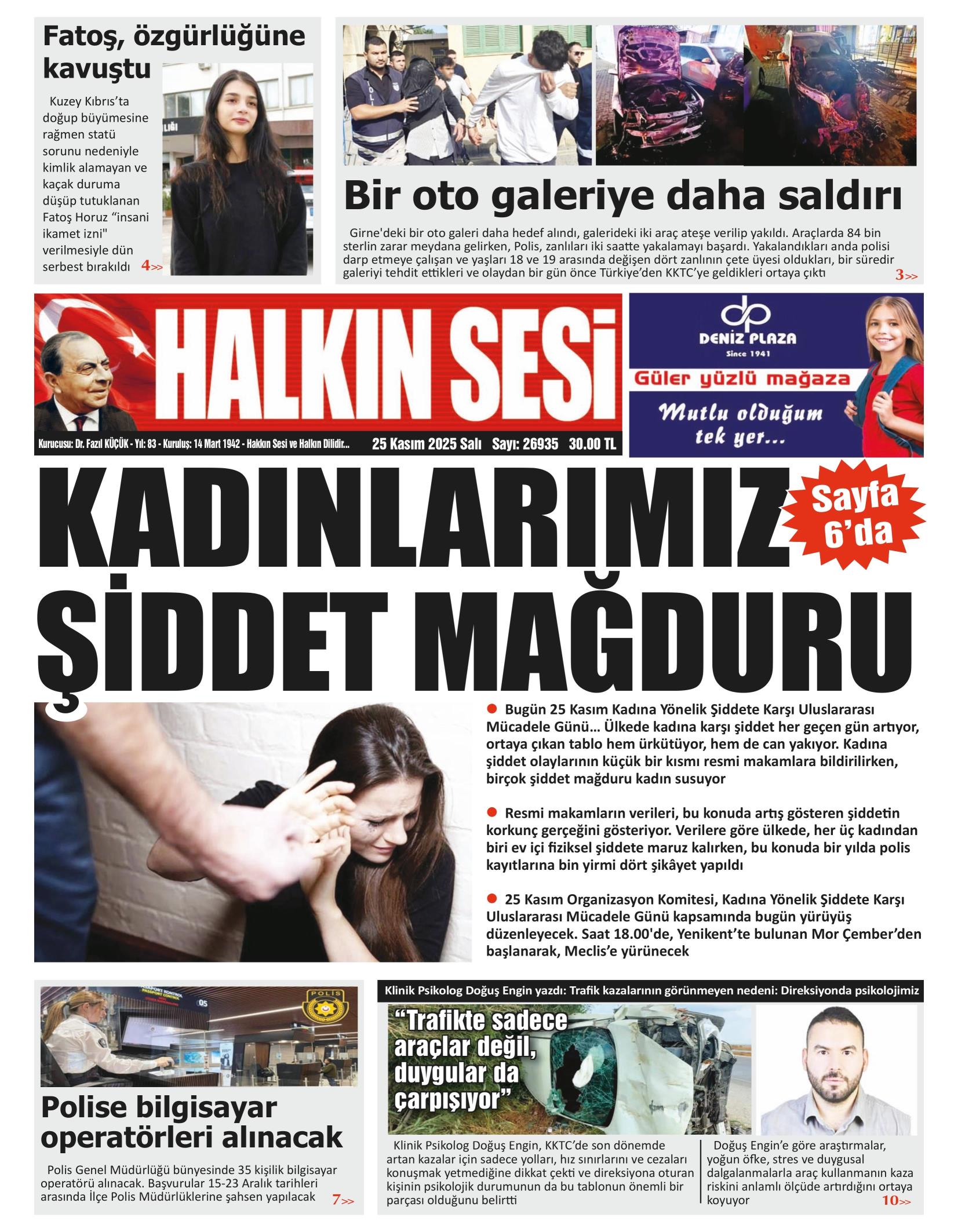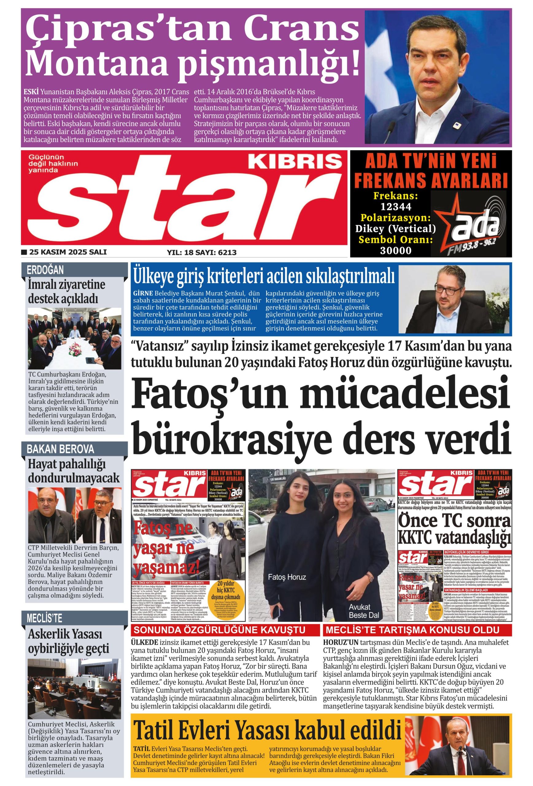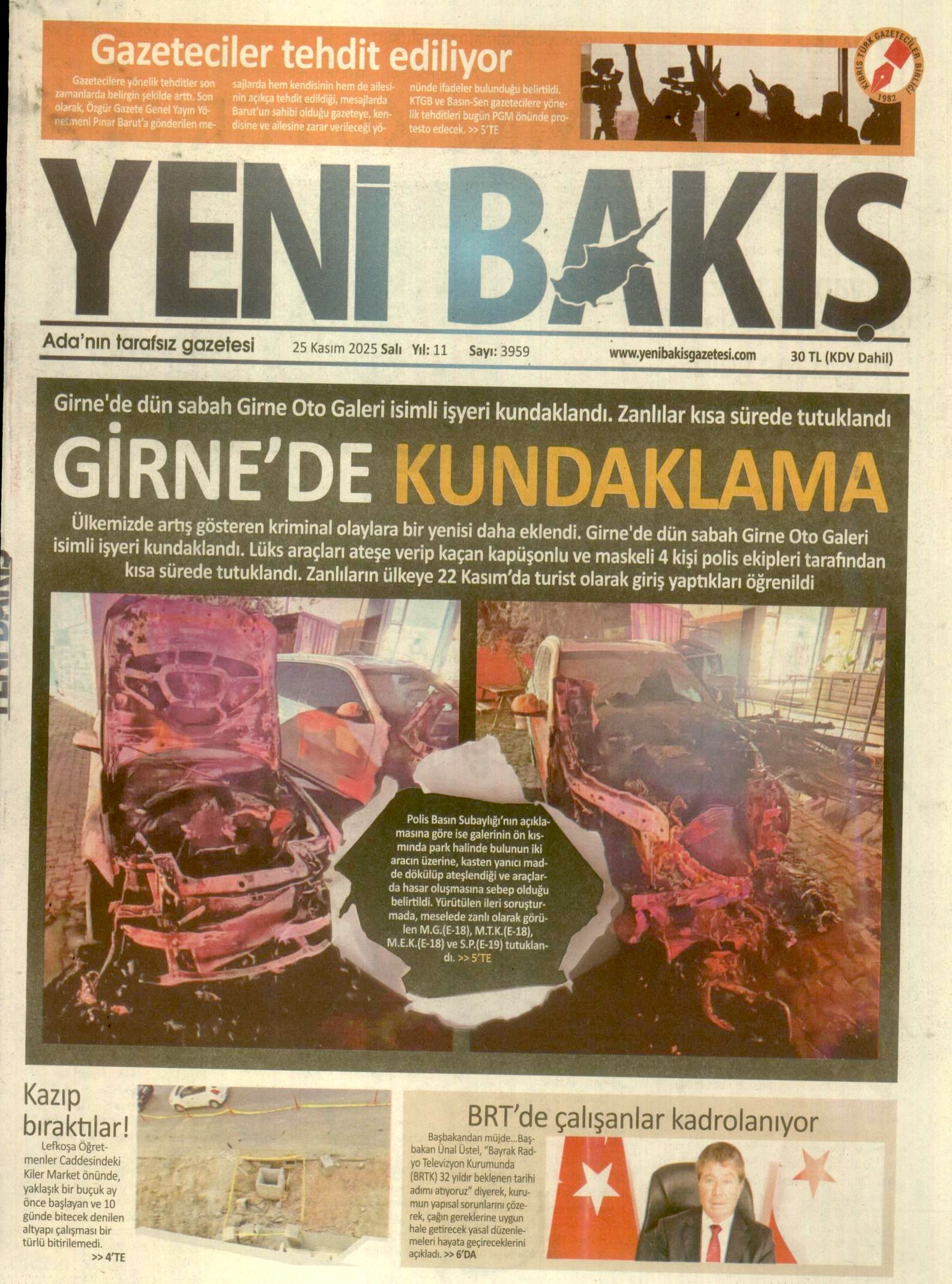 25 Kasım 2025 Salı KKTC Gazete Manşetleri