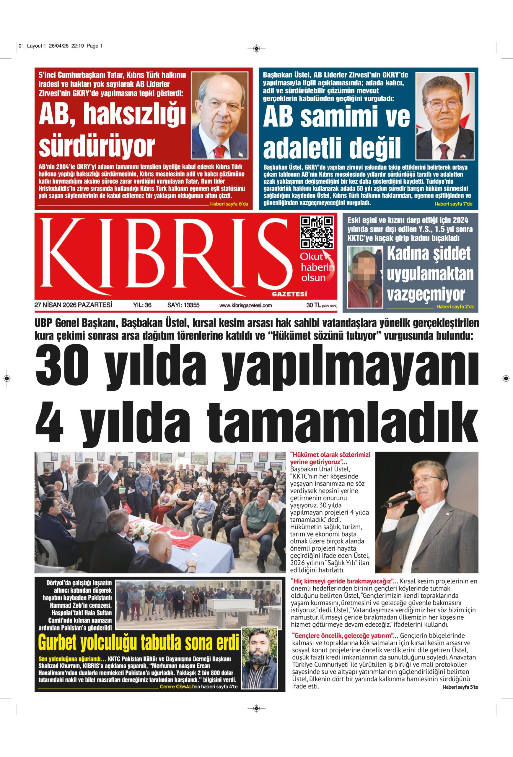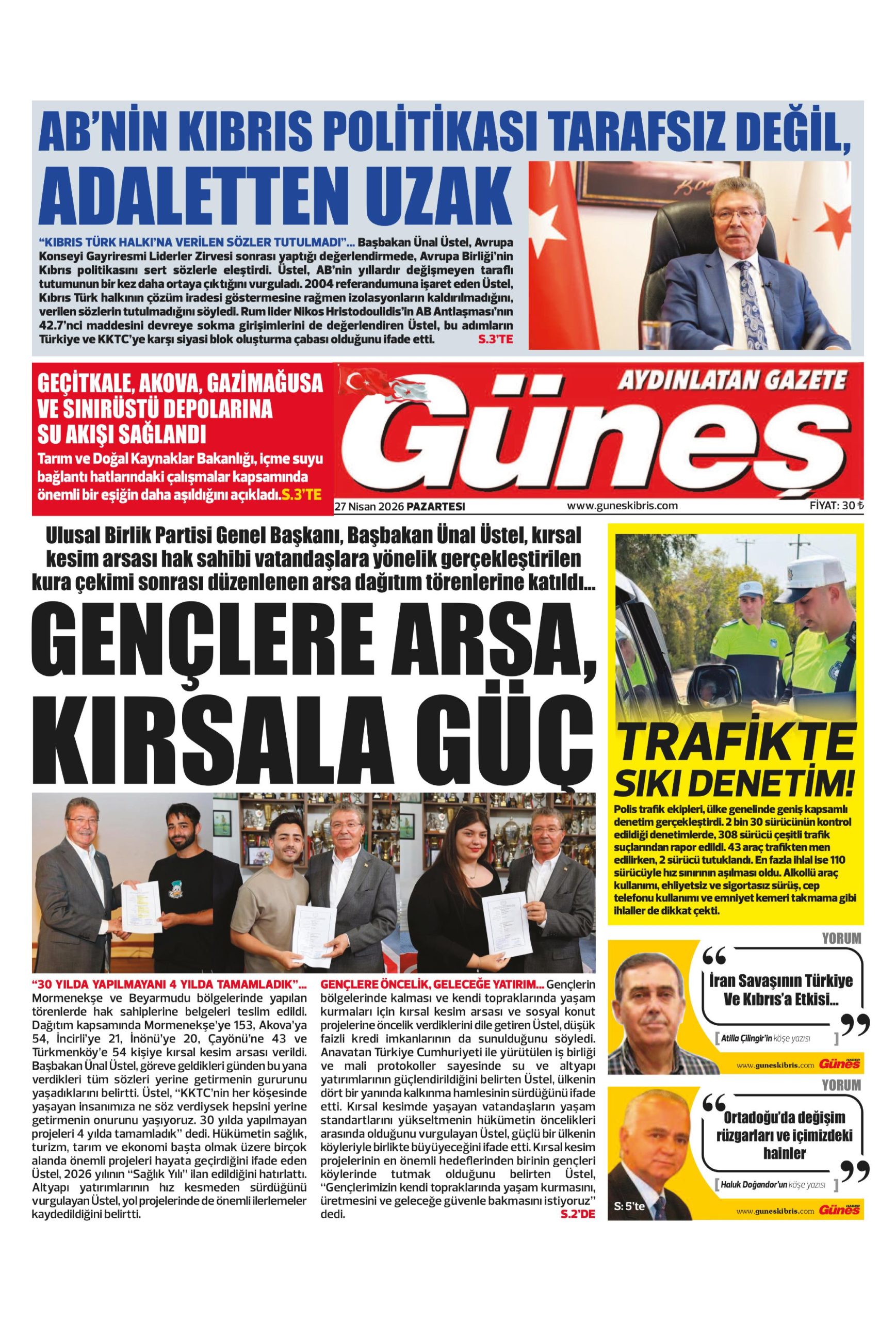 27 Nisan 2026 Pazartesi KKTC Gazete Manşetleri
