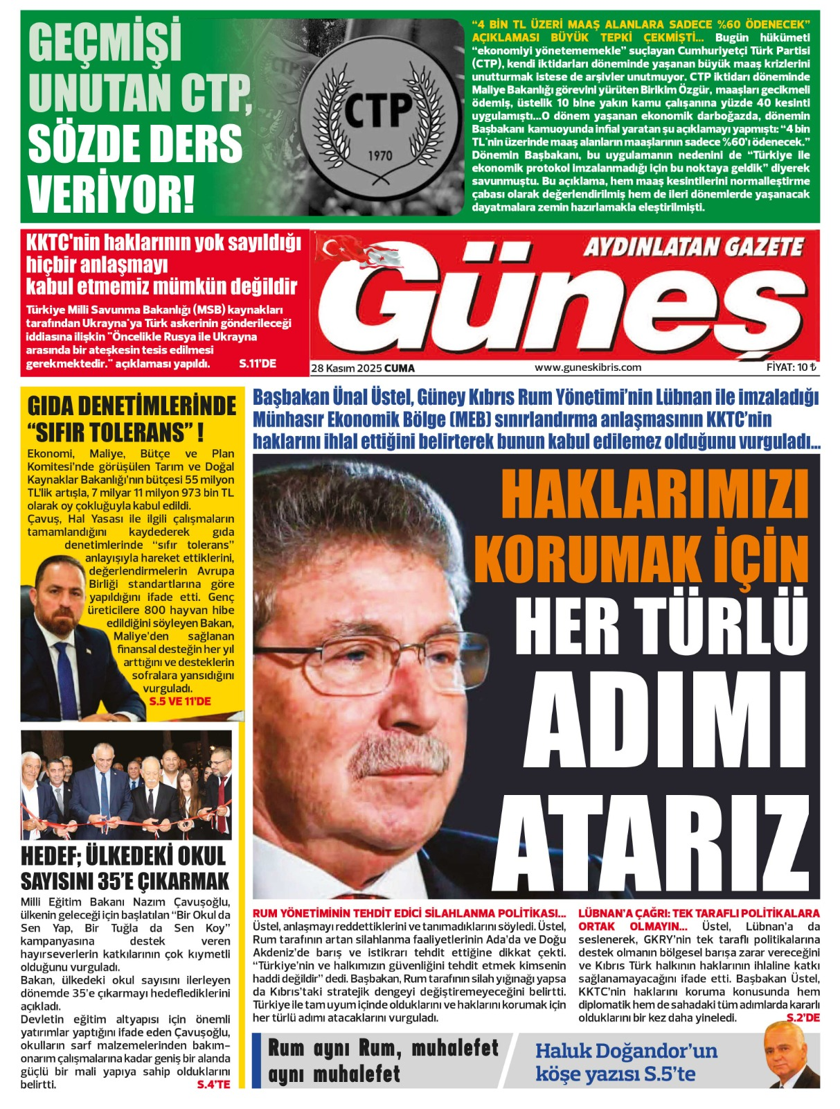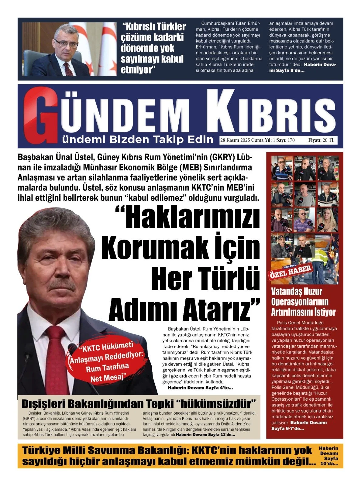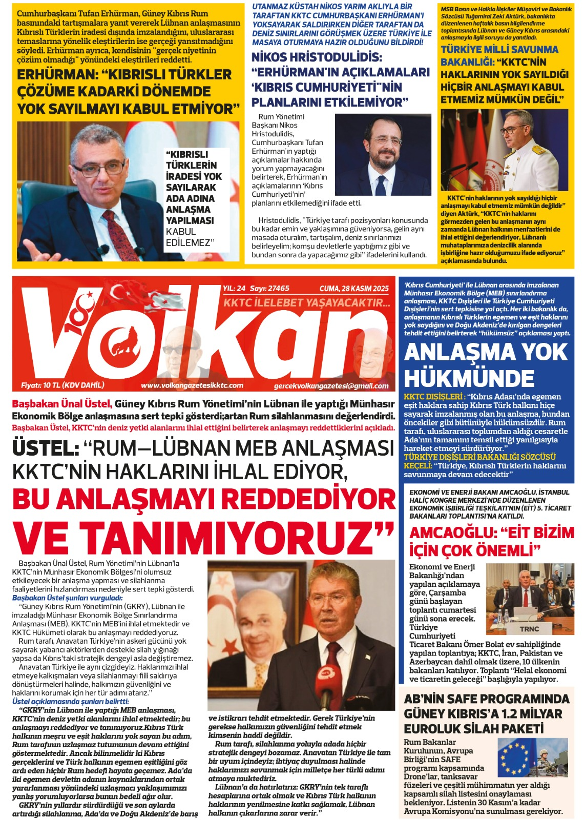 28 Kasım 2025 Cuma KKTC Gazete Manşetleri