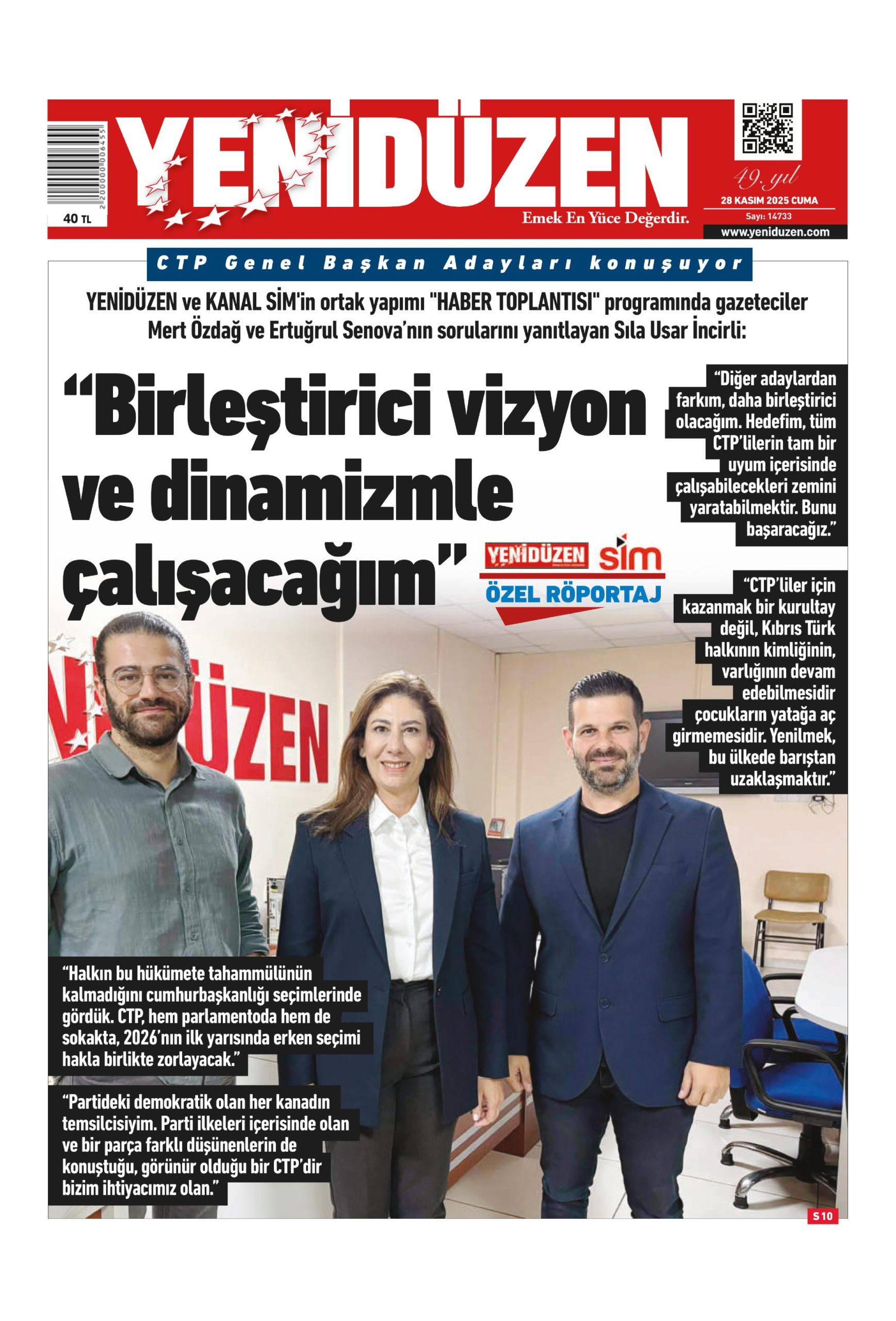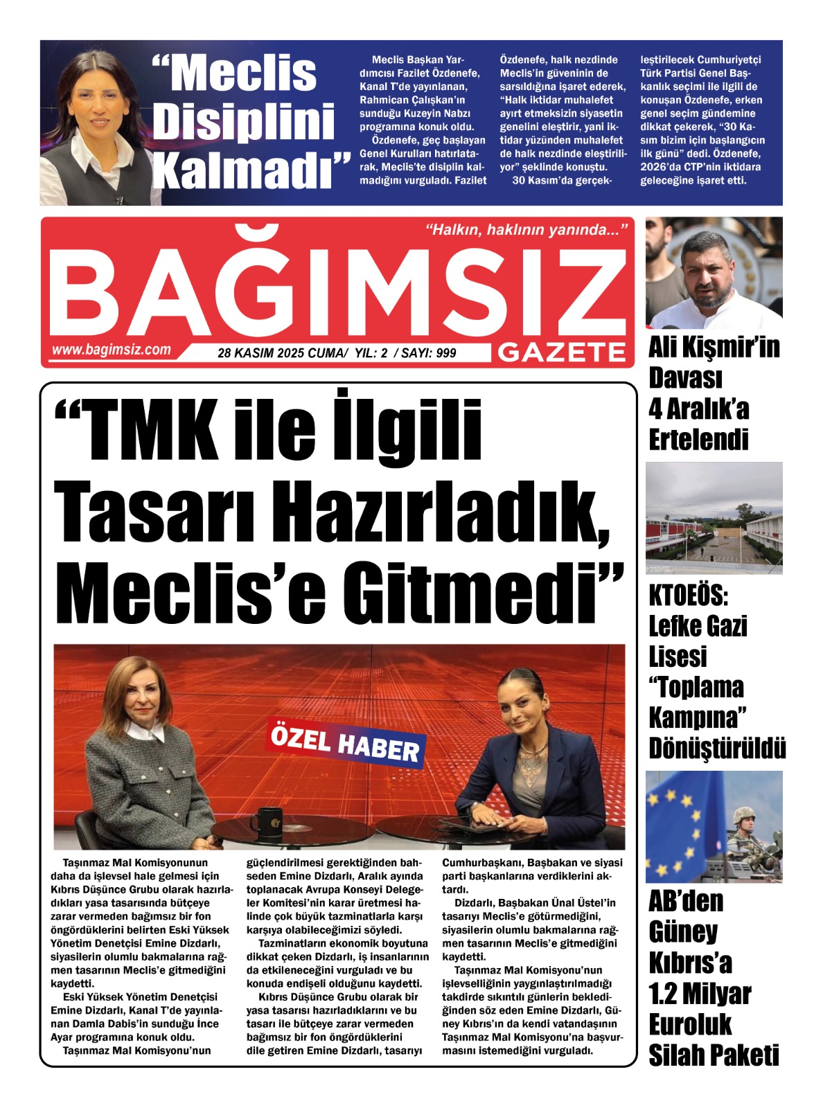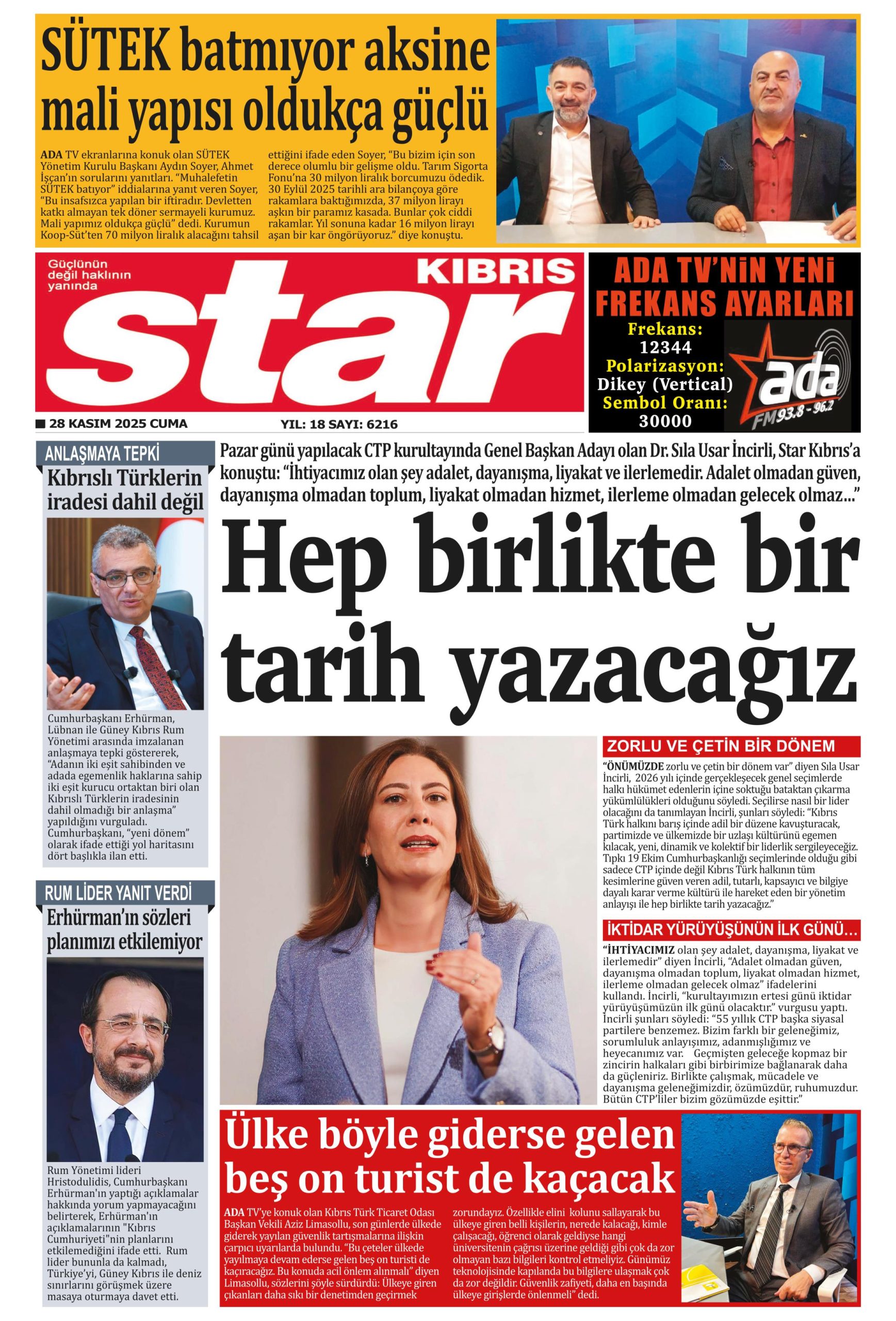 28 Kasım 2025 Cuma KKTC Gazete Manşetleri
