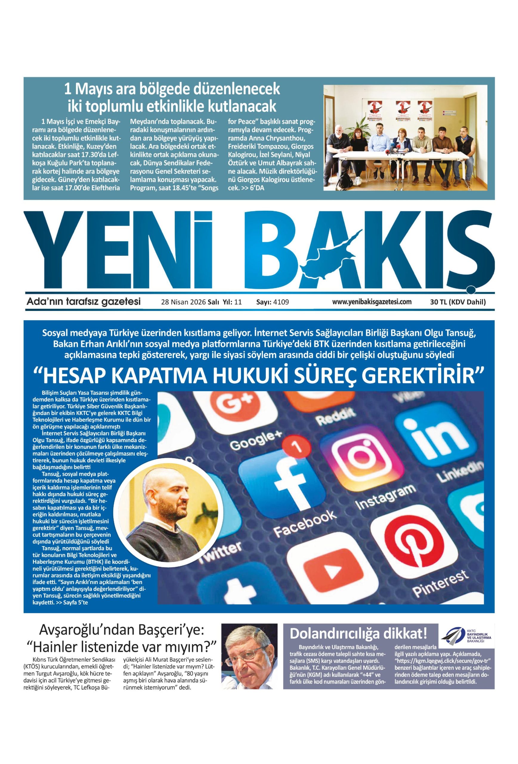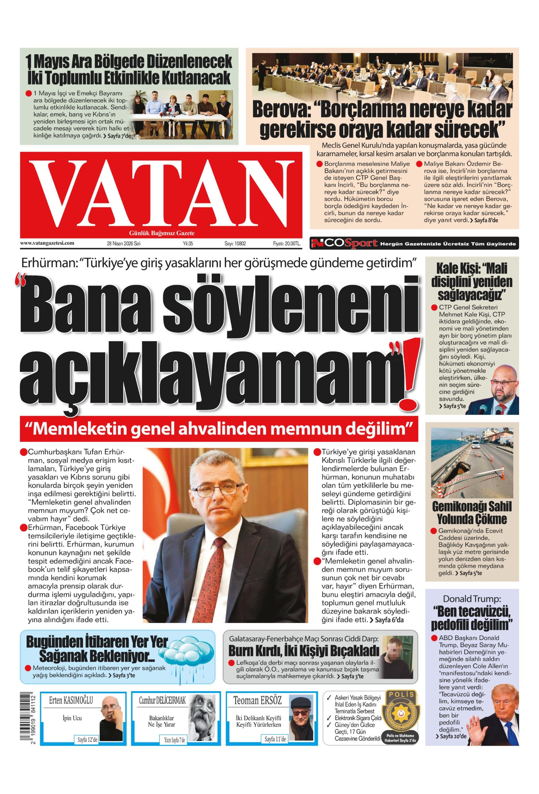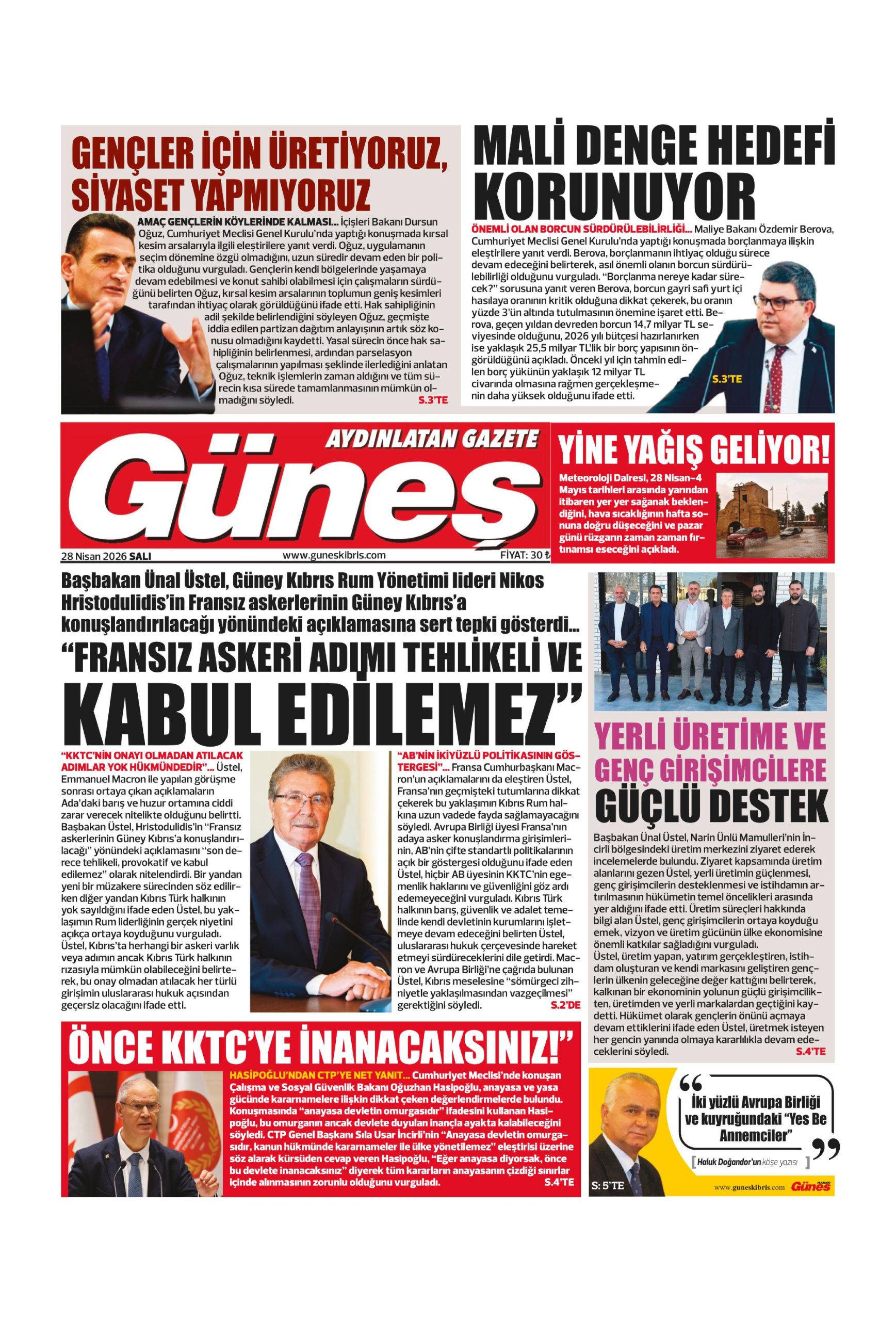 28 Nisan 2026 Salı KKTC Gazete Manşetleri