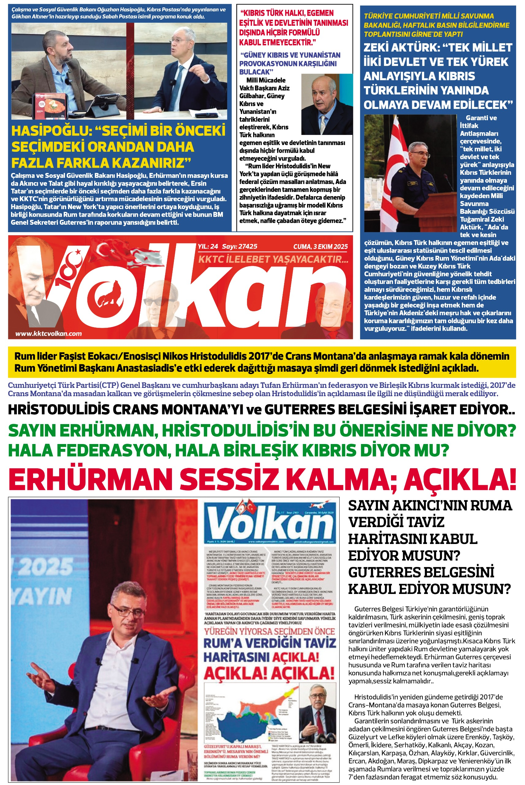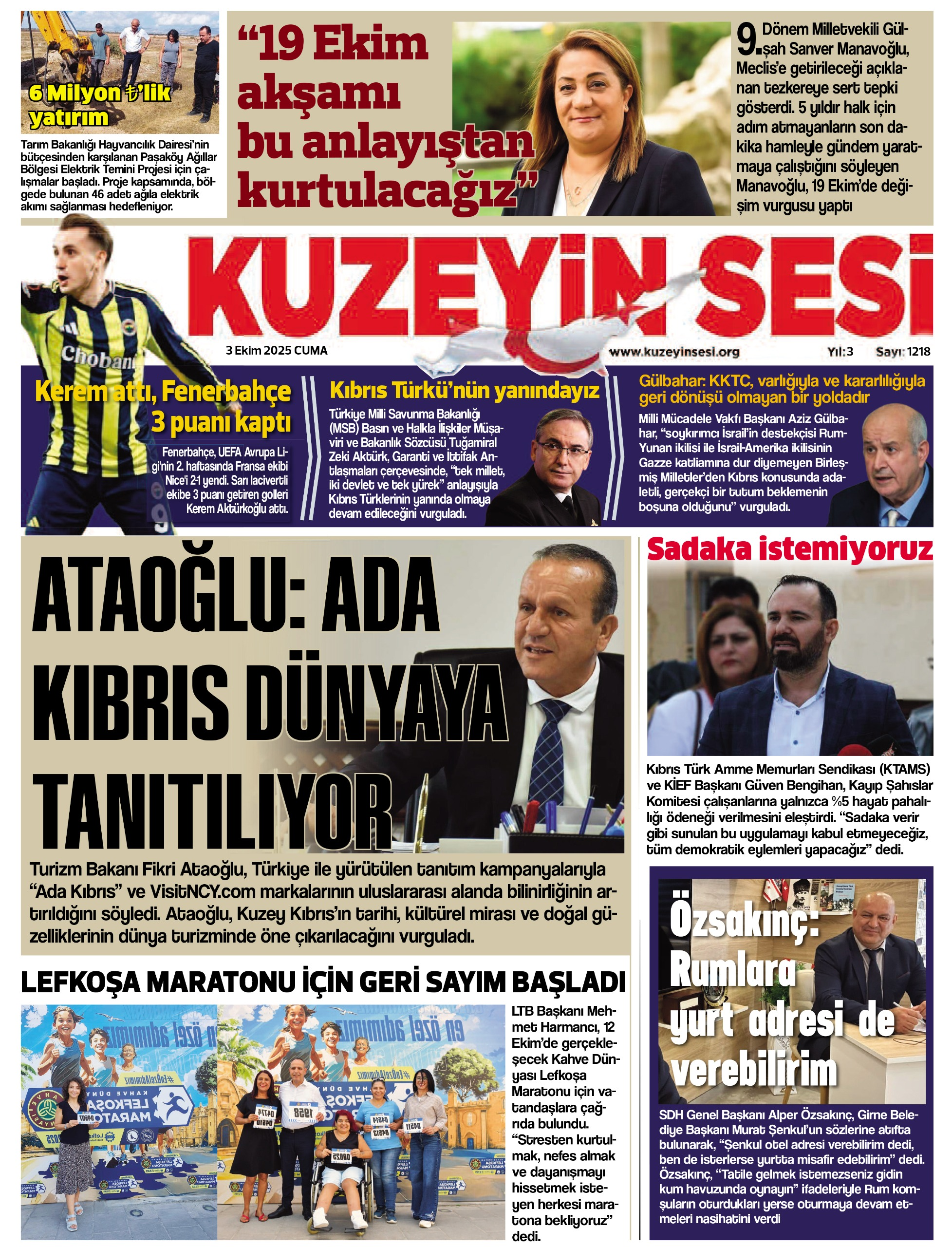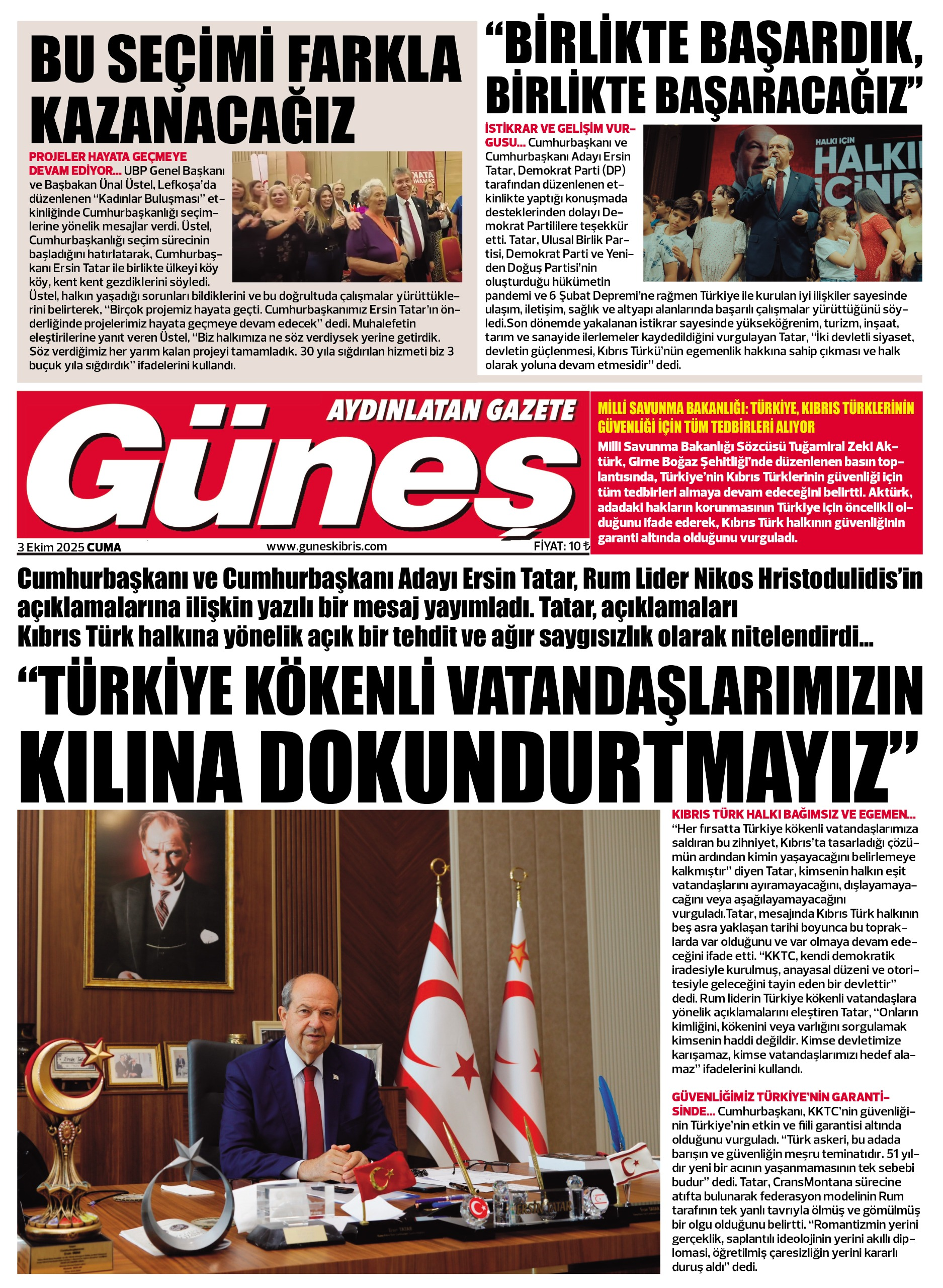 3 Ekim 2025 Cuma KKTC Gazete Manşetleri