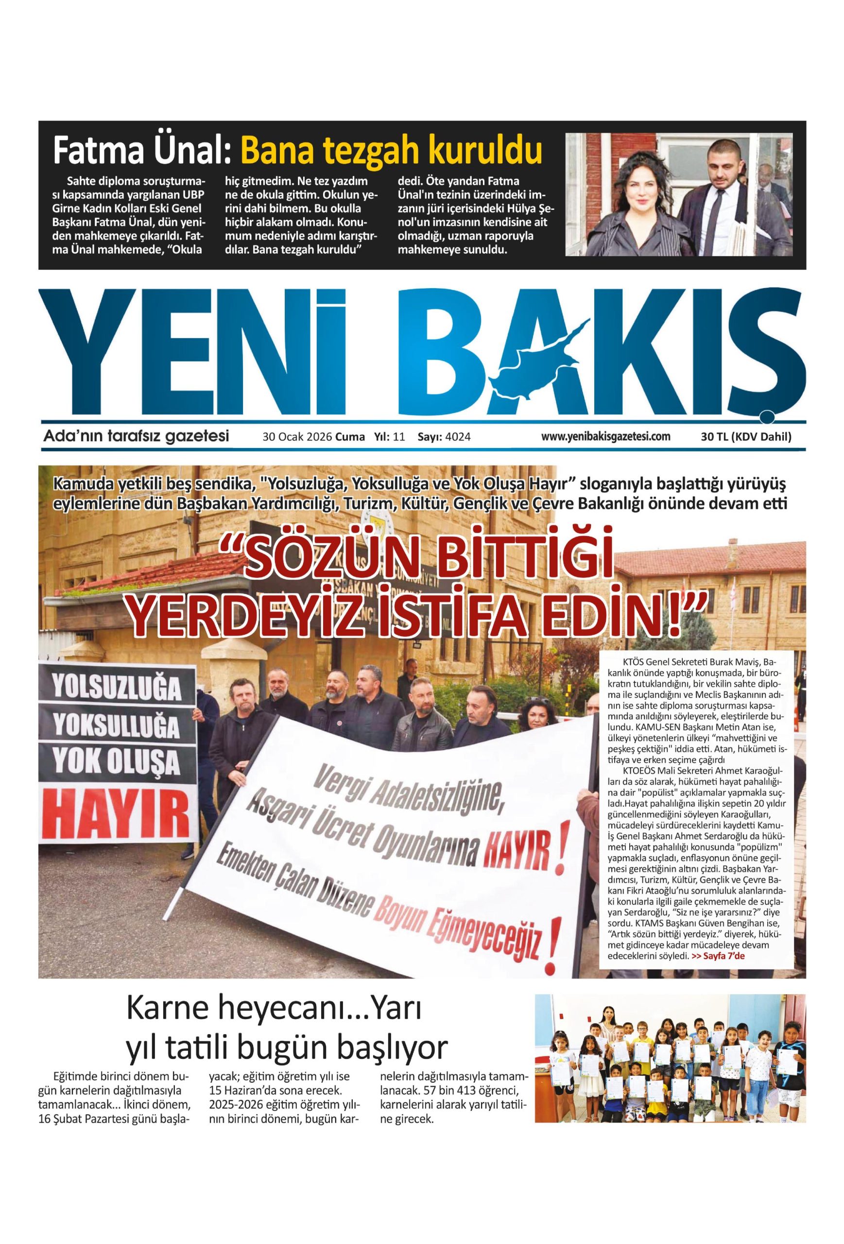 30 Ocak 2026 Cuma KKTC Gazete Manşetleri