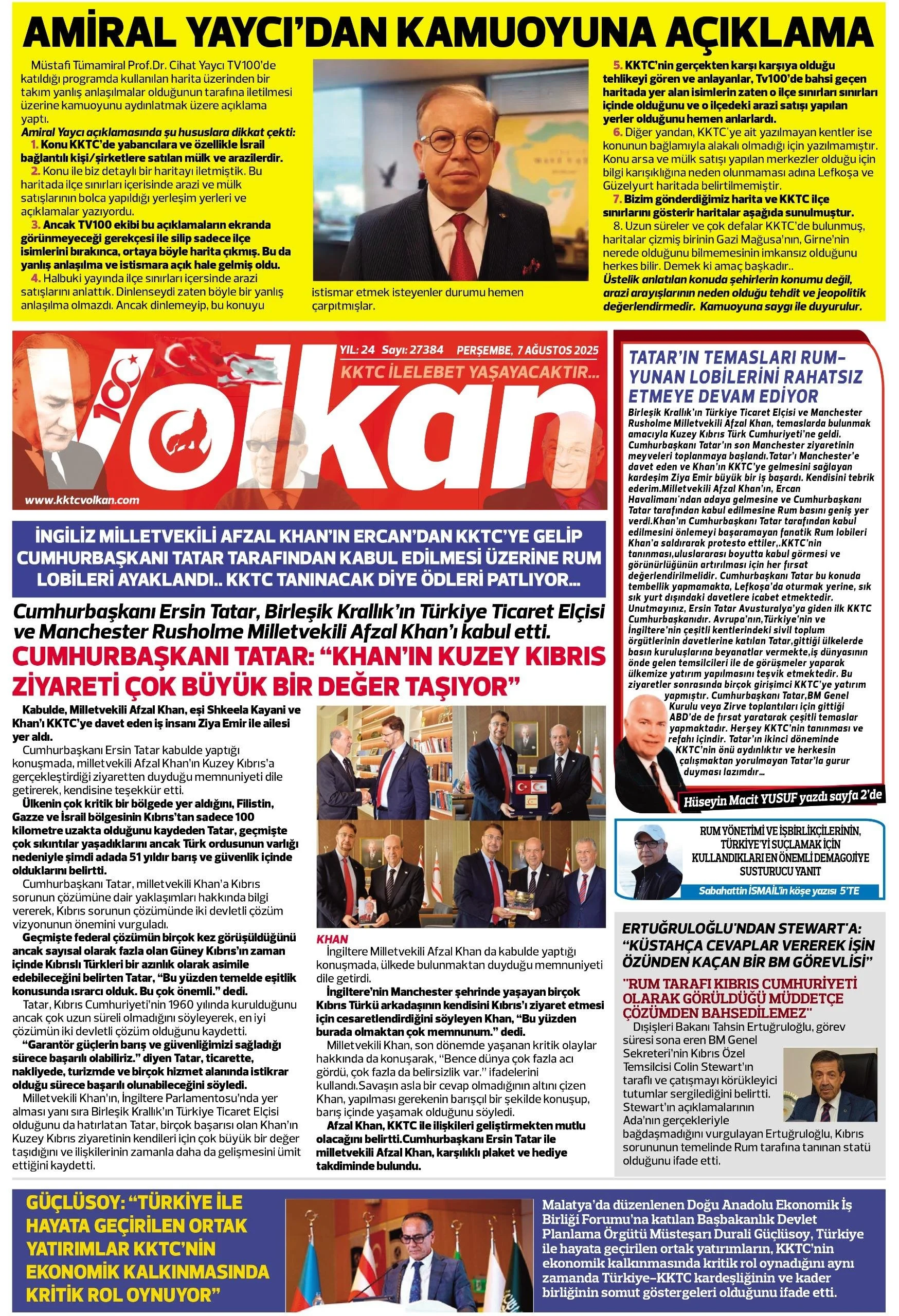 9 Ekim 2025 Perşembe KKTC Gazete Manşetleri
