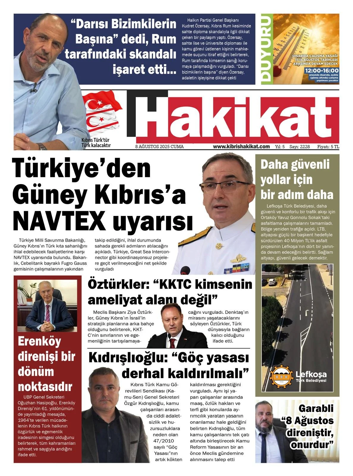 10 Ekim 2025 Cuma KKTC Gazete Manşetleri