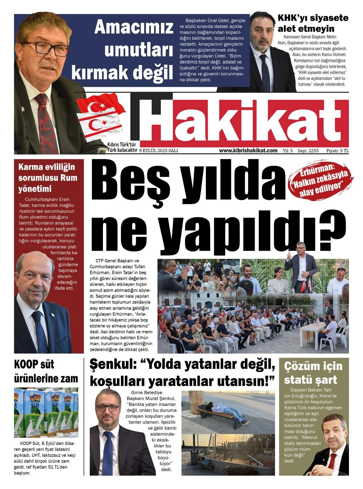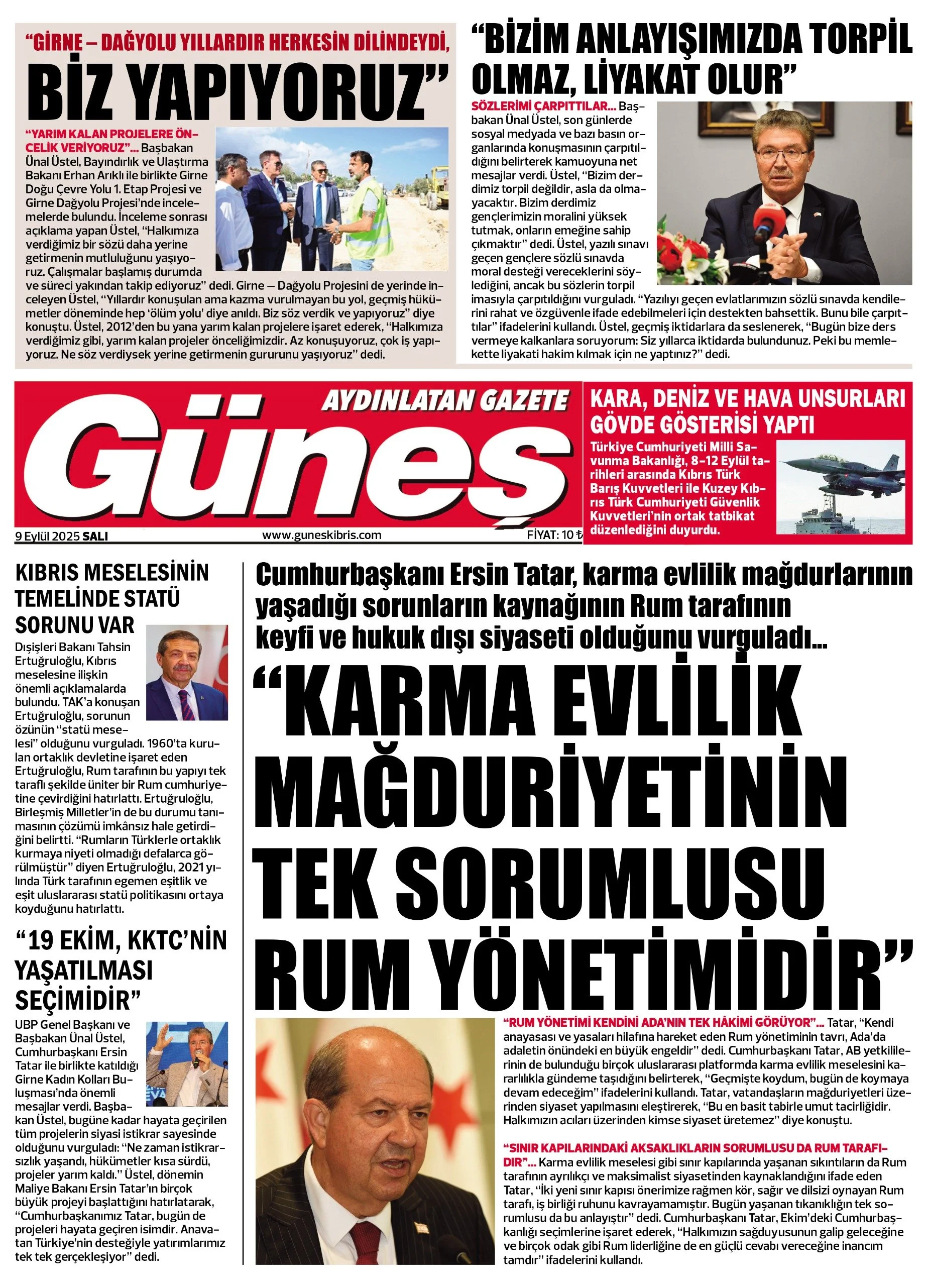 29 Eylül 2025 Pazartesi KKTC Gazete Manşetleri