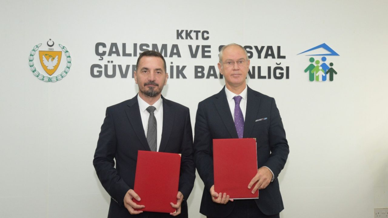 Protokole Çalışma ve Sosyal Güvenlik Bakanı Oğuzhan Hasipoğlu ile Kıbrıs Türk Barolar Birliği Başkanı Hasan Esendağlı imza koydu.