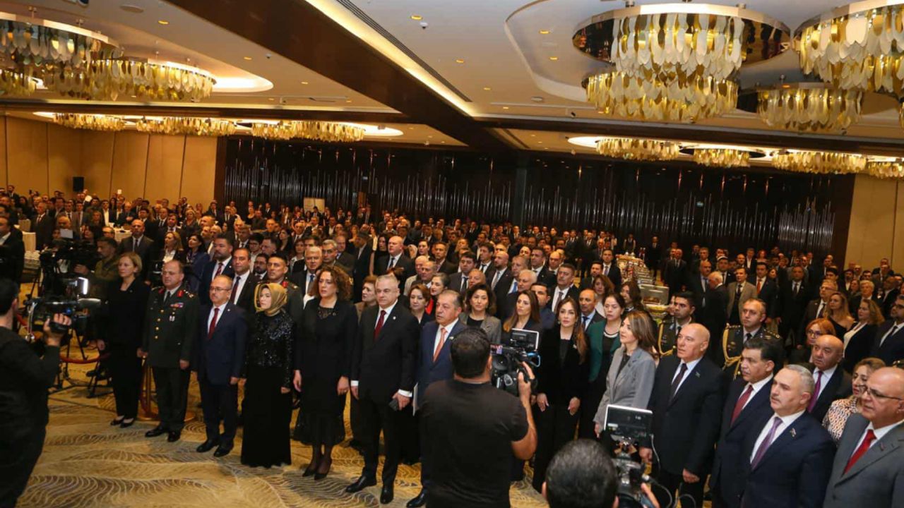 11 Kasım’da düşen askeri uçakta şehit olan askerler, tüm şehitler ve hayatta olmayan devlet büyükleri için saygı duruşu ile başlayan resepsiyonda, İstiklal Marşı ve Azerbaycan Milli Marşı okundu.