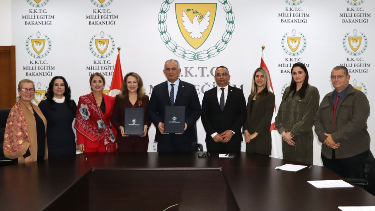 Protokole Milli Eğitim Bakanı Nazım Çavuşoğlu ve Tangül Ünal Çağıner Çocuklara Yardım Vakfı Başkanı İçim Çağıner Kavuklu imza koydu.