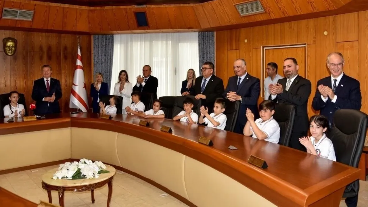 23 Nisan Ulusal Egemenlik ve Çocuk Bayramı dolayısıyla ilkokul öğrencilerini kabul eden Başbakan Ünal Üstel, “Ülkemizin geleceğini şekillendirecek çocuklarımızı burada ağırlamaktan büyük mutluluk duyuyoruz.” dedi.